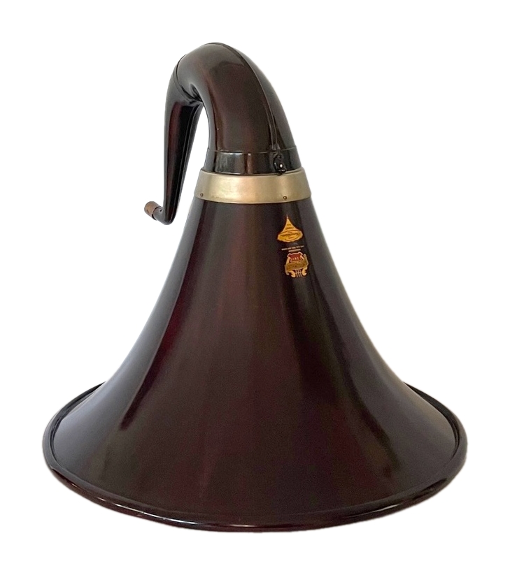 This Opera horn appears to be a refinished original. The seams are tight. The elbow is in excellent condition, refinished to match the horn.