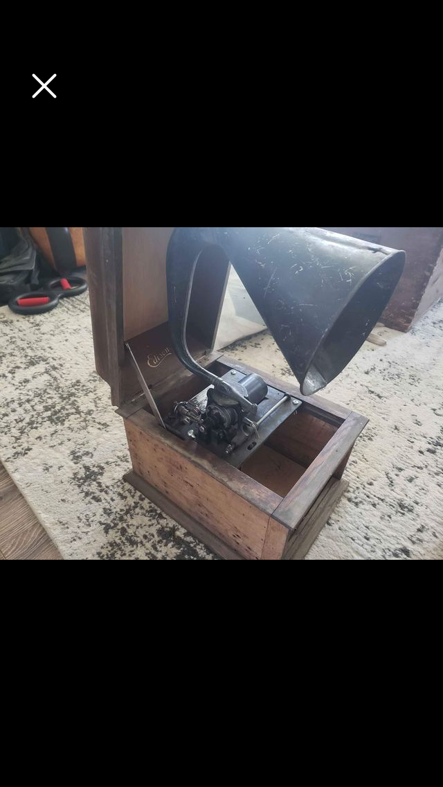 In your pic is an Edison Amberola (cylinder player) with a horn stuck on it upside down :)