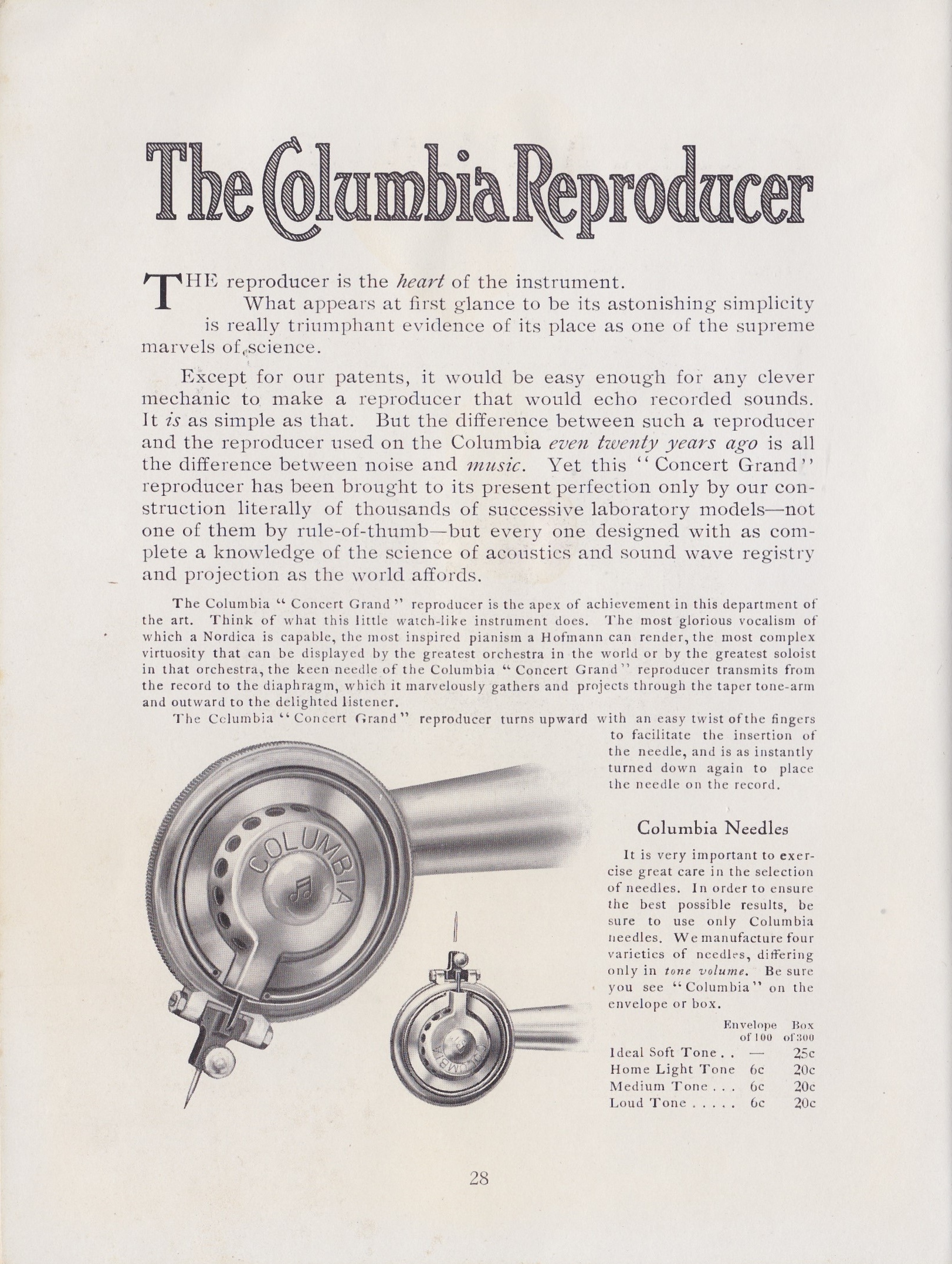 In a slightly later catalog, Columbia added a box of 300 needels and a two-part needle box. Again, no pictures.