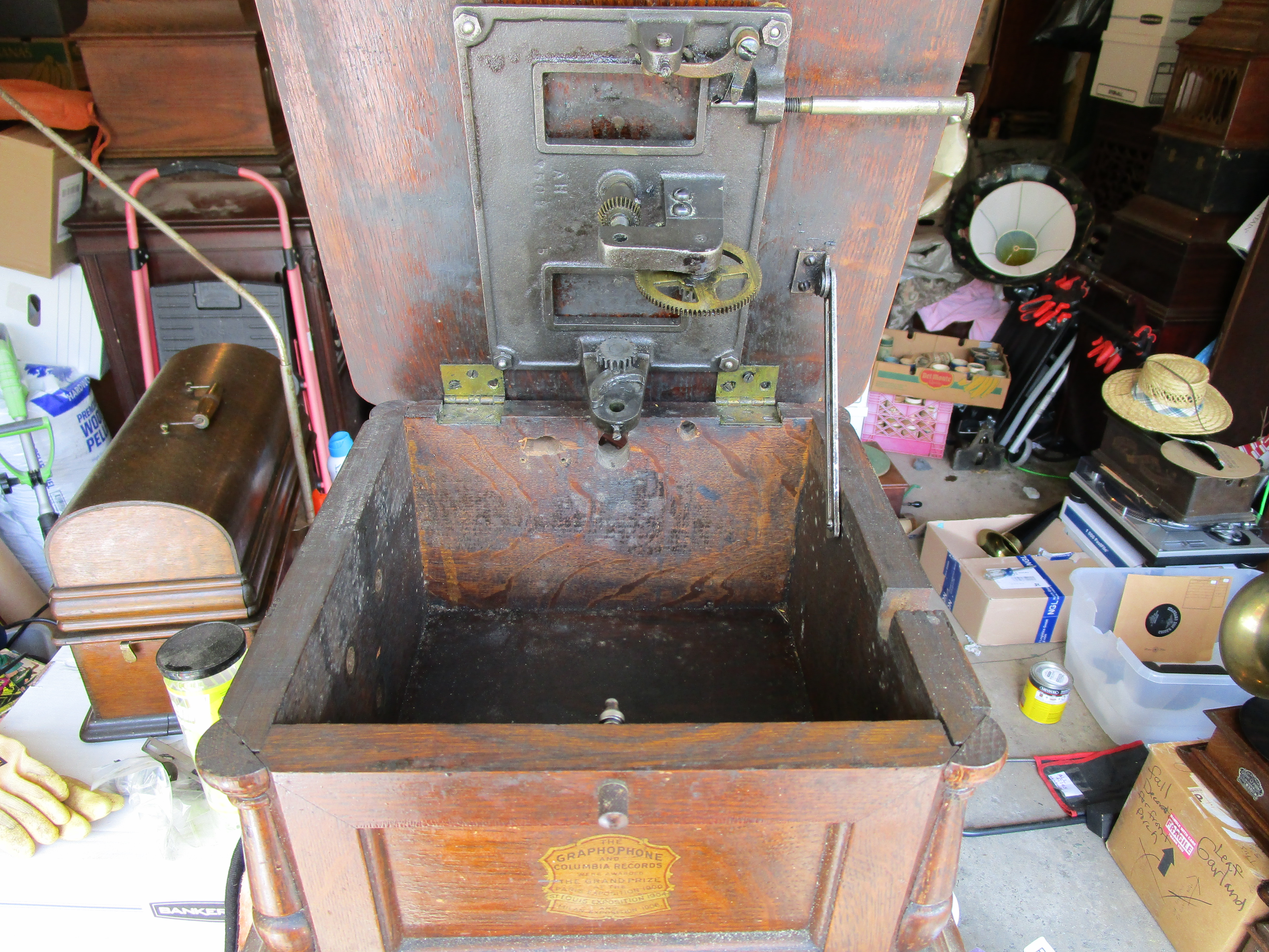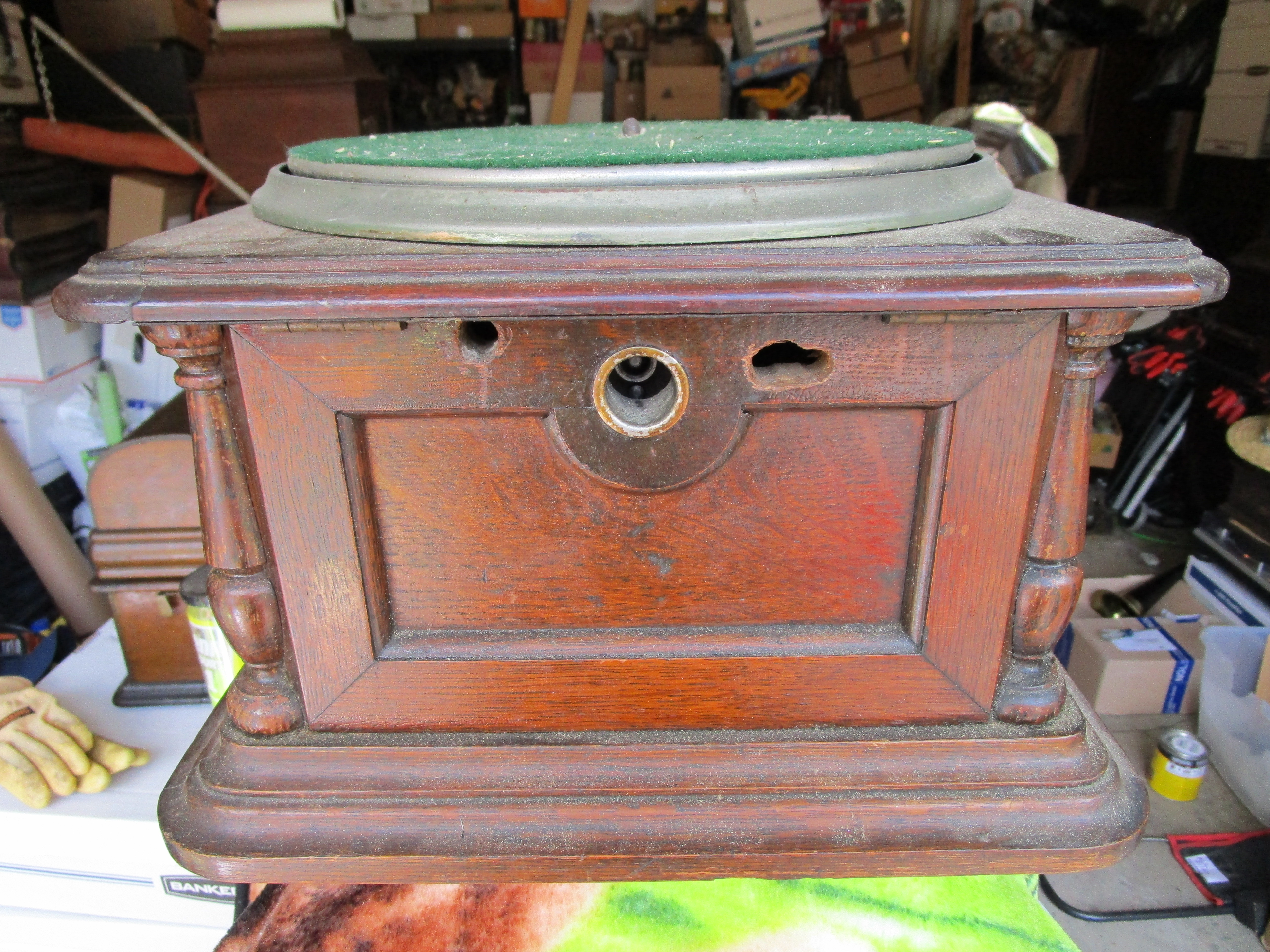 I have a Columbia BI Sterling cabinet to sell (please see pics below). The original cabinet decals are EXCELLENT and the original cabinet finish is very nice. This includes the hard to find turntable dust ring and also some original Columbia BI Sterling motor parts. The turntable is an original Columbia turntable but I don't believe for this model. Only detraction is someone drilled a couple extra holes on one side that can be filled and stained to match or whatever you want to do. Price is $190 which INCLUDES USPS SHIPPING TO USA ADDRESS or pick up in eastern NY state. Send me a PM with interest, PayPal Friends payment. Thanks.