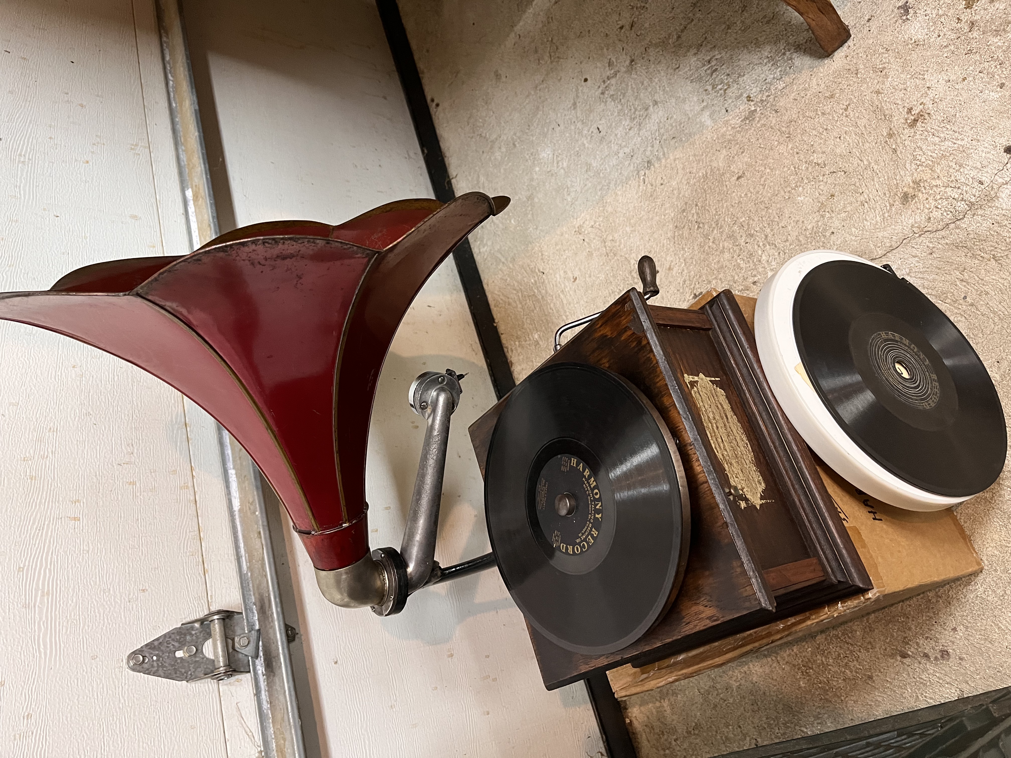 Harmony ¾’ spindle phonograph with red horn and w/records----------------------------$200 (Sold)