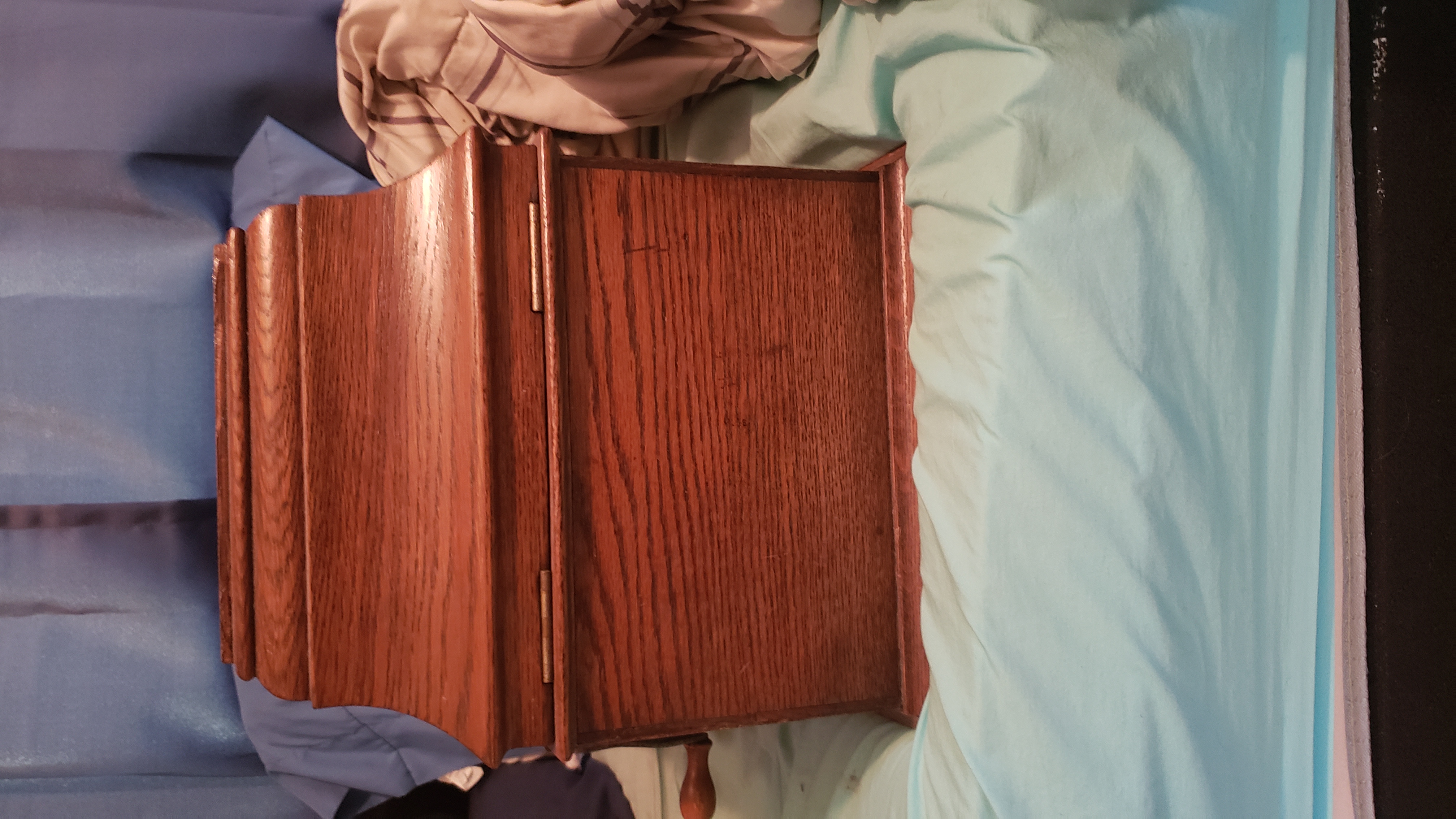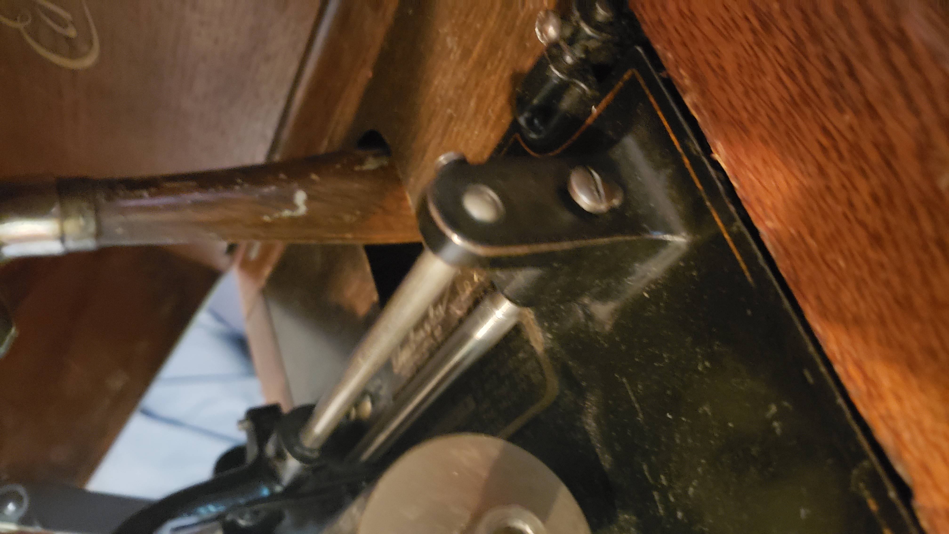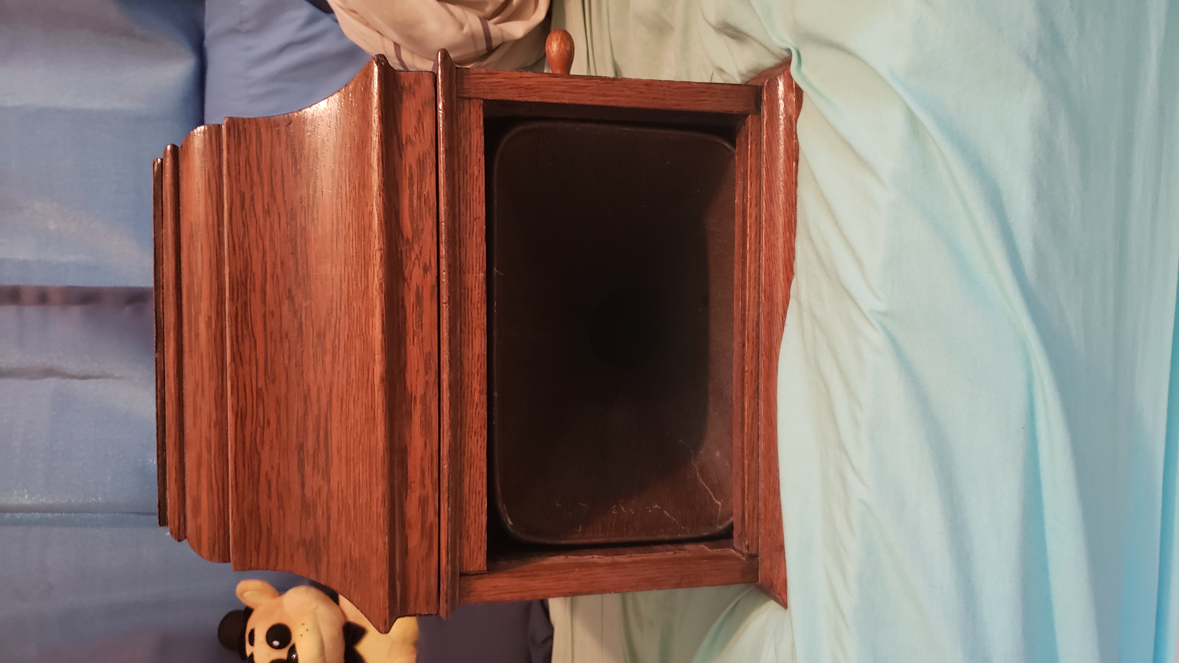 I am going to have to part with my Amberola DX due to space reasons, so I'm going to bring it with me to the show. The machine is fully functional with a smoothly running motor and a good diamond in the reproducer. It has the original faux wood grain top grill and back grill, and the horn paint is also original and untouched. Few scratches and chips on the horn. No original front grill with it. The leather belt has been replaced with a new Wyatt Markus belt. The back wooden plank and the left side plank had to be glued back onto the rest of the cabinet, so there are chunks missing. The most noticeable one is in the front under the lid. I am negotiable on price, since I really do need to clear this out.