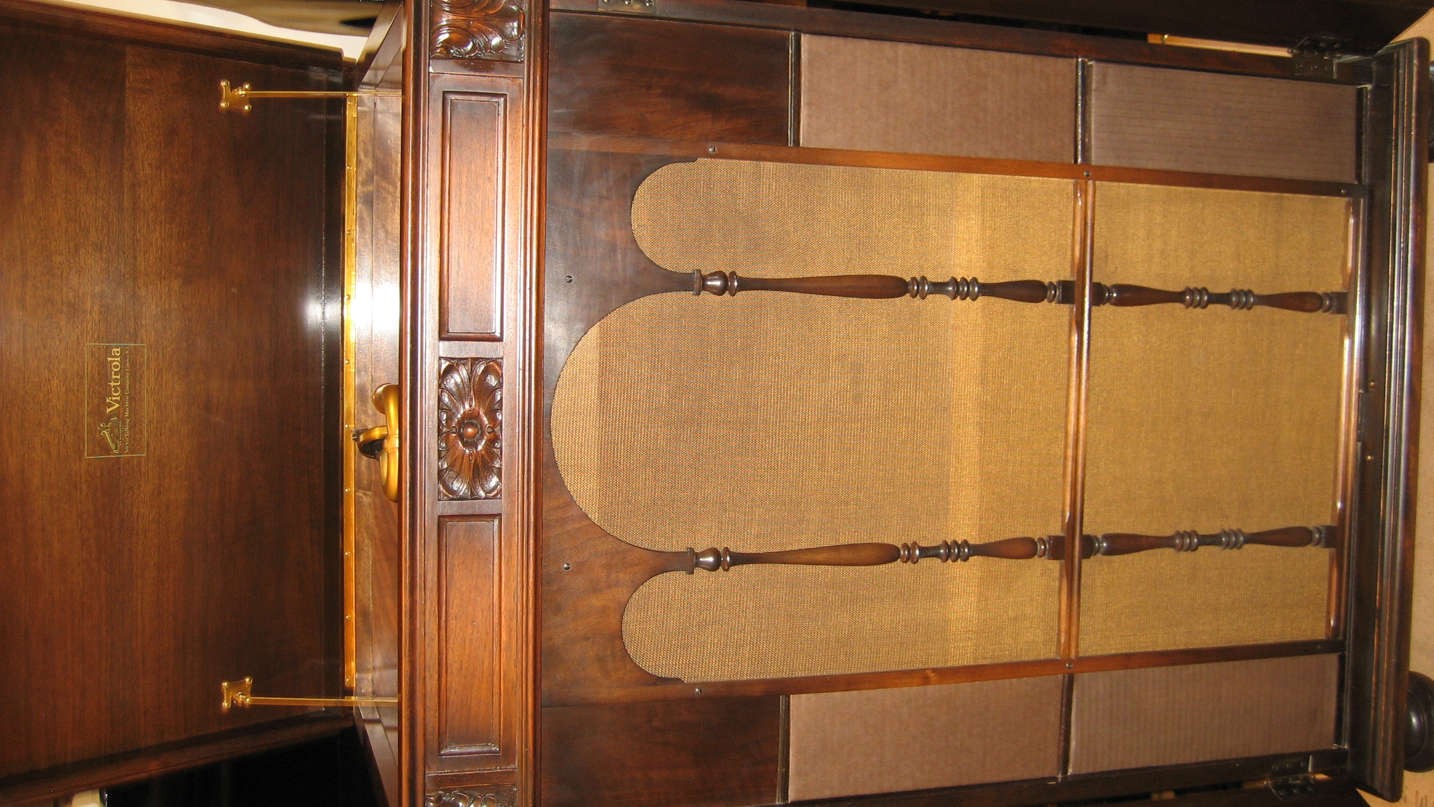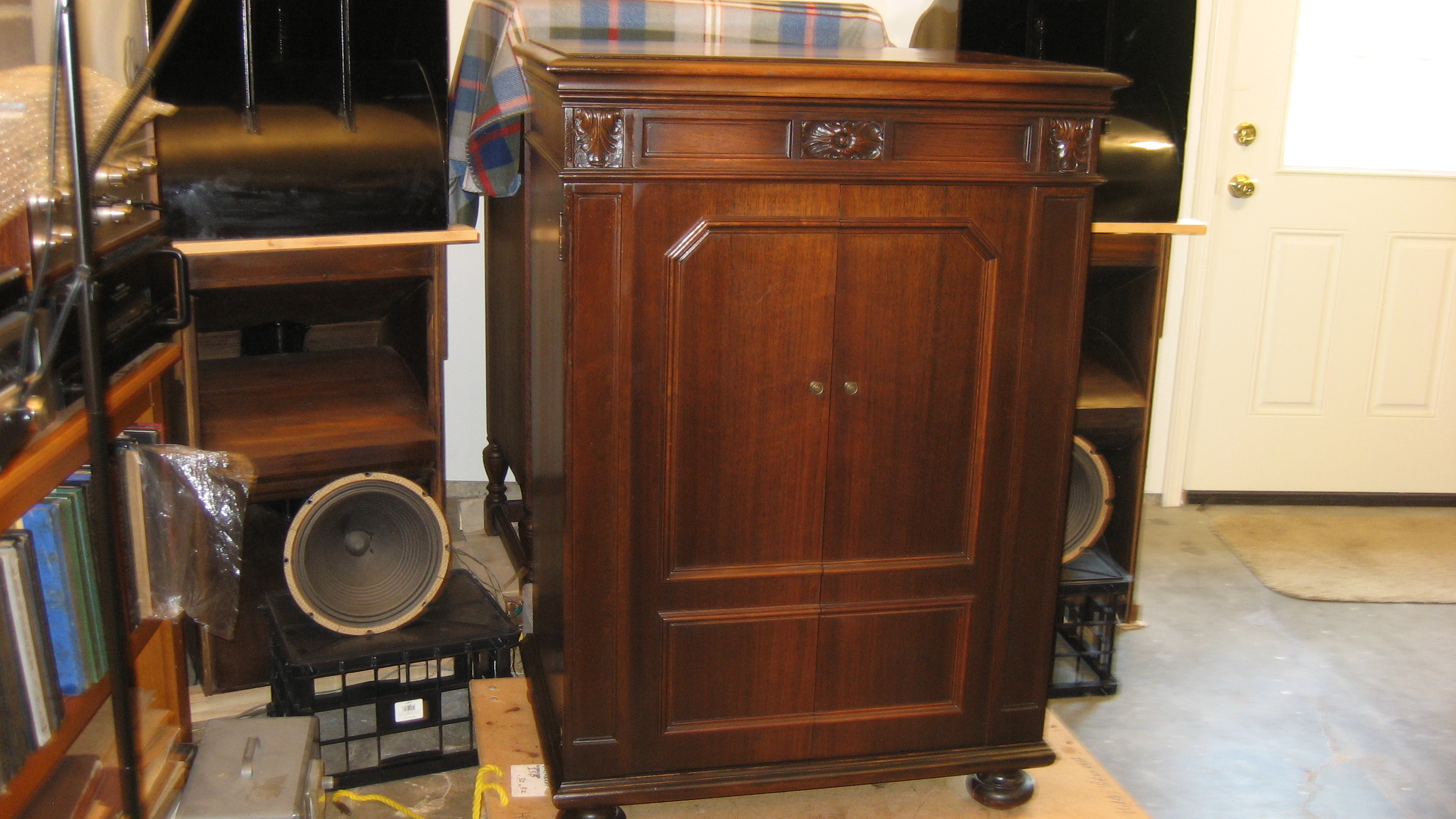 Several months ago my new credenza(no.1262) with two doors arrived home and it looks and sounds fantastic, of course I checked the horn's condition and other joints for the air-tight ness. Unlike 4-door one, its horn opening is wider. since it is not partially blocked by two doors. Also I made 4 baffles for the records storages in order to make the sound more efficient.