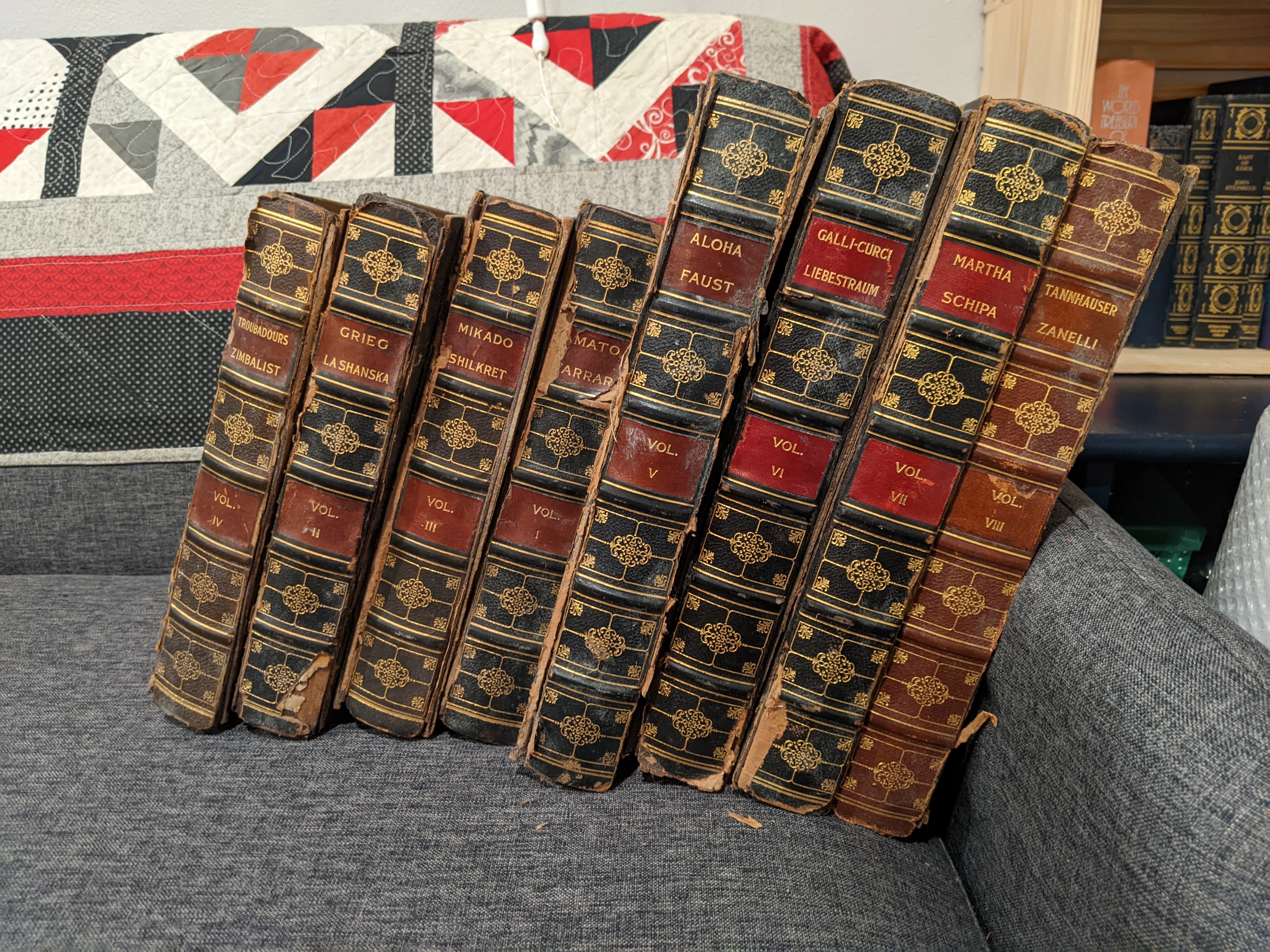 Recently got this matching set of albums from a large record collection. Not sure what machine these were for. All in pretty poor shape, they shed quite a bit. Covers all still attached, although some just by a hair. I have no use for them, so first offer of any amount gets them, plus shipping. Would prefer they go to someone who wants to complete their own machine. Thanks!