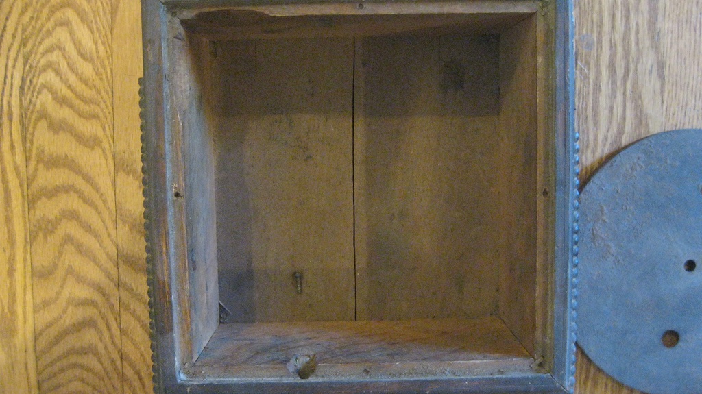Even if this cabinet was from some other phonograph, the location of what might be a crank hole, would be way too high up on the case. The crank would be located almost directly beneath the top plate of the motor, allowing little to no room for any kind of winding gears or ratchets.