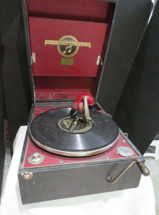 RE the Columbia Grafonola Portable 130, it is correct except for the reproducer. It had a black exterior, red interior, blue velvet turntable covering, red painted tonearm and Viva-Tonal reproducer. Unfortunately, they used terrible pot-metal especially on the reproducer, so most are crumbling beyond repair. I have two in bad condition that I hope to combine into one usable machine at some point. It looks so funky with all those colors that my daughter said that's one even she would like