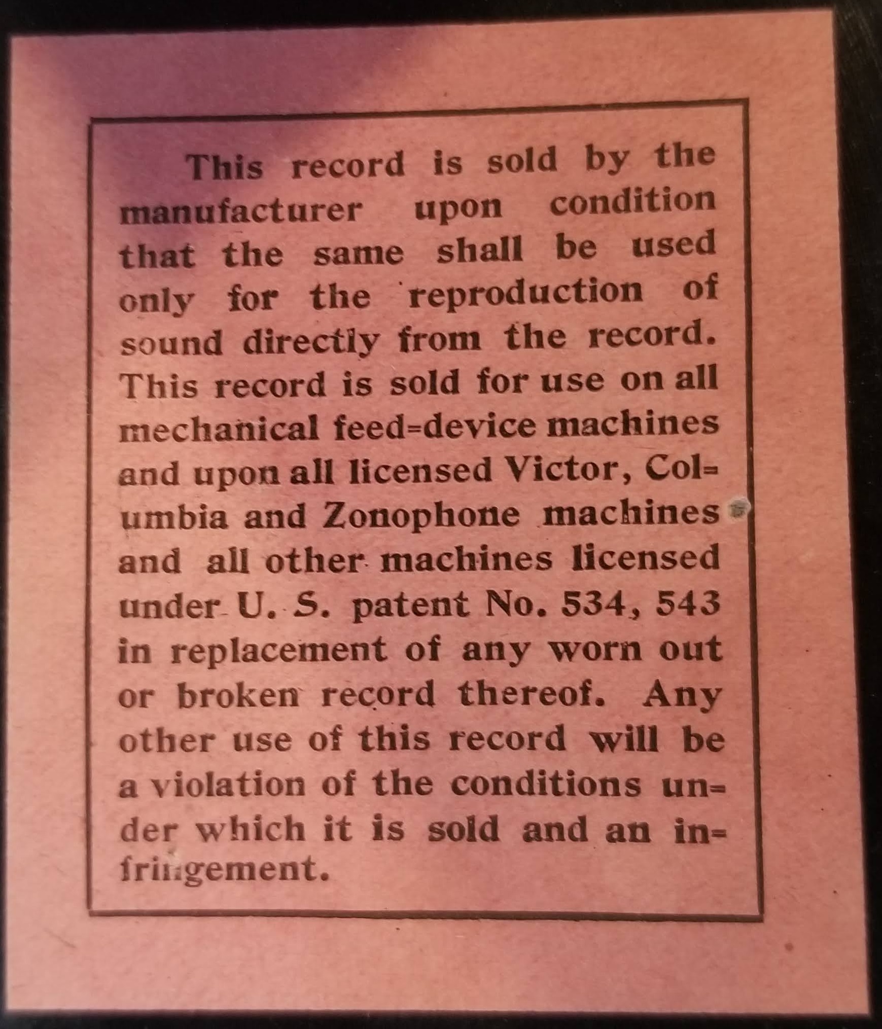 It never fails to amaze me that, after all these decades, I'm still finding records in the wild on labels I've never seen or heard of before. I just found this one in a milk crate full of Zonophone records. Sutton & Nauck has three Symphony record labels listed, and my guess would be that this one is #2 (c. 1907-1909) since #1 was "manufactured by the International Record Company for Kaufmann Brothers" (a Department Store in Pittsburgh), but I'm not sure. Can anyone tell me more? If you have any titles on this label, I'd love to see pictures. (By the way, in case you're wondering, I have stabilized the cracks and the record plays quite nicely.)