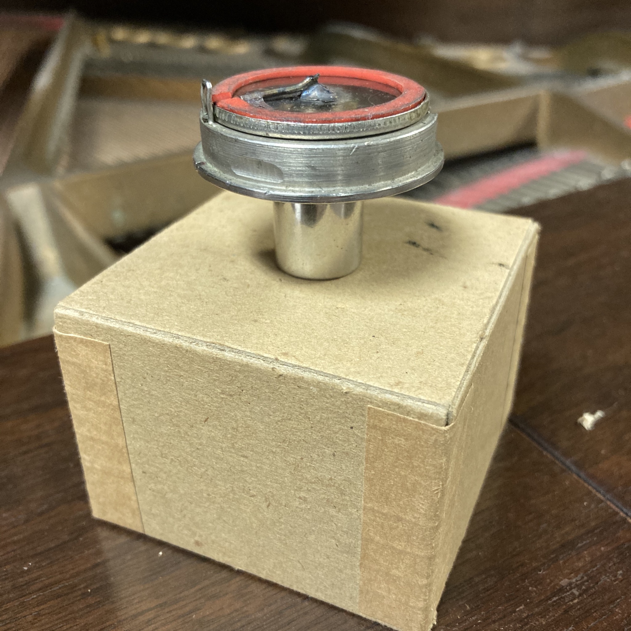 Here is a freshly rebuilt just like the factory Edison 4-minute cylinder recorder, with original diaphragm and great original stylus. The body is nickel-plated brass and fits into a carriage nicely.