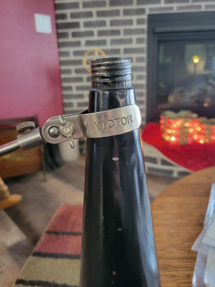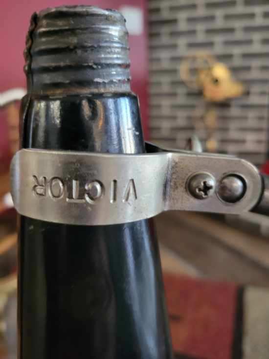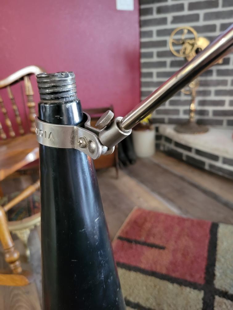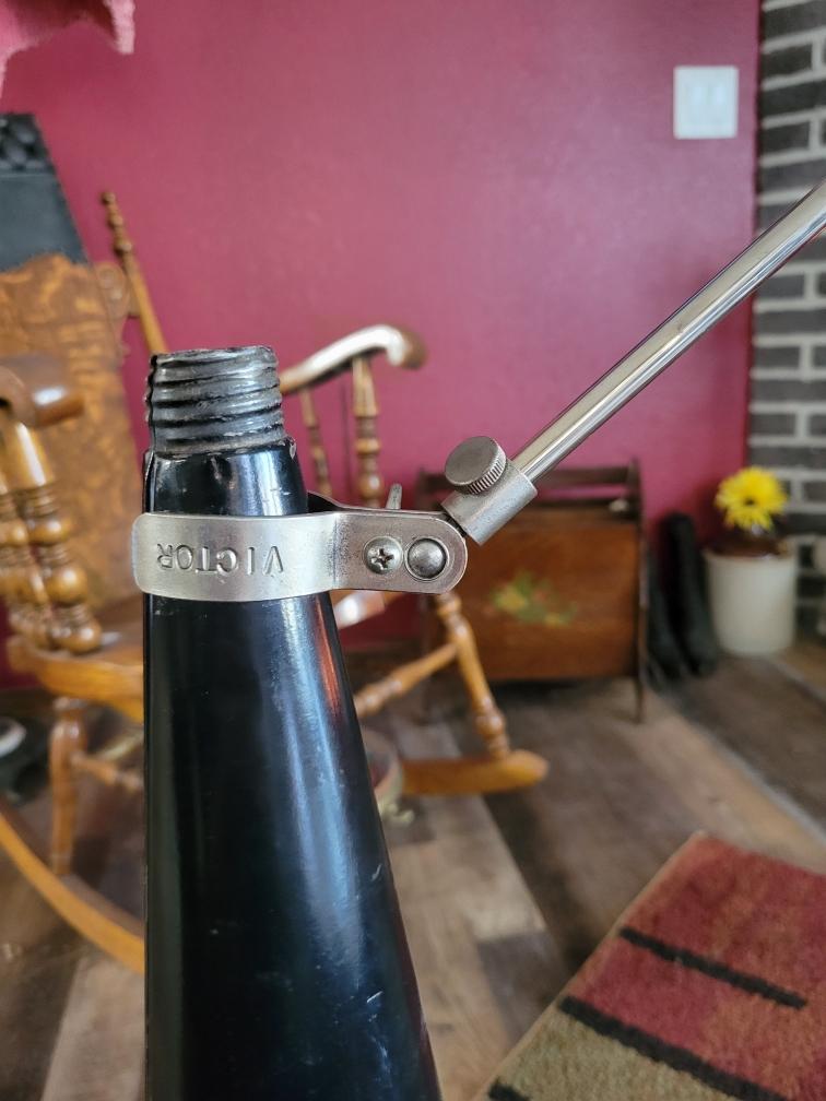 I have what I think is a horn support for the larger front mount horns on the Rigid Arm Victor M's and MS's. I know this has been discussed before but everyone always wonders what the front mount delete block with the hole is for. This would explain why it has a hole in it so that it can support the horn down low or the elbow. It is somewhat adjustable. This would answer some of the larger screw in front mount horn and what they are really for. Yes, I know Victor did make extended arms for some of the sizes of the front mount horns. Just a thought. Let me know your thoughts. In the pictures I have it attached to a 27" front mount horn. And yes, I realize it should be a flat head screw. Thanks, Tom