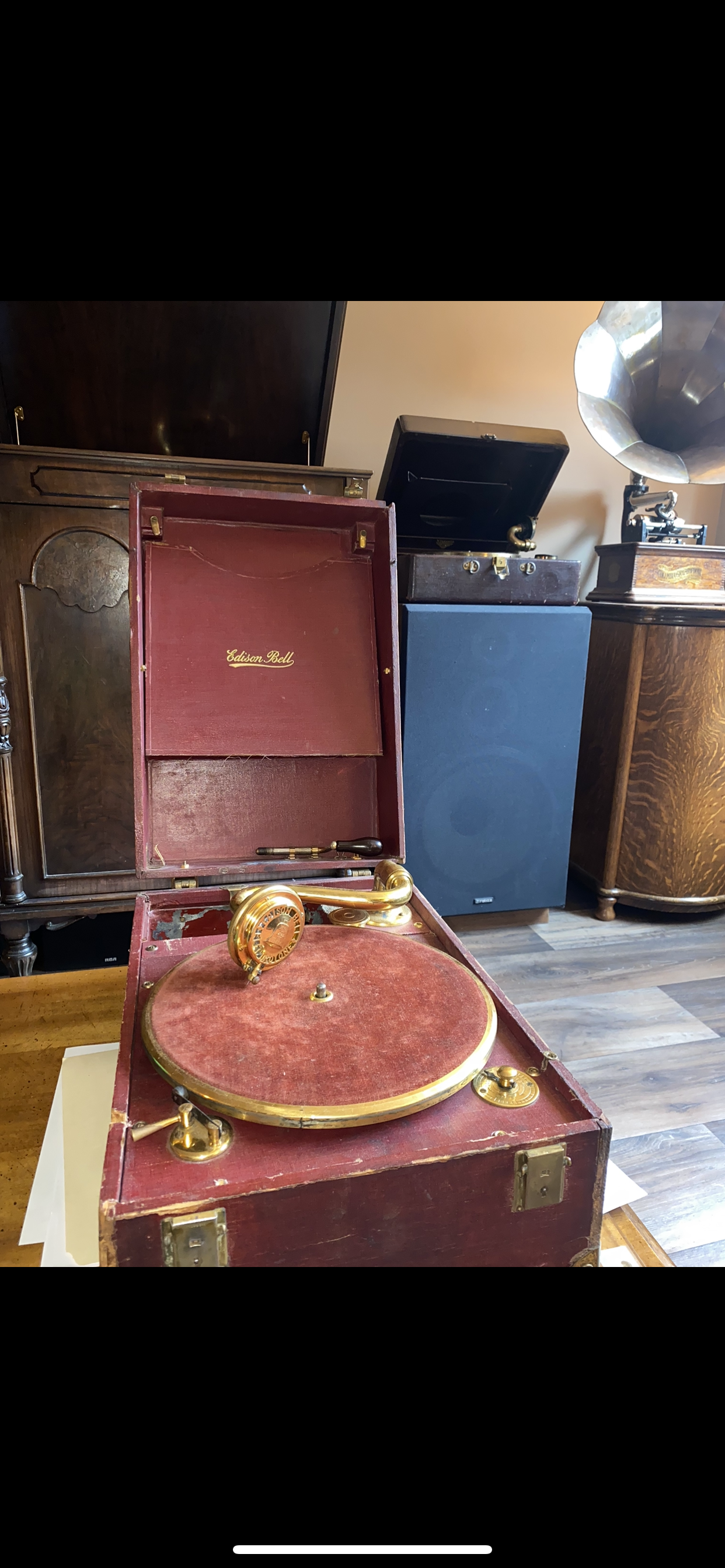 I believe that Edison Bell made a larger portable. I will have to look around and see if I can find the photo. As a side note, I do have the mesh cover for the inside of the reproducer. It is removed because it causes the reproducer to buzz.