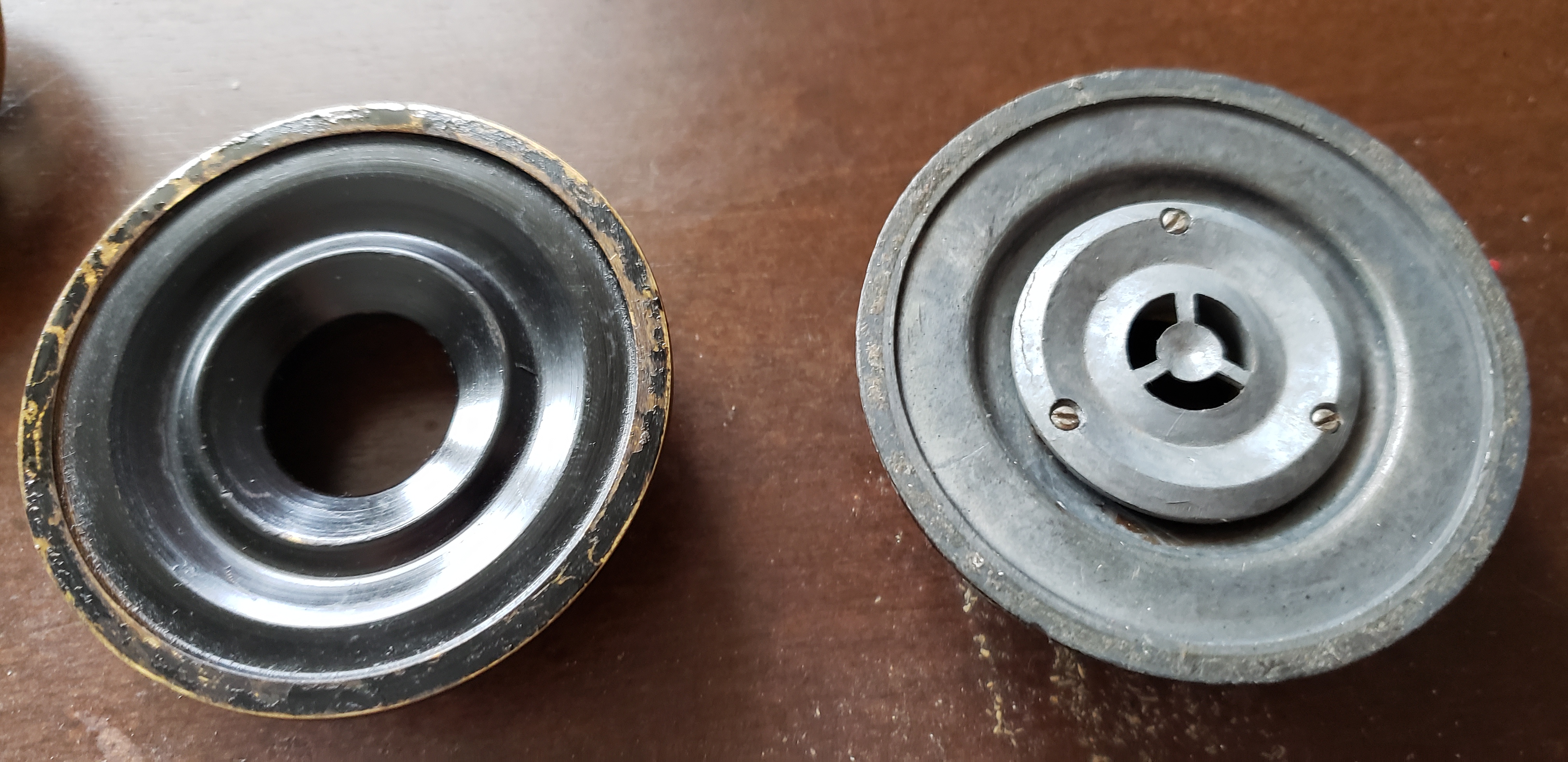 This is an image of two backs from Victor Orthophonic reproducers. The nice black one is from a brass unit and the other a pot metal.
