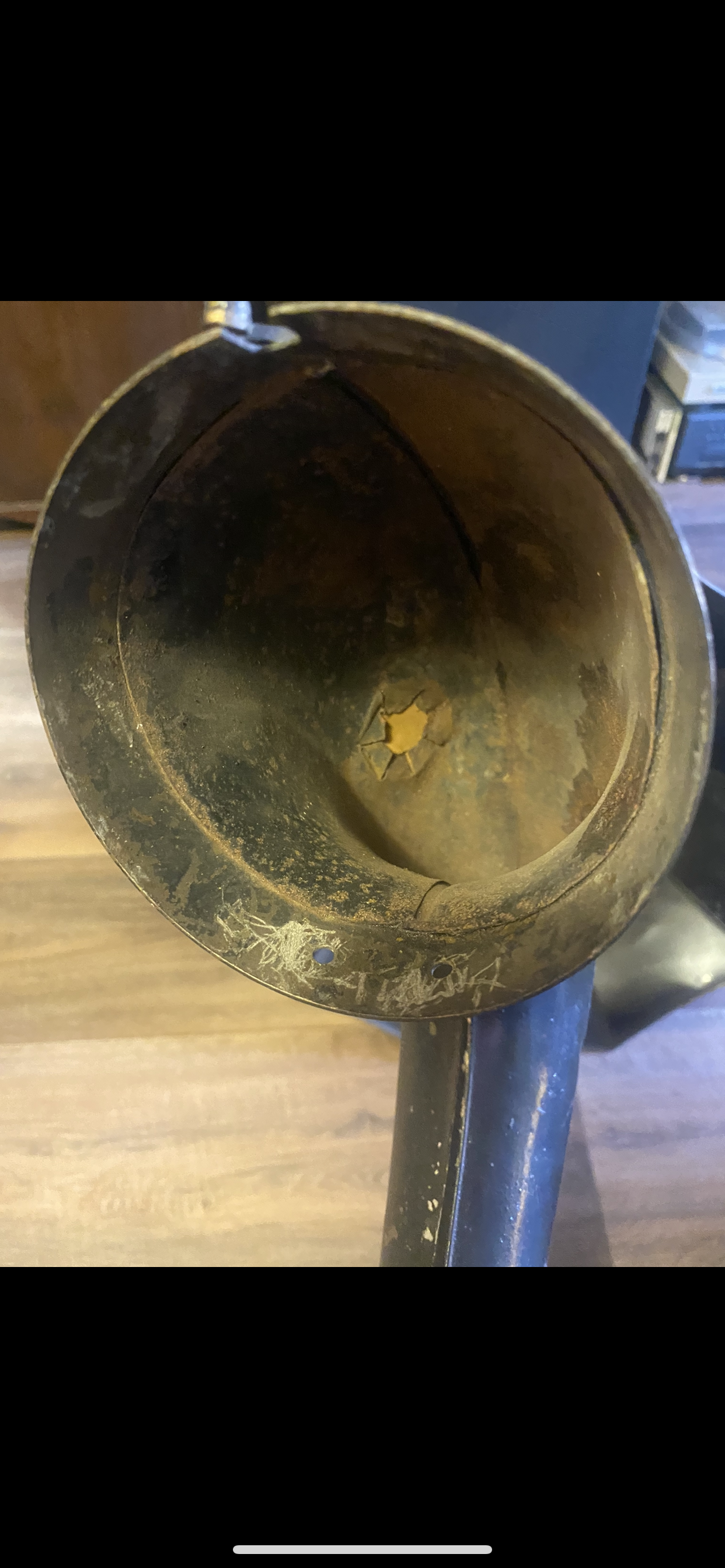 The elbow on this horn is pretty rough. Someone added a patch to it as some point and then painted over it. Bell is in original condition.