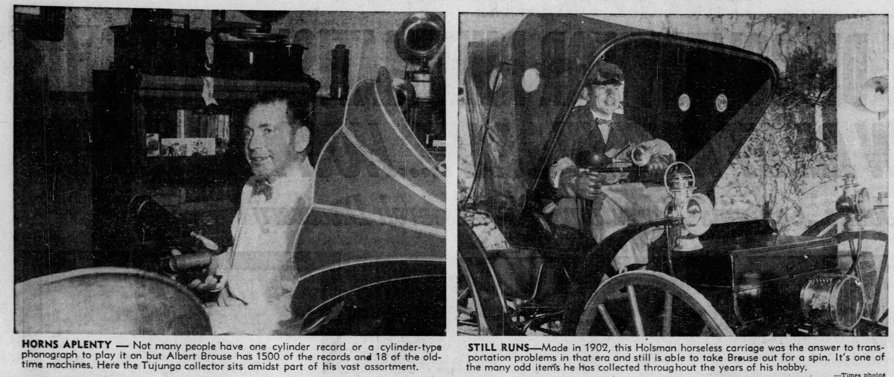 Anyway, in observance of banjo luminary Fred Van Eps' 144th birthday today (this posting is especially for VanEpsFan1914) I pass along an interesting and informative 1959 interview with phonograph enthusiast Albert Brouse, of whom I also provide a couple of 1949 LATimes photographs scraped from the bowels of newspapers.com.