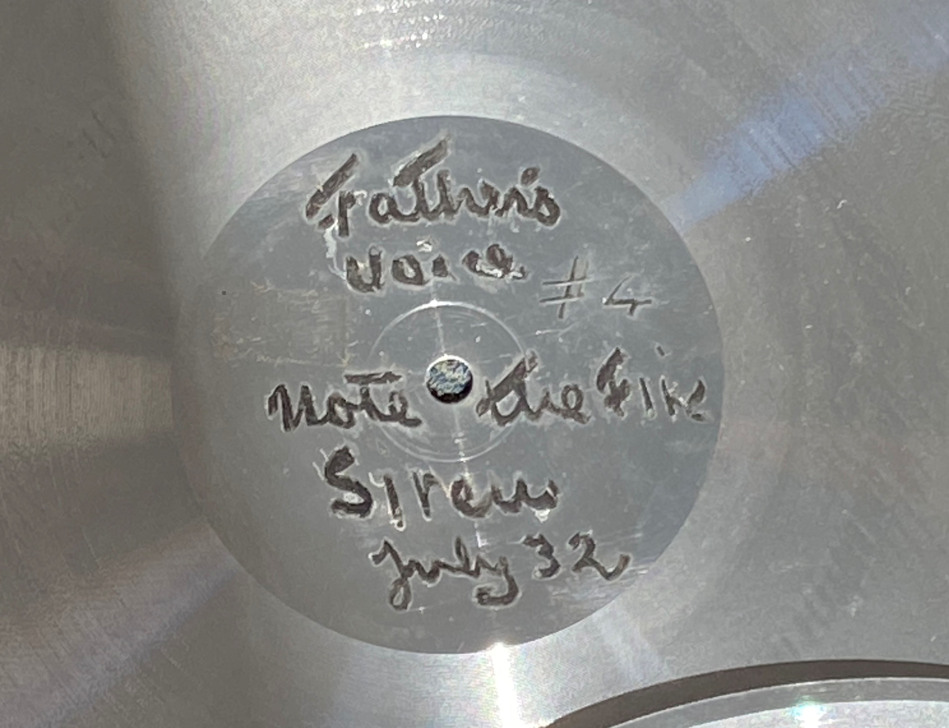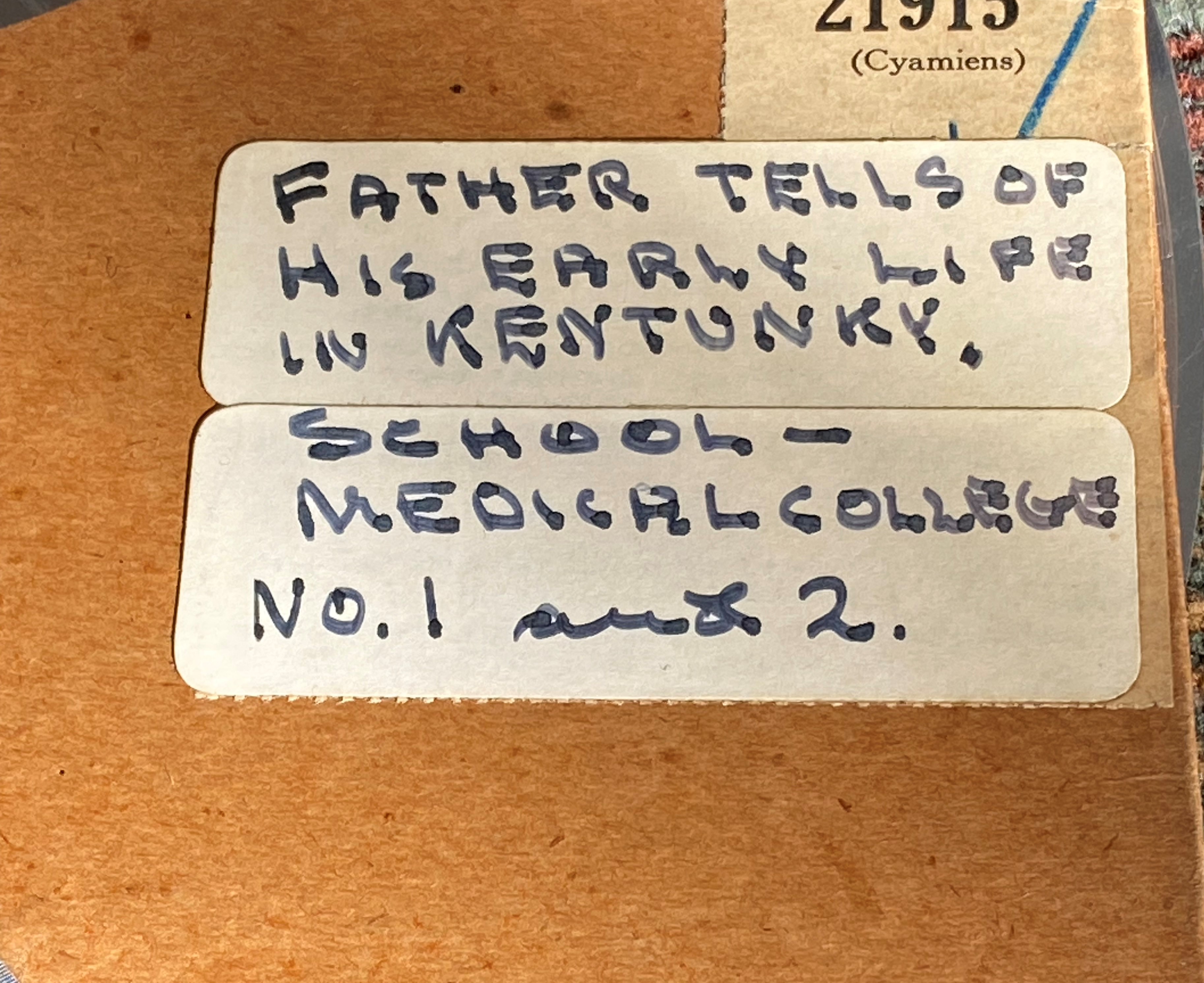 I have these ten home recordings from July 1932. They are recorded on aluminum and contain various topics. Of interest is the fact that they are known to be of Waggener family of Humboldt Nebraska. Usually you find recordings like this and do not know who they are. Evidently John had three sons who also became doctors. However one of them, Dr. H A Waggener was interested in personal recording machines. In July 1932 he went from Hollywood back home to Nebraska to record his family. One recording was his father talking about he experience in medical college in Kentucky. Others talk about fishing. One is titled Mother's voice. In all there are 10 recordings, although one is bent. I really am trying to put a value on these as I am thinking it is time to sell them. I did discover that John A. Waggener, physician and surgeon, was born at Burksville, Cumberland County, Kentucky, October 6, 1852. I think these would be most interesting to a phonograph/record collector who had an interest in the medical field. Or someone from Nebraska? I just think these have great historical value to the right person.