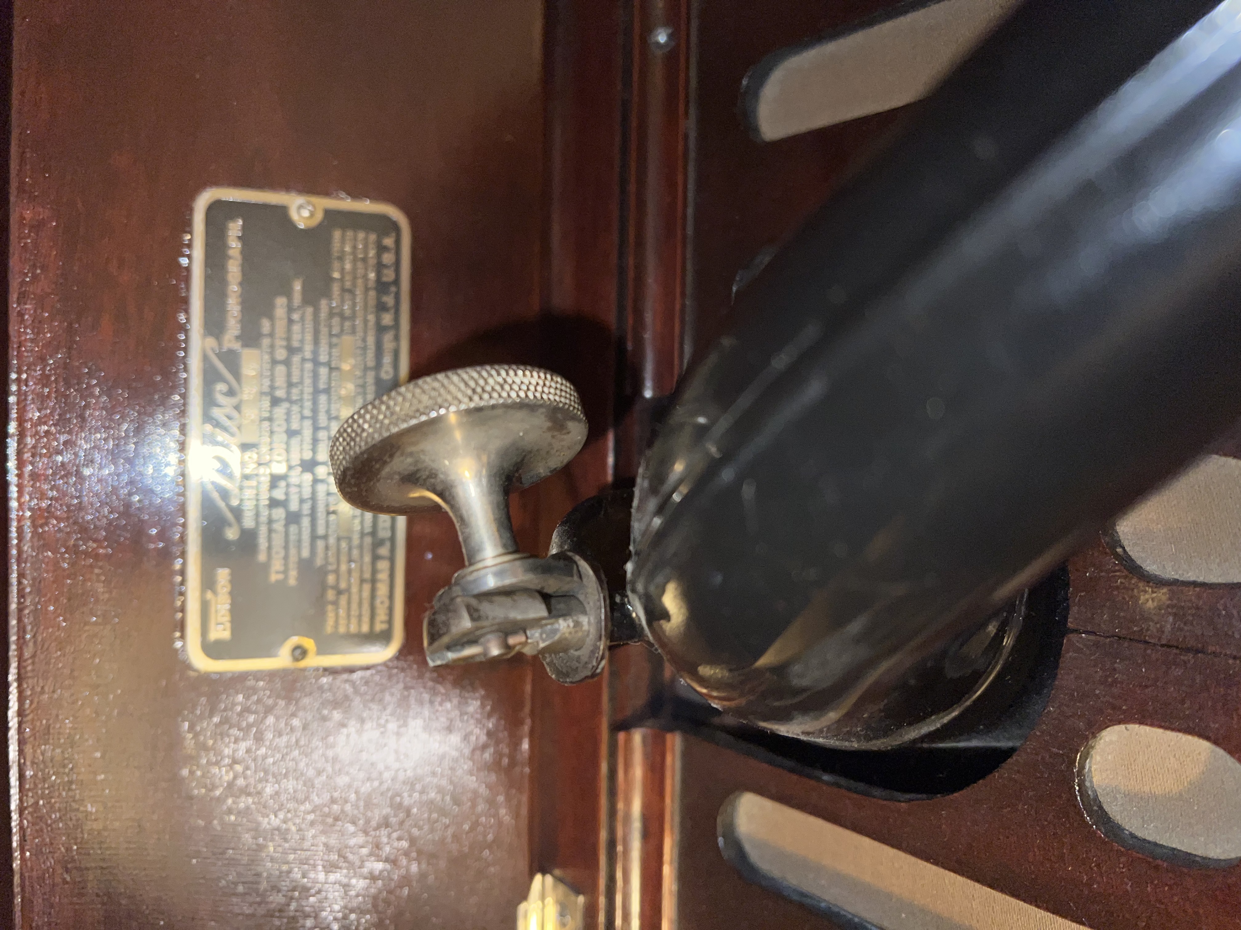 I was not clear. I was referring to the small thumbscrew on the left which is broken off. The large knurled knob does indeed raise and lower the reproducer. I am not sure if this is a different version of this model or if it was modified. In any case, it is working.
