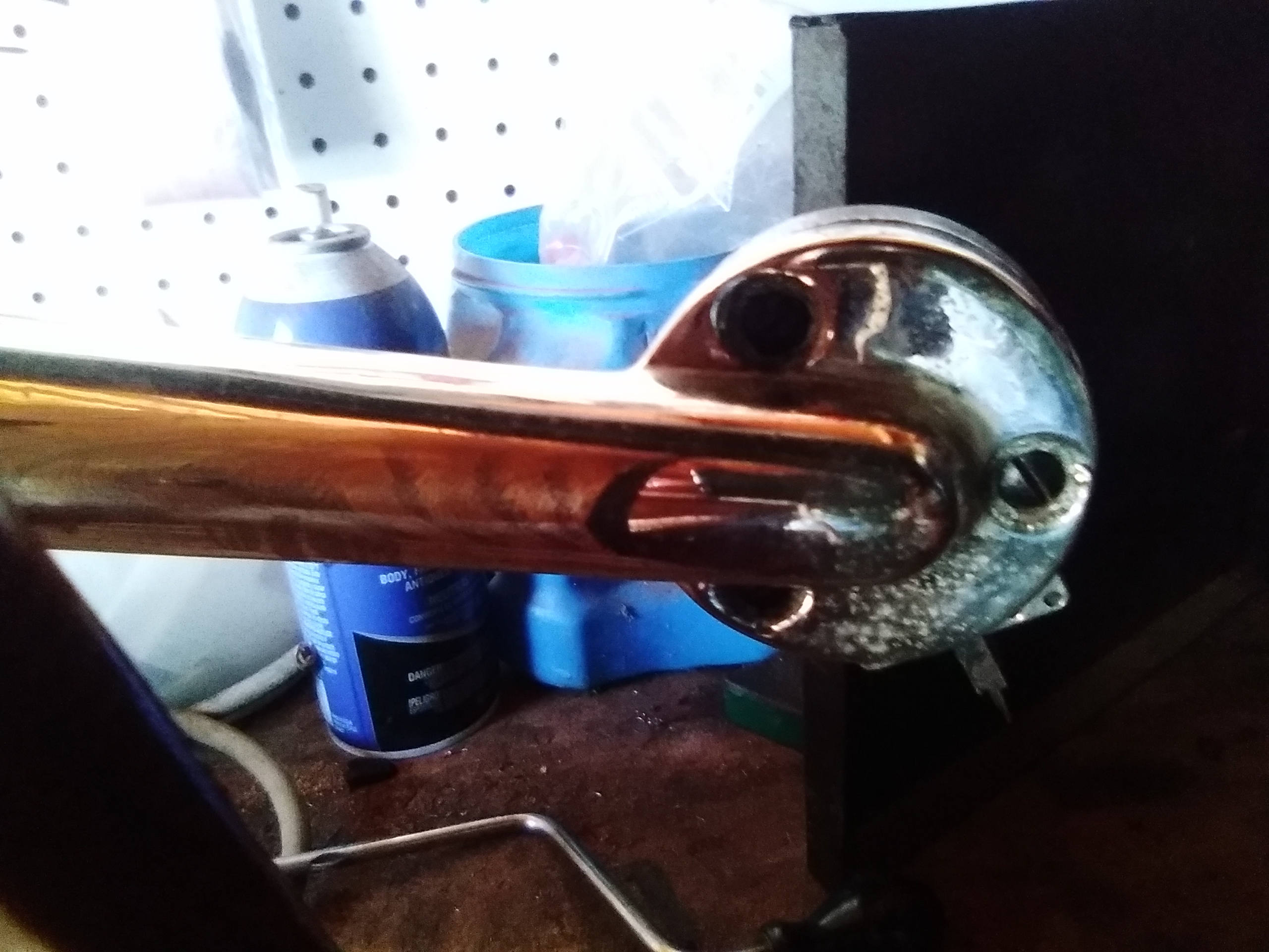 Nickel plating on horn elbow, made with DIY nickel-acetate solution,