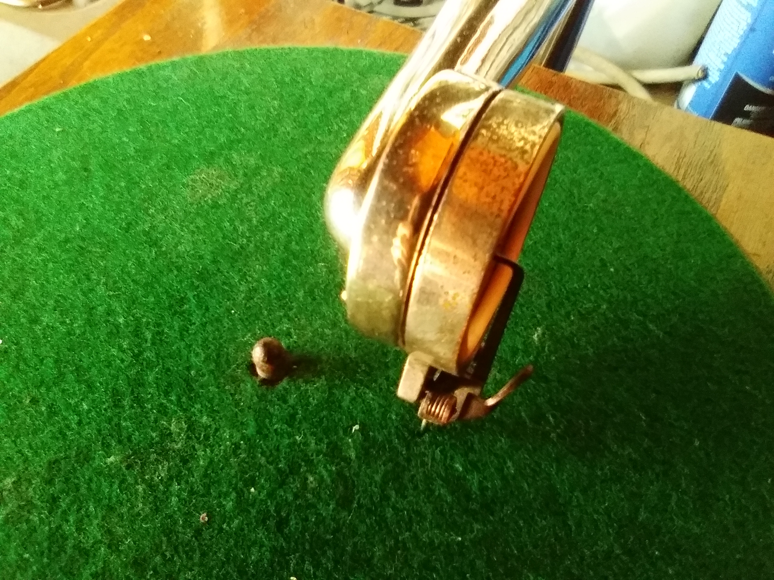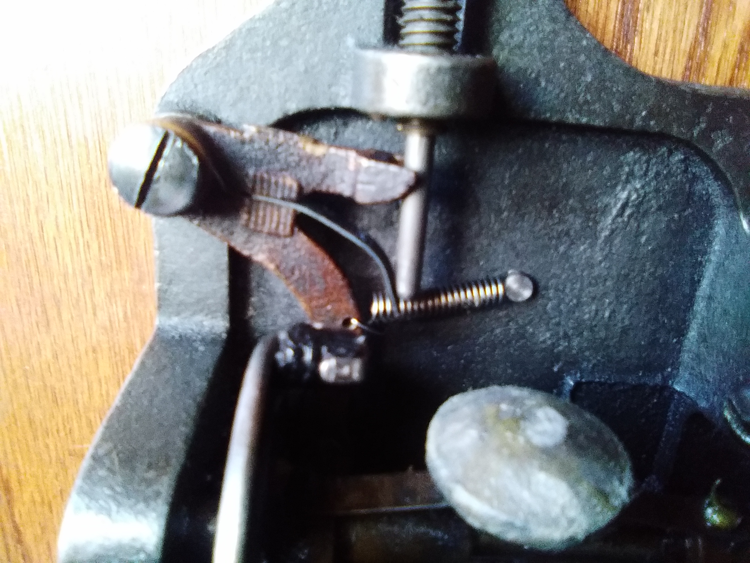 New spring on governor yoke to work with stop plunger, made from a clock spring