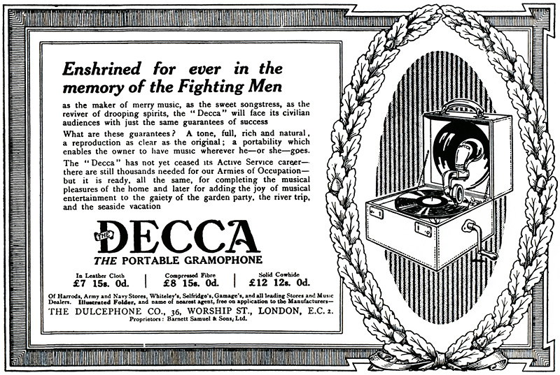 Arriving just in time for the start of WW1, the Decca soon became the market leader among British portables.