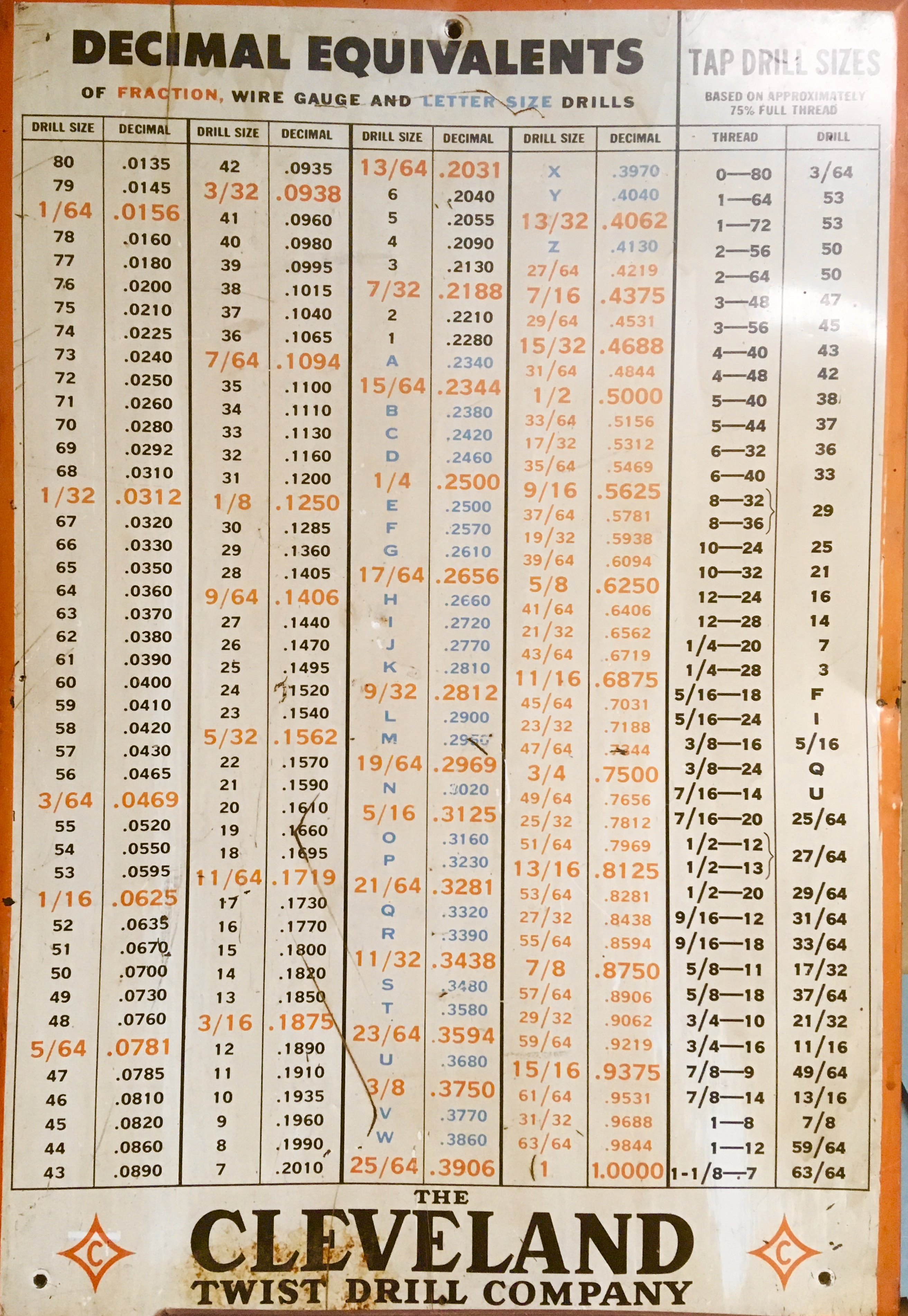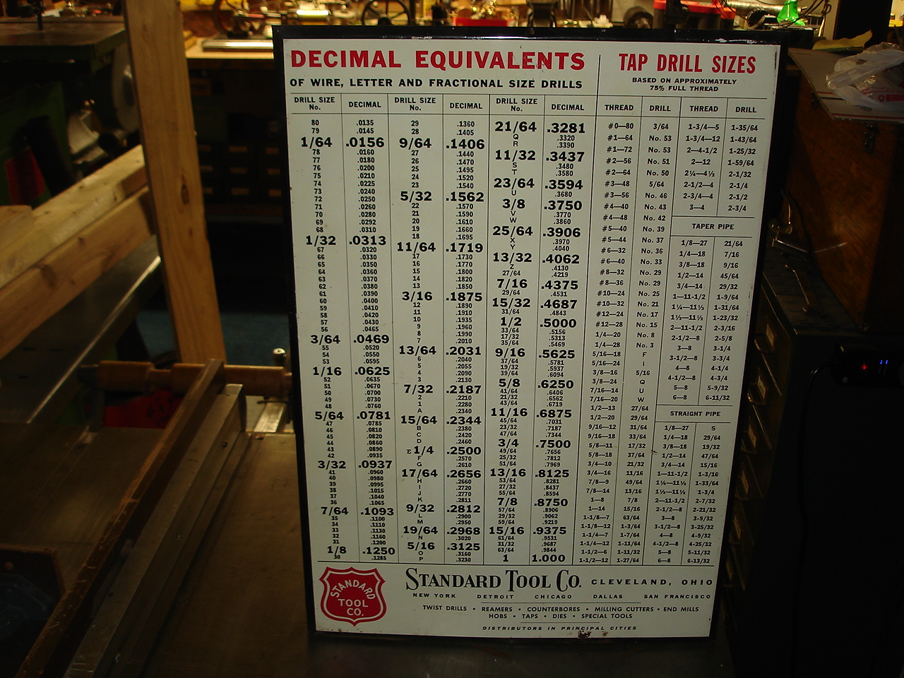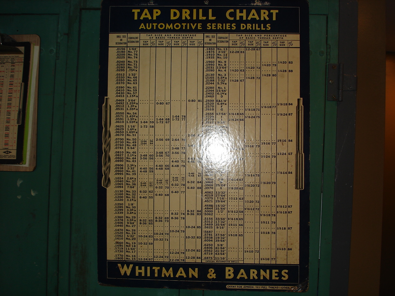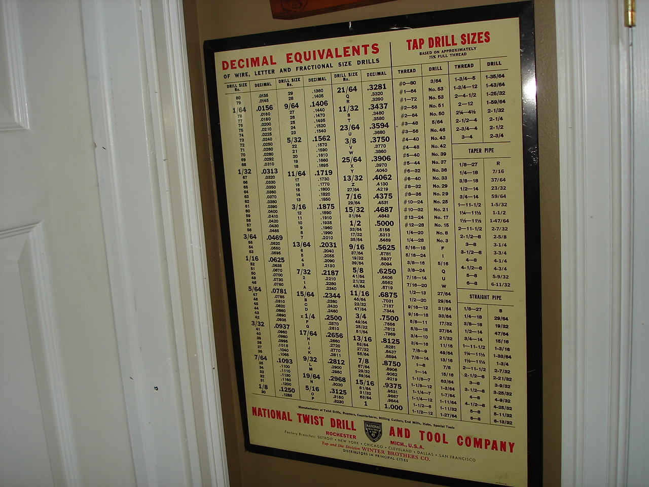 For those of you that do machine work here is a useful wall chart that may help when selecting drill bit sizes.