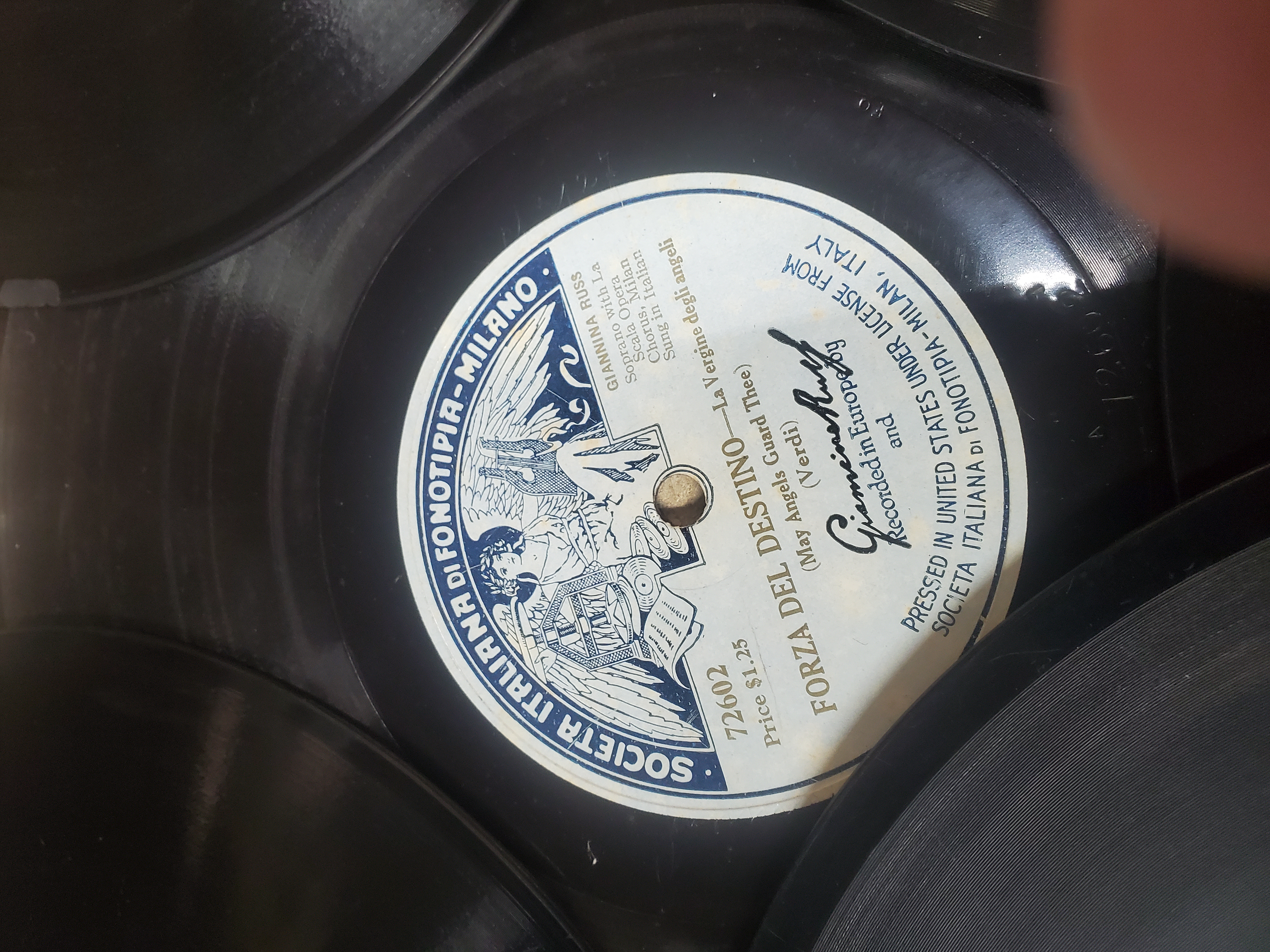 The example pictured is an American pressing. To compete with Victor's Red Seal celebrity records, Columbia acquired the rights to issue Fonotipia's operatic recordings in the USA. This arrangement lasted from about 1908 to 1910.