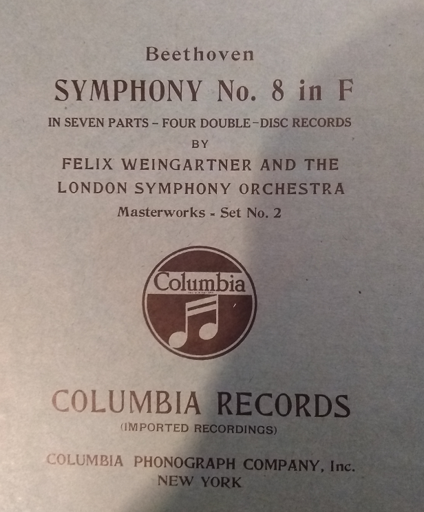 Columbia actually issued three recordings of Weingartner leading this work: with the London Symphony Orchestra in set 2 (acoustic, the one you have); with the Royal Philharmonic Orchestra in set 64, one of the Beethoven centennial sets; and then with the Vienna Philharmonic Orchestra in set 292. In my copy of set 2, all the records have the ribbon style gold labels.
