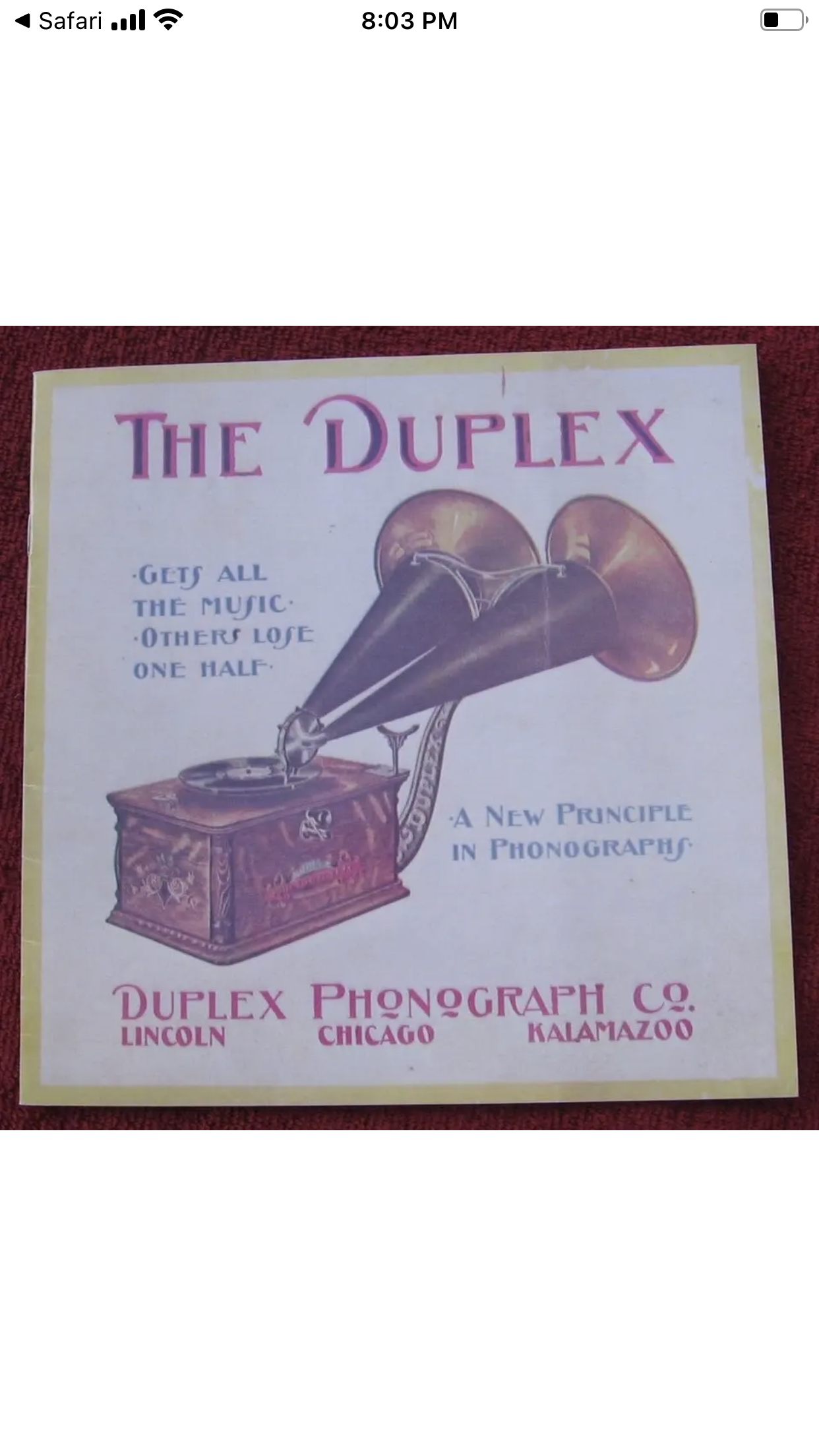 Thanks for the suggestion. I just noted a brand new twin horn gramophone presented for sale on eBay https://www.ebay.com/itm/265355980789?m ... media=COPY
