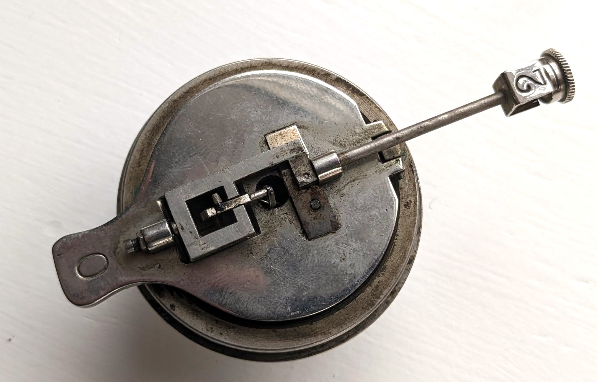 An absolutely outstanding example of a desirable reproducer. This is an Edison O, playing both 2-minute and 4-minute cylinders. It swivels easily in between the two stylus. Made for the large carriage, this reproducer belts sound. Both jewels are present and play well. As noted, the original body on this O reproducer is made of steel, not pot metal. It fits into a carriage easily.