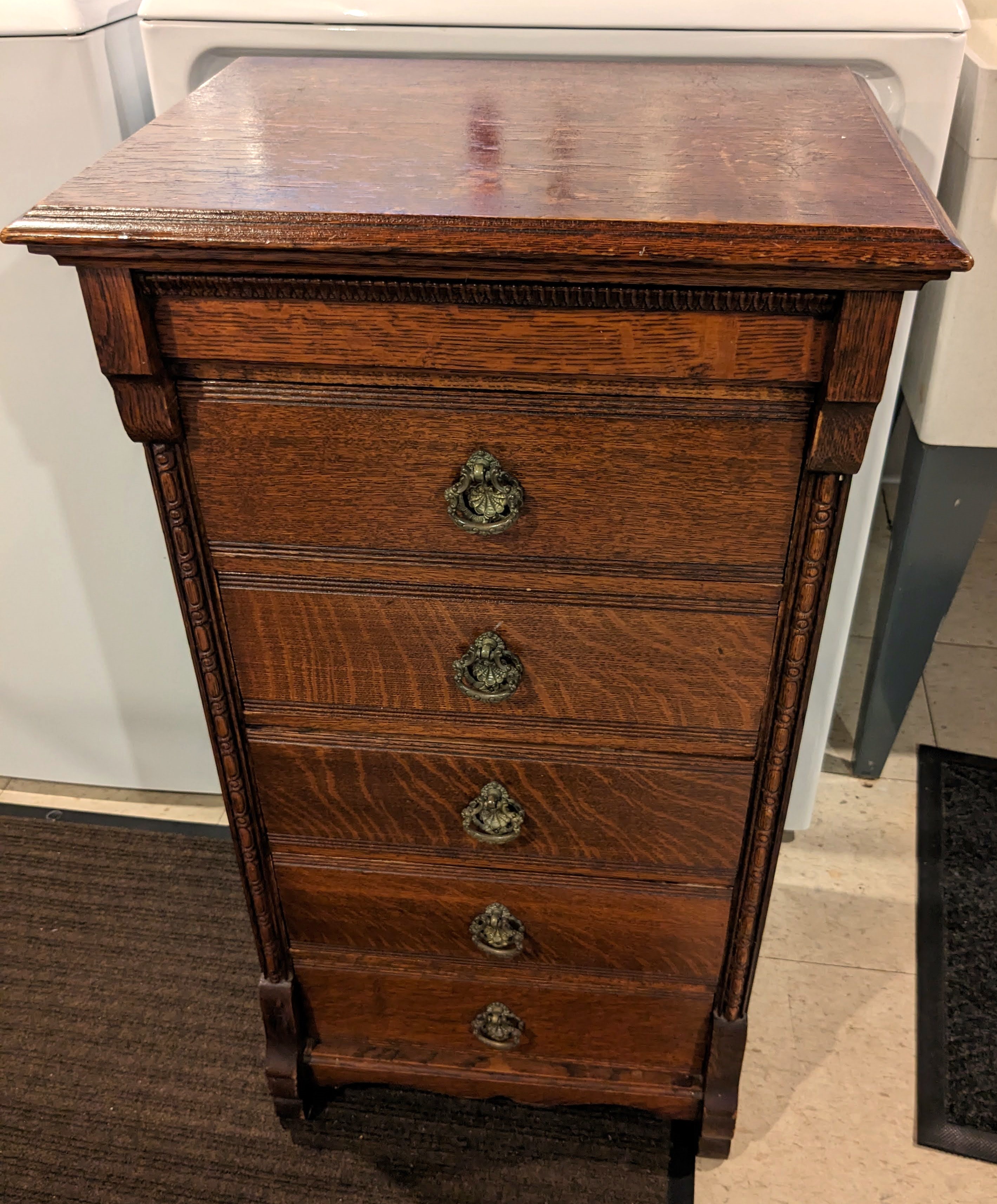 A very uncommon cylinder cabinet found in exceptional condition. This is a Columbia No. 1, smaller than the number 2, but still able to to support a large machine. So, what's special about this one? We'll: