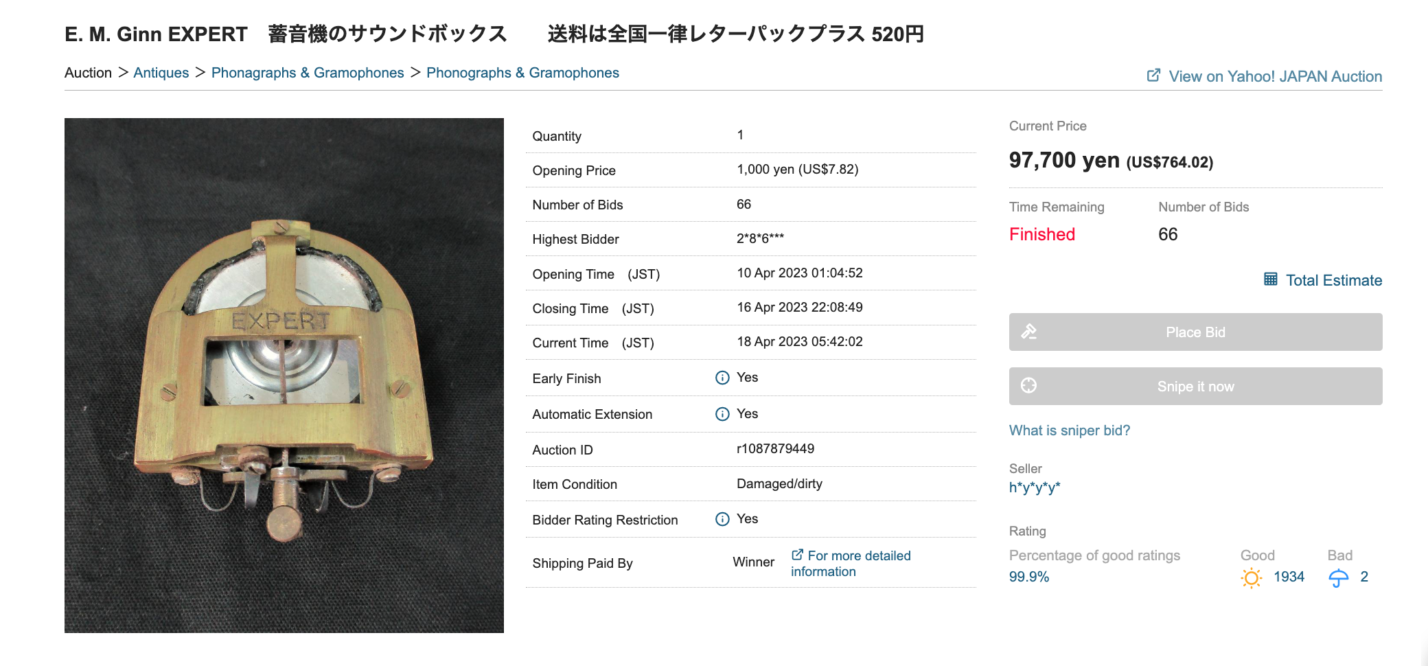 EMGinn Expert Soundbox sold for $764.00 in Yahoo Auction Japan