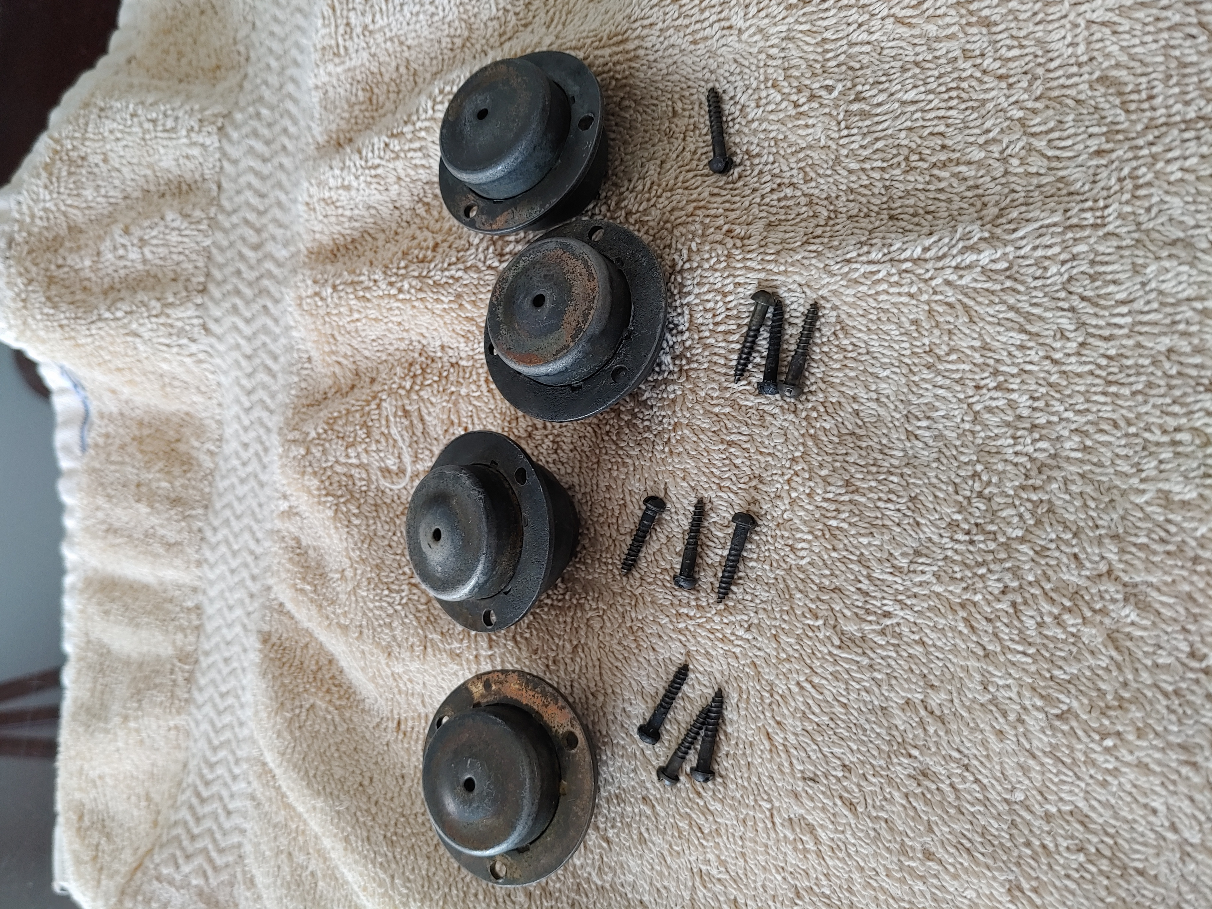 I have a complete set of the roller castors for a VTLA. These are clean and smooth rolling, no rust, not dented, not bent. All of the rollers move freely and are held properly in the mount. There is a number imprinted on them, but I cannot make it out. Includes 10 of the 12 original screws. First to post sold will get them, follow up with PM for shipping and payment details. Shipping will be actual cost.