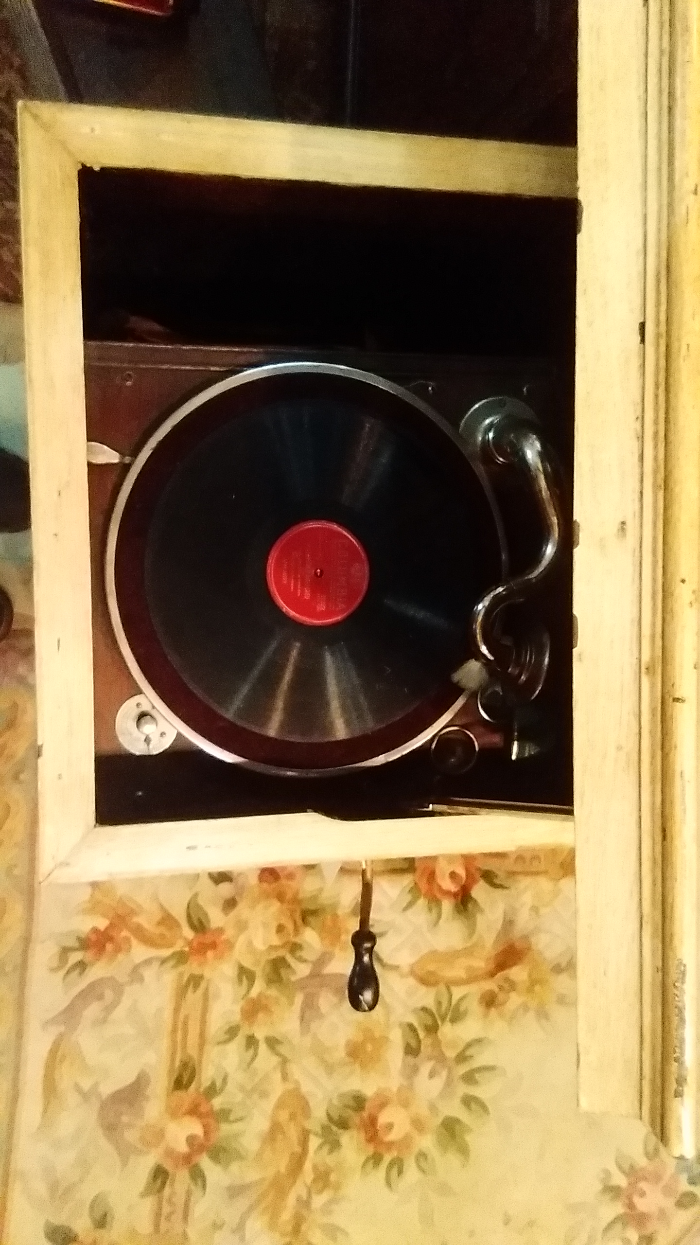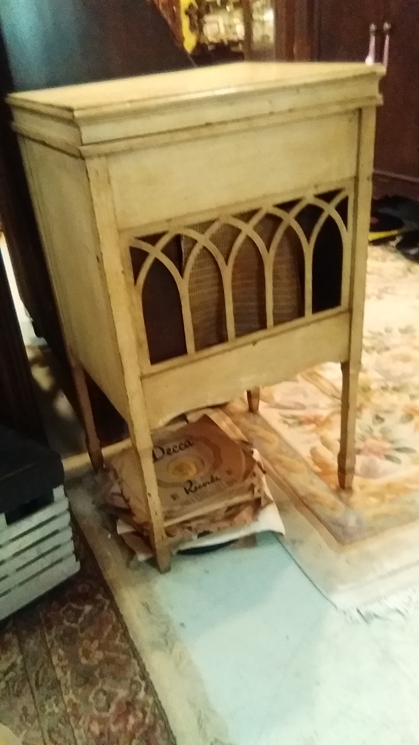 I'm probably going to just get the paint off it, refinish and repair the cabinet, and go through the mechanism just to get it working right. The Alba soundbox stays; nothing wrong with an upgraded soundbox.