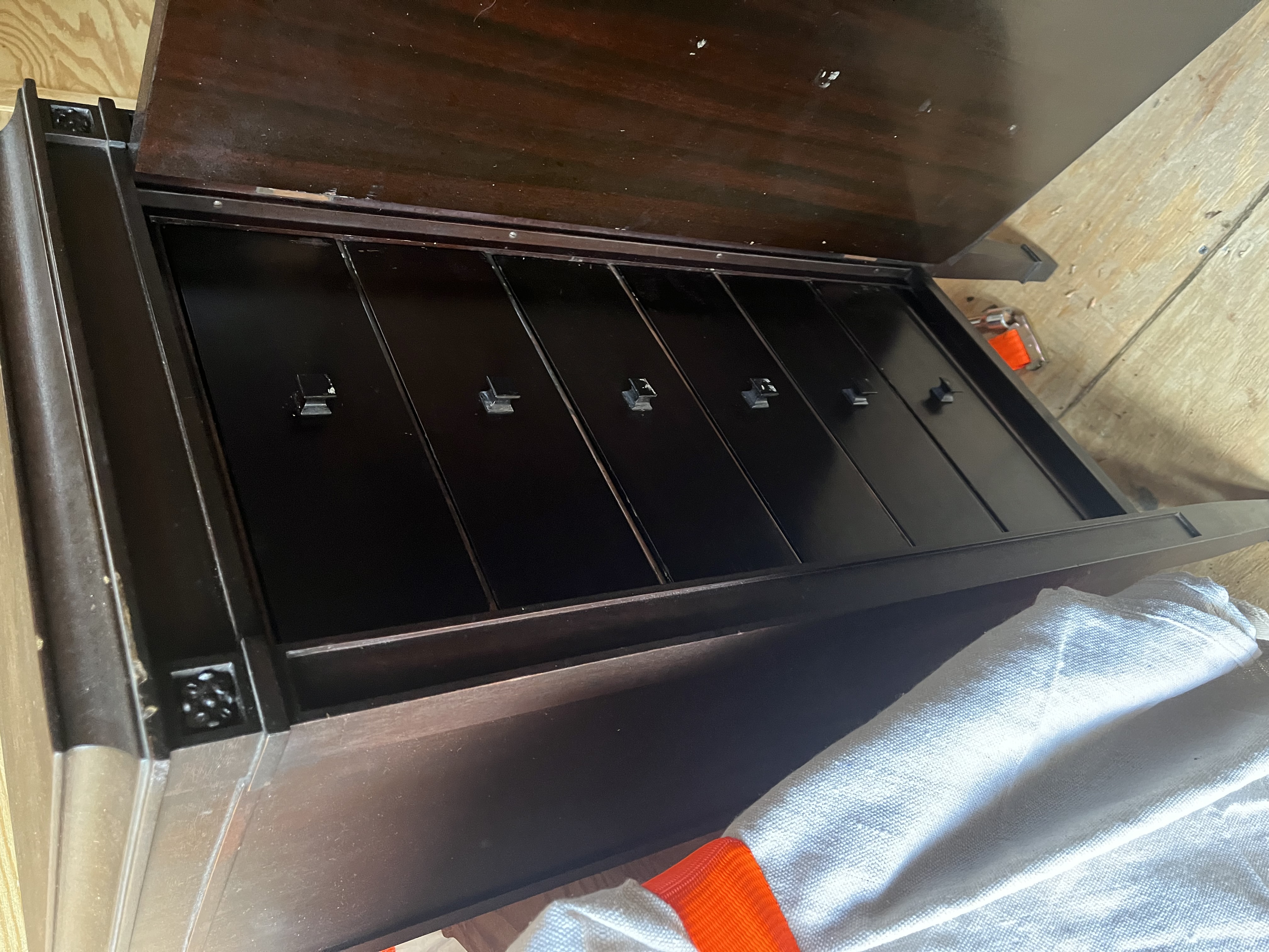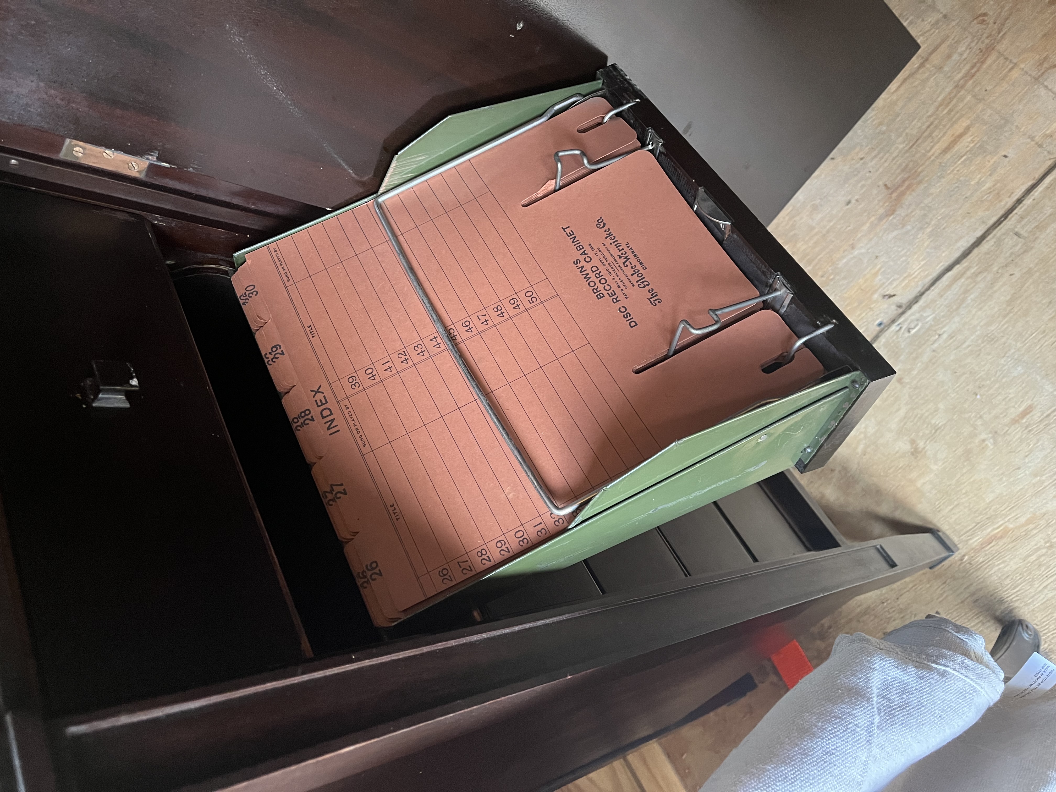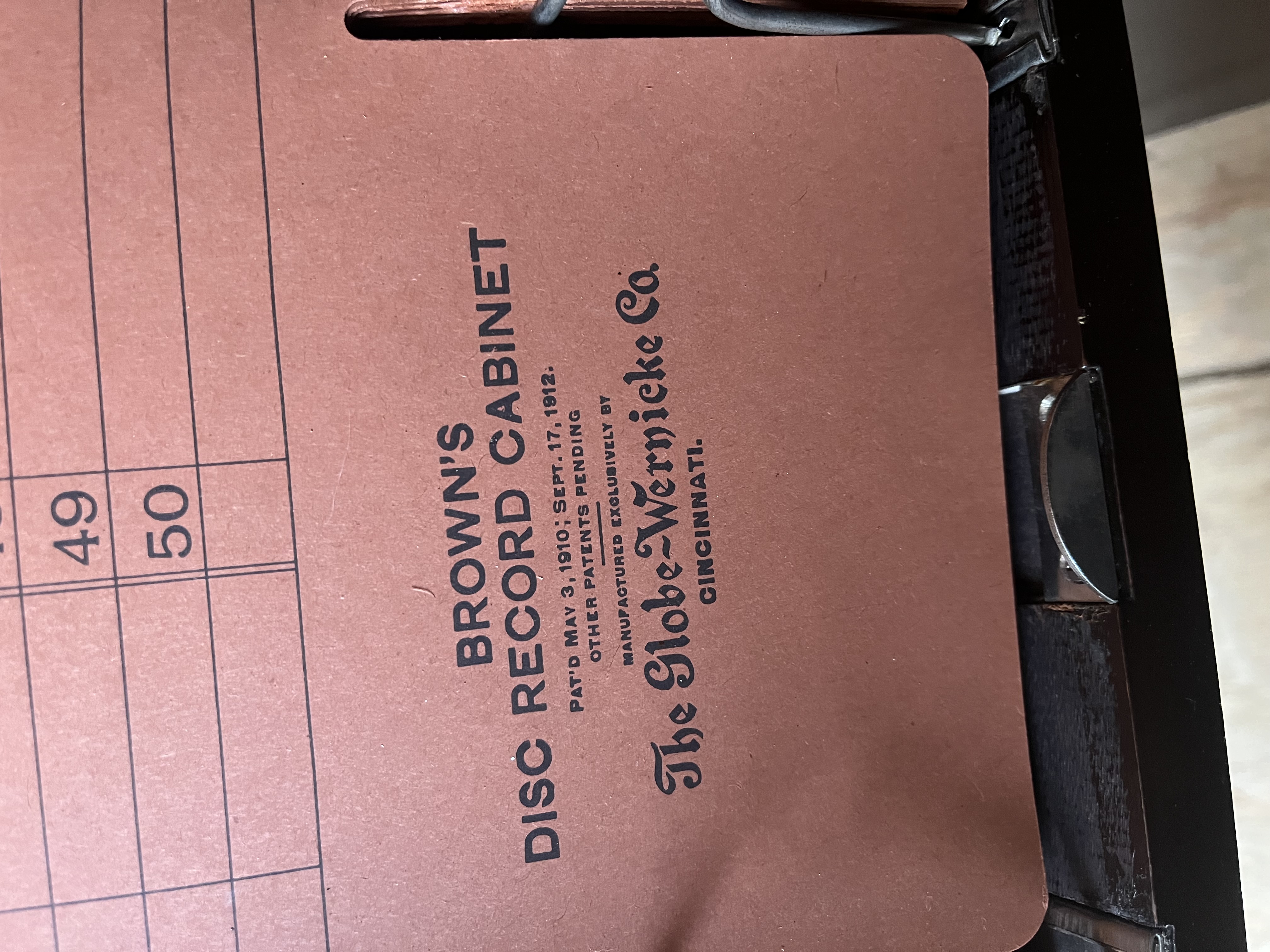 Very unusual record cabinet. This is the only one I have seen. Does not seem to have been used because all of the dividers are impeccable shape.
