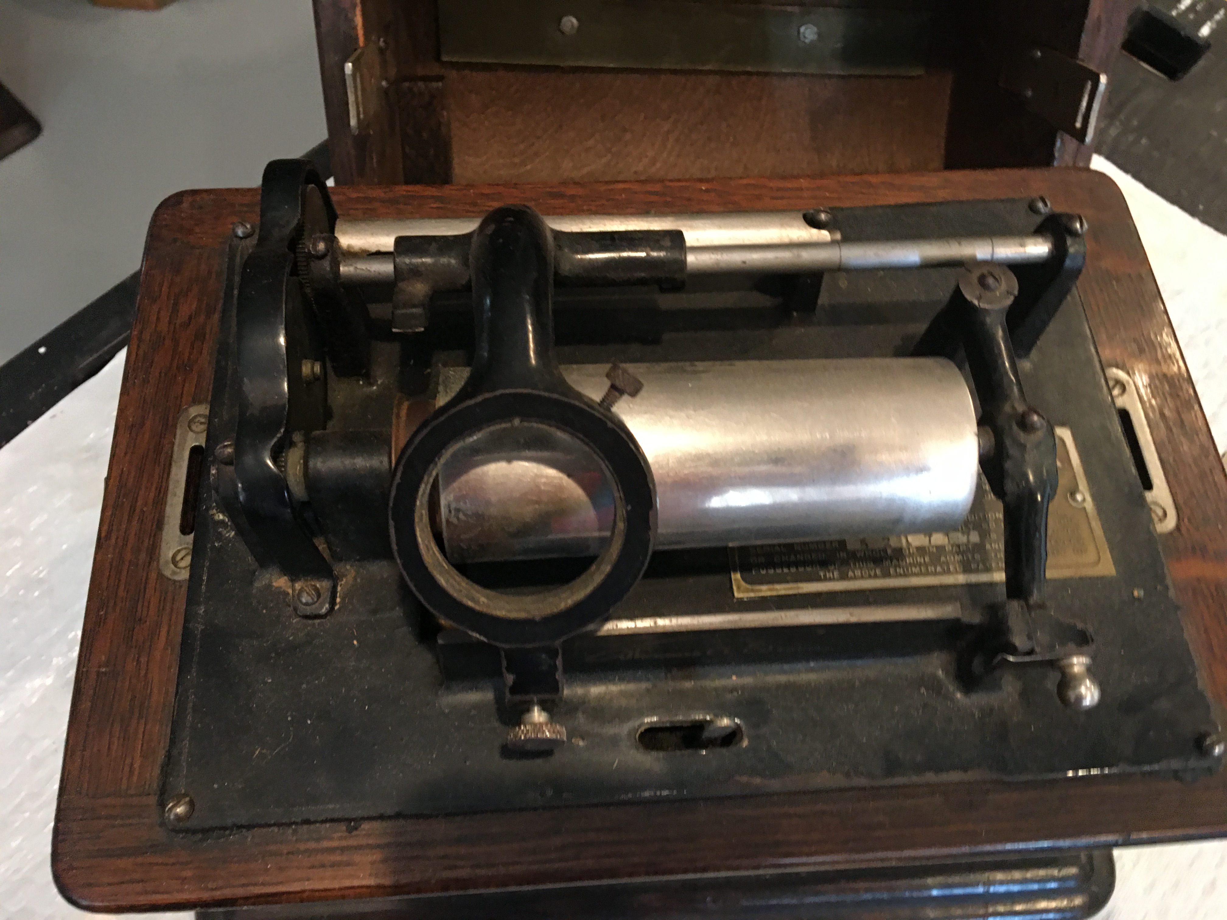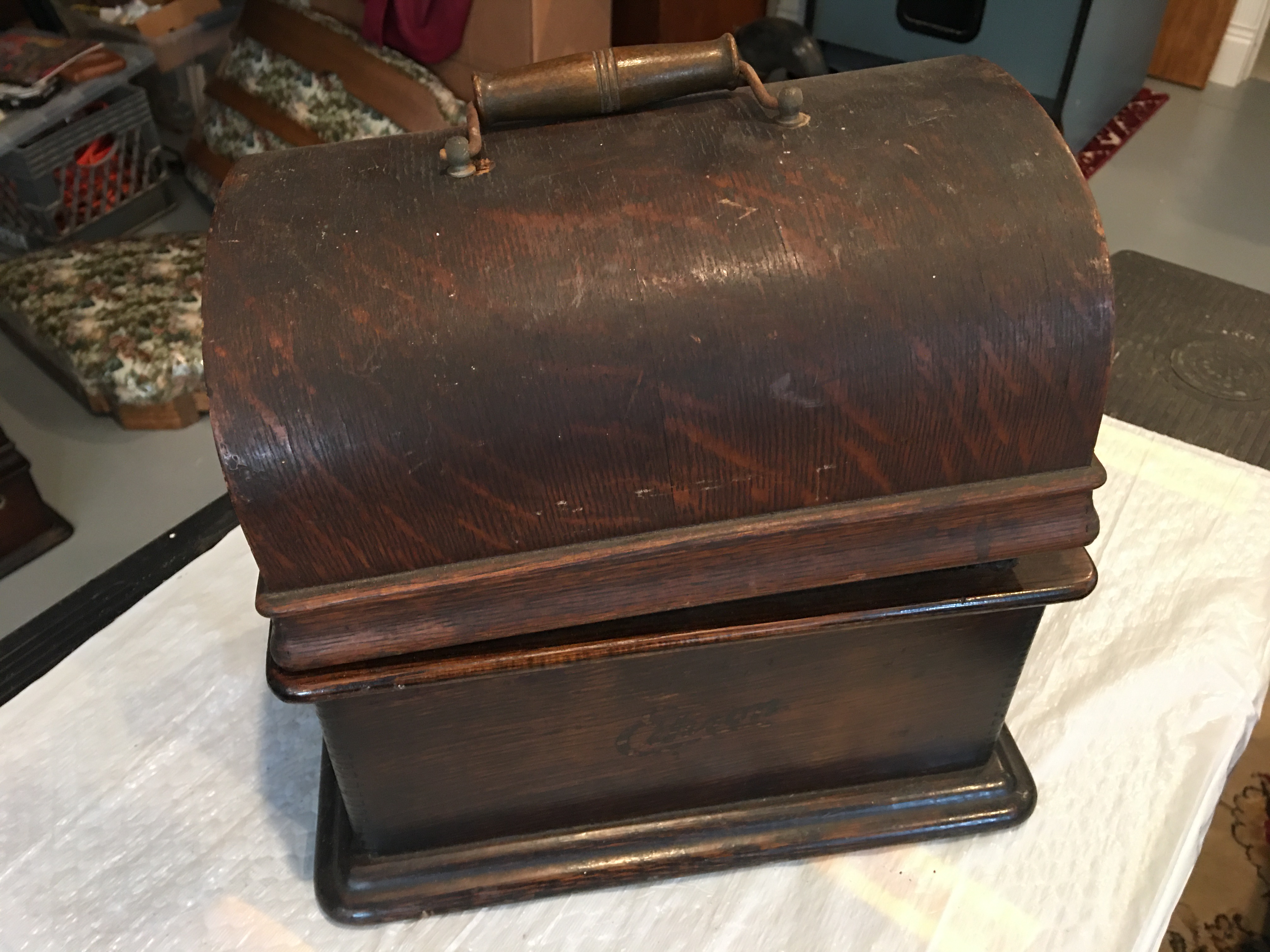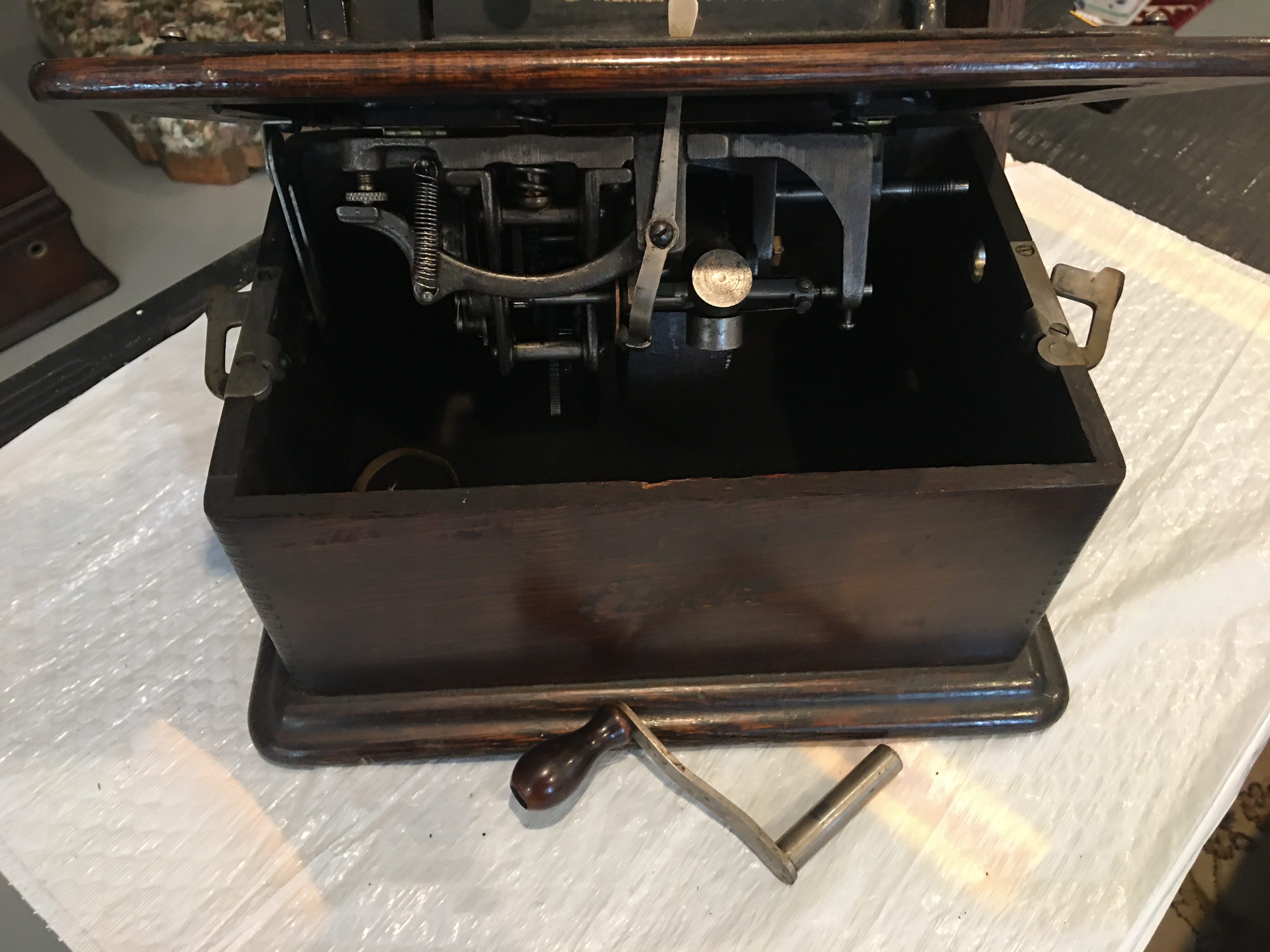 Edison Standard Model B. 2-minute. Motor runs, has crank. No reproducer or horn. Rough decal. Needs refinish. $175