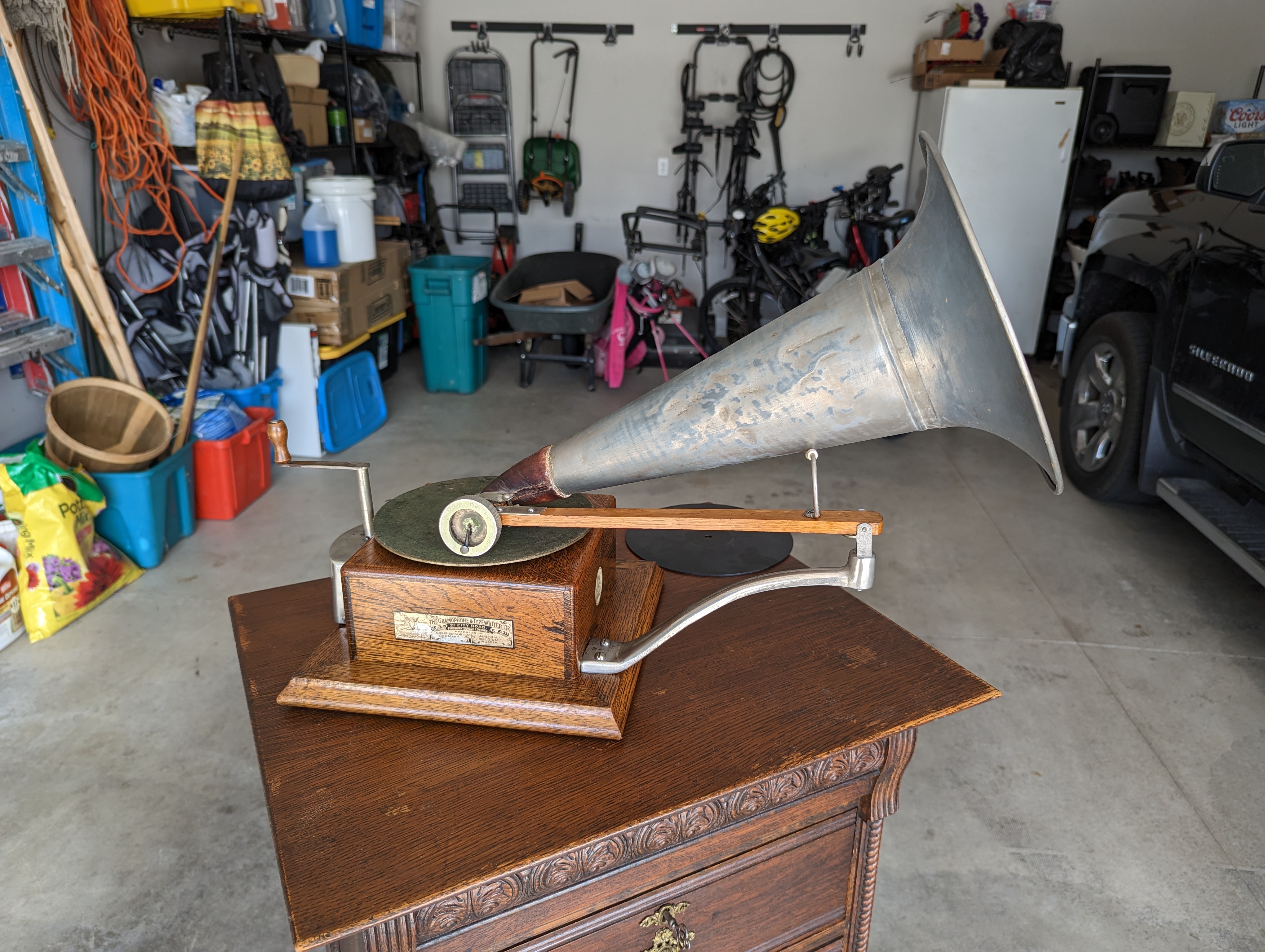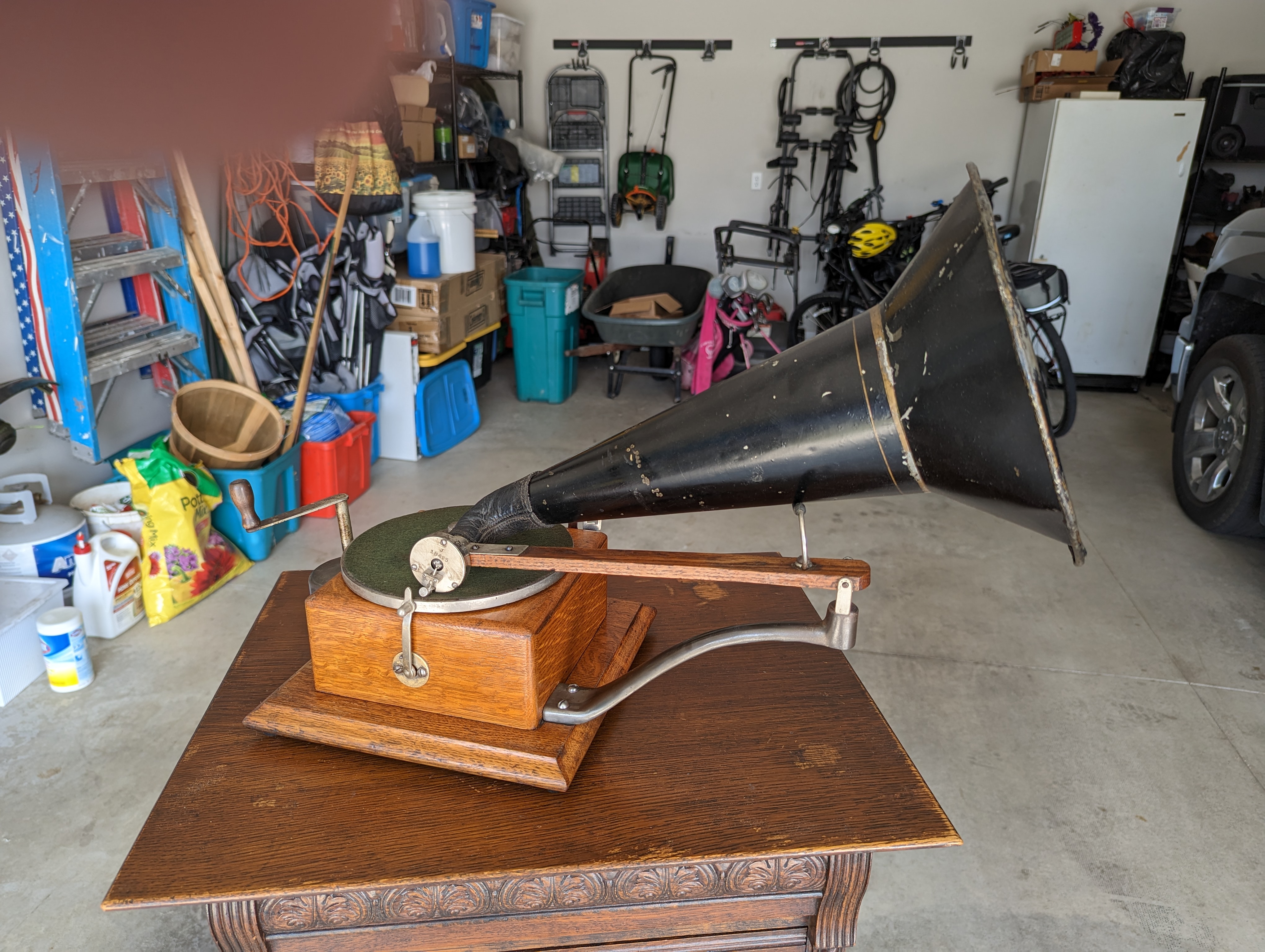 Edison Standard Under Glass with original Polyphone attachment and original reproducers and original funnel horns (rare)