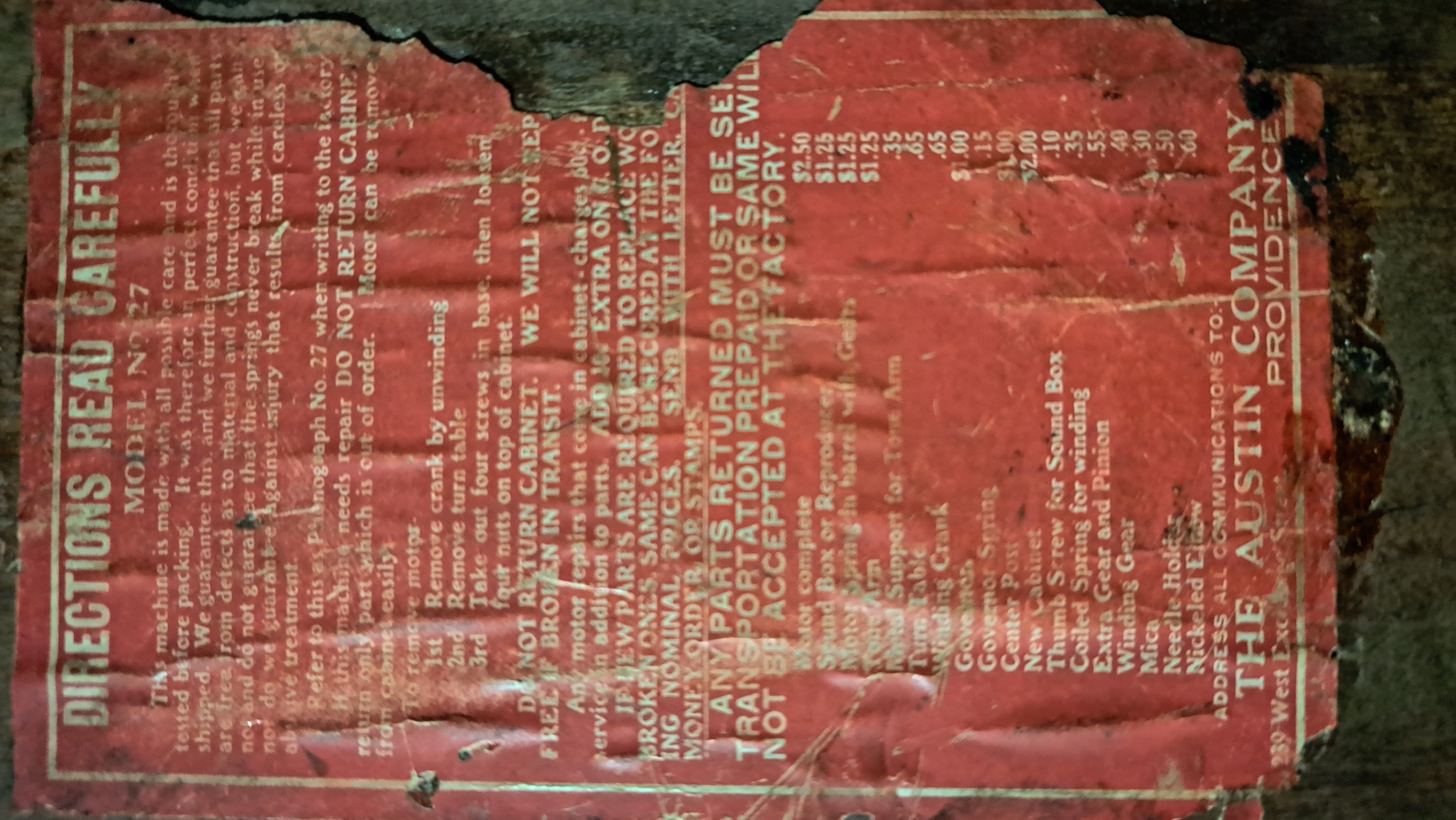 Manufactured by The Austin Company of Providence, Rhode Island, it was marketed a Peerless phonograph.
