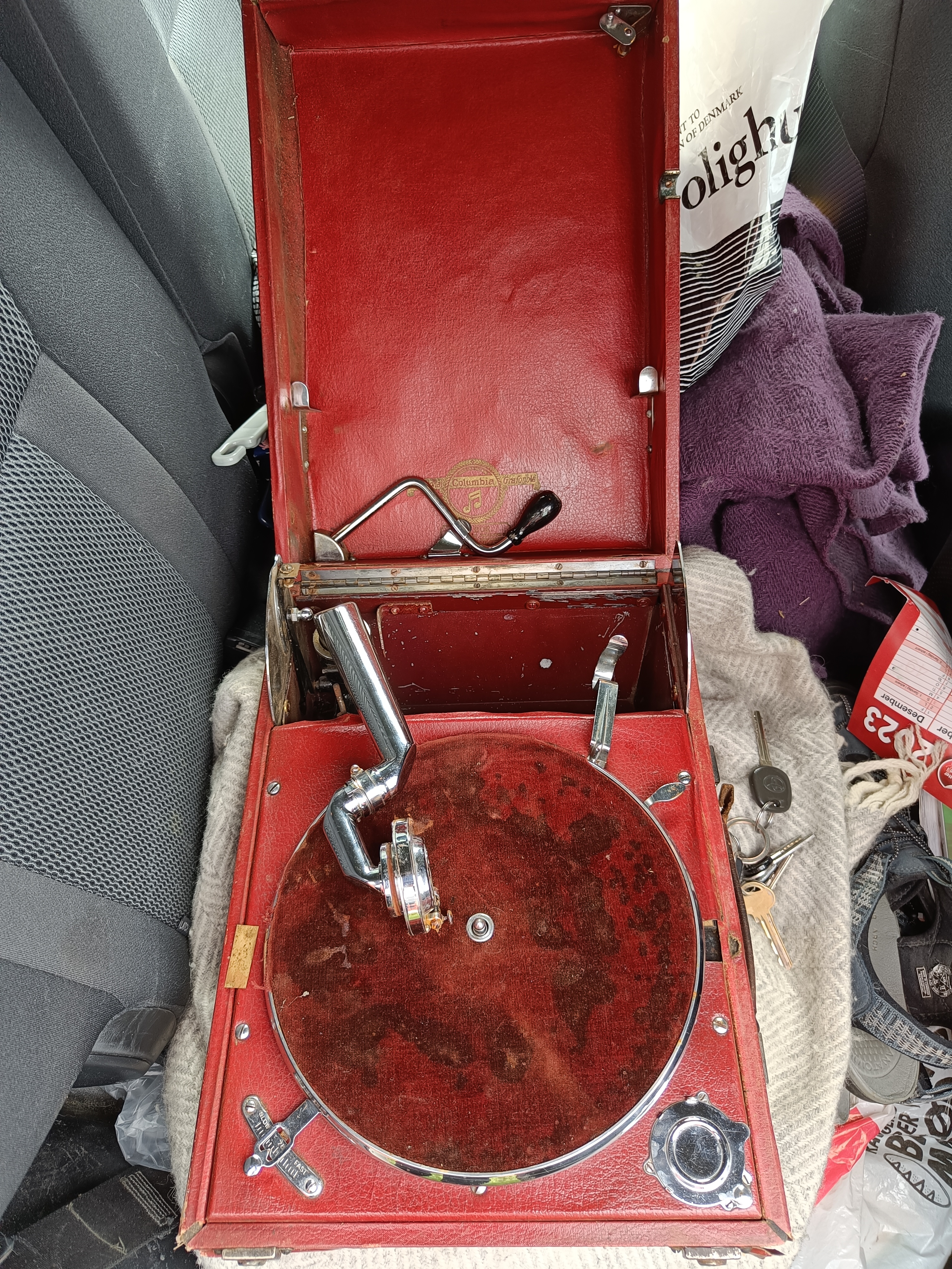 I told the facts about the machine to the seller, the missing record album etc...and the price was immediately lowered to....£ 8, delivered 3 km from my doorstep, where I met the seller.