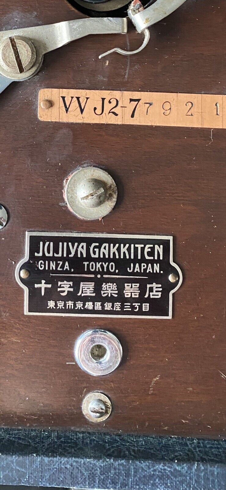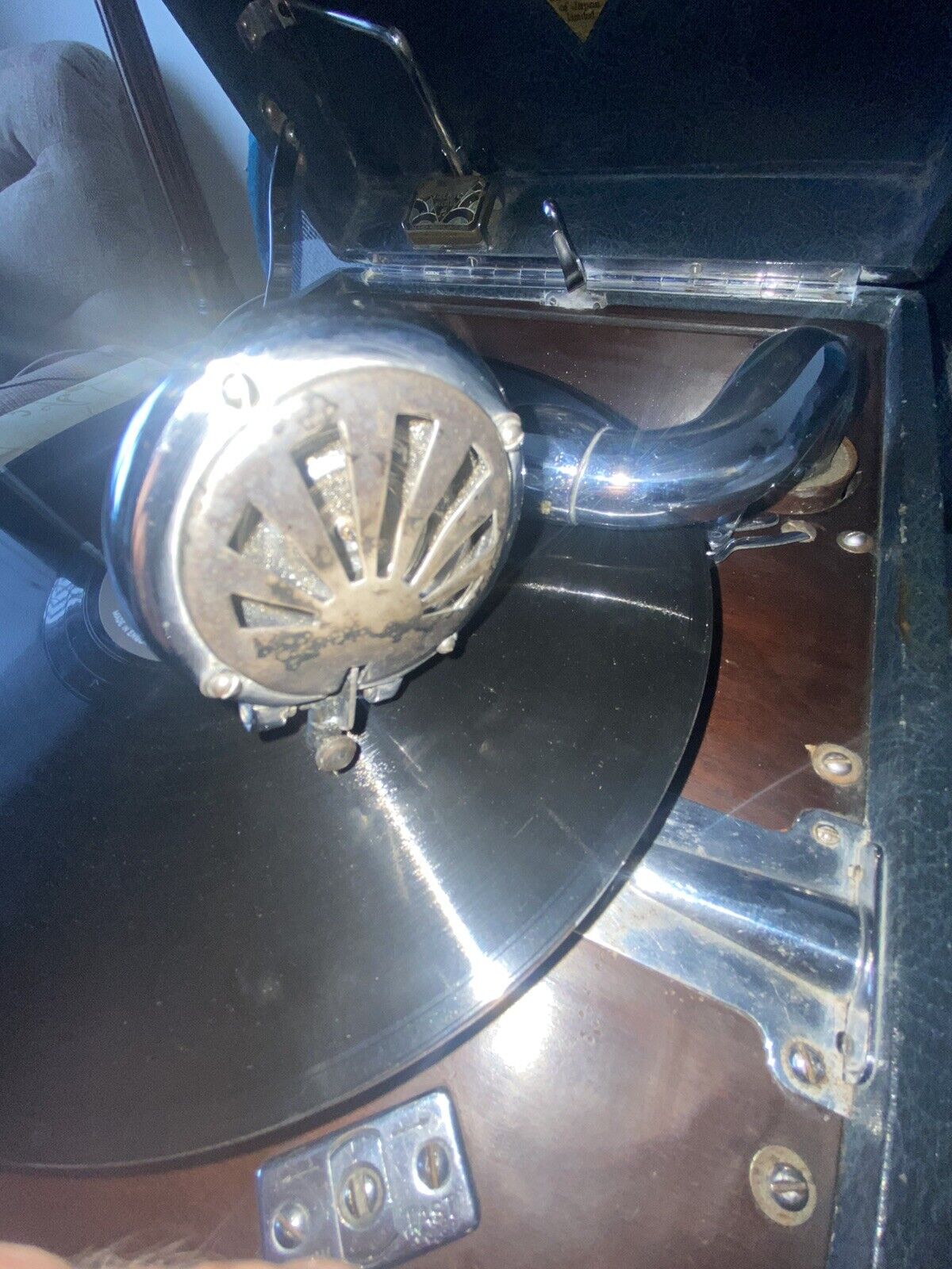 This Japanese portable is rare in the UK, but it has issues. The winding return spring needs repair or replacement, and the original soundbox appears to have been replaced with a British made Songster. Sadly the pictures on the Japanese Victor thread, which might have shown the original soundbox, have been lost.