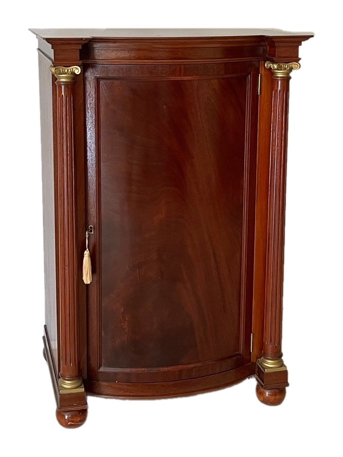 Anybody that knows me is aware that I will always admit a mistake if one is made. I honestly thought I had won this lot and placed it in our van. The auction ran three days and not a word was said. When I settled my bill, there was a "mahogany bowfront cabinet" listed and I assume that was the cabinet in question here.