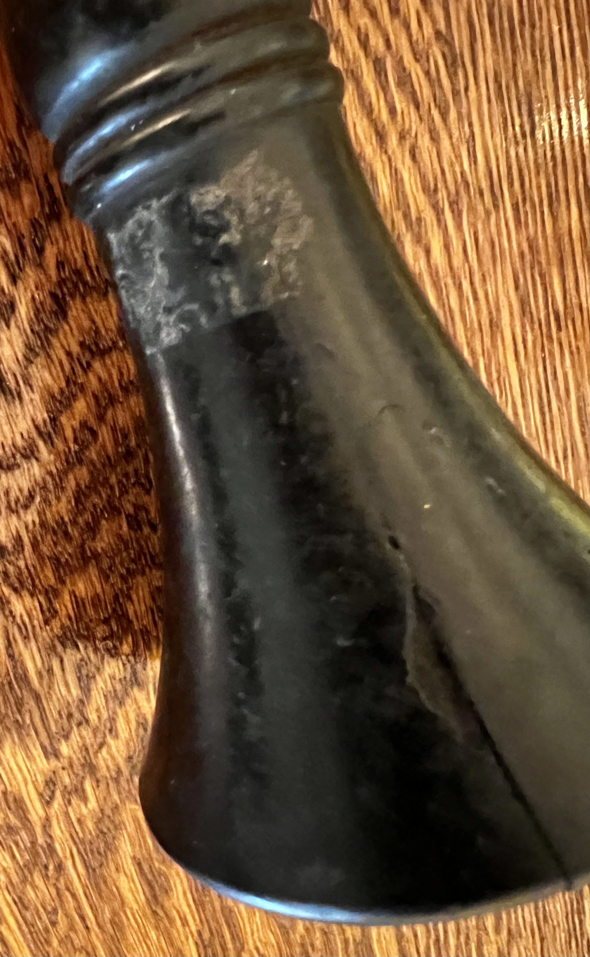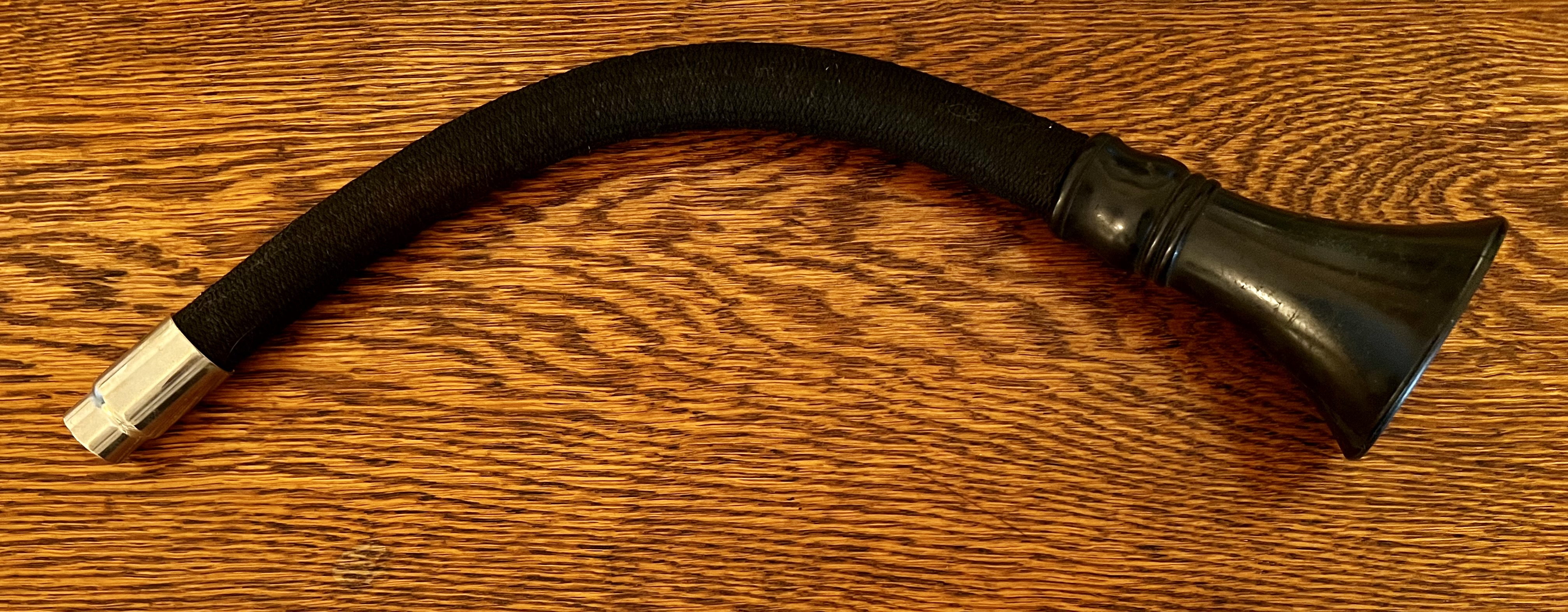 I’m offering a nice original Edison speaking tube. The flexible portion and the end that go into the reproducer are in great condition. The speaking end has some cracking on the inside and outside as can be seen in the pictures. These are hard to find in any condition and this is a nice one. Payment to be check or money order. PM for questions or commit to buy. I’ll pay the shipping anywhere in the Continental USA.