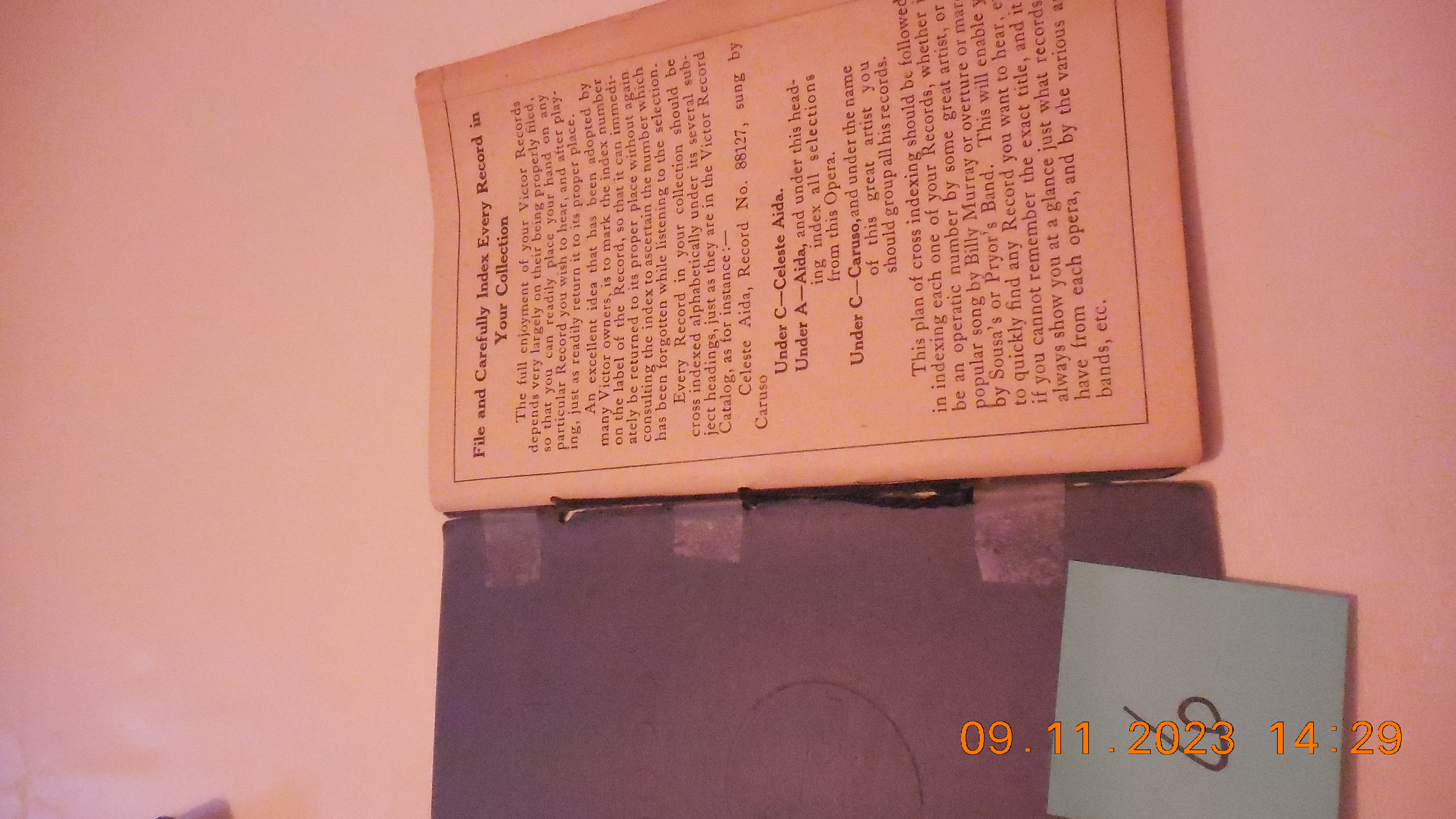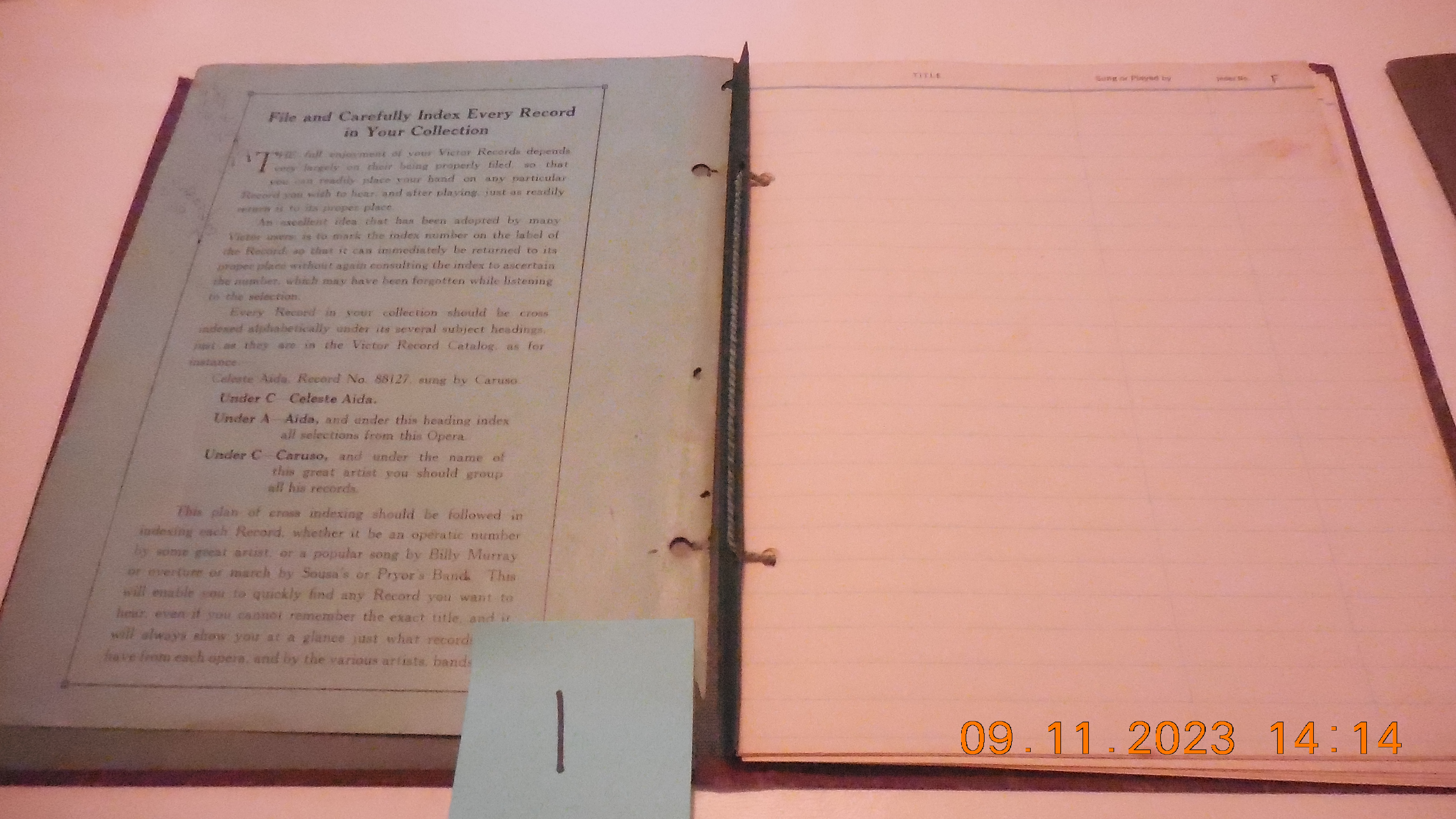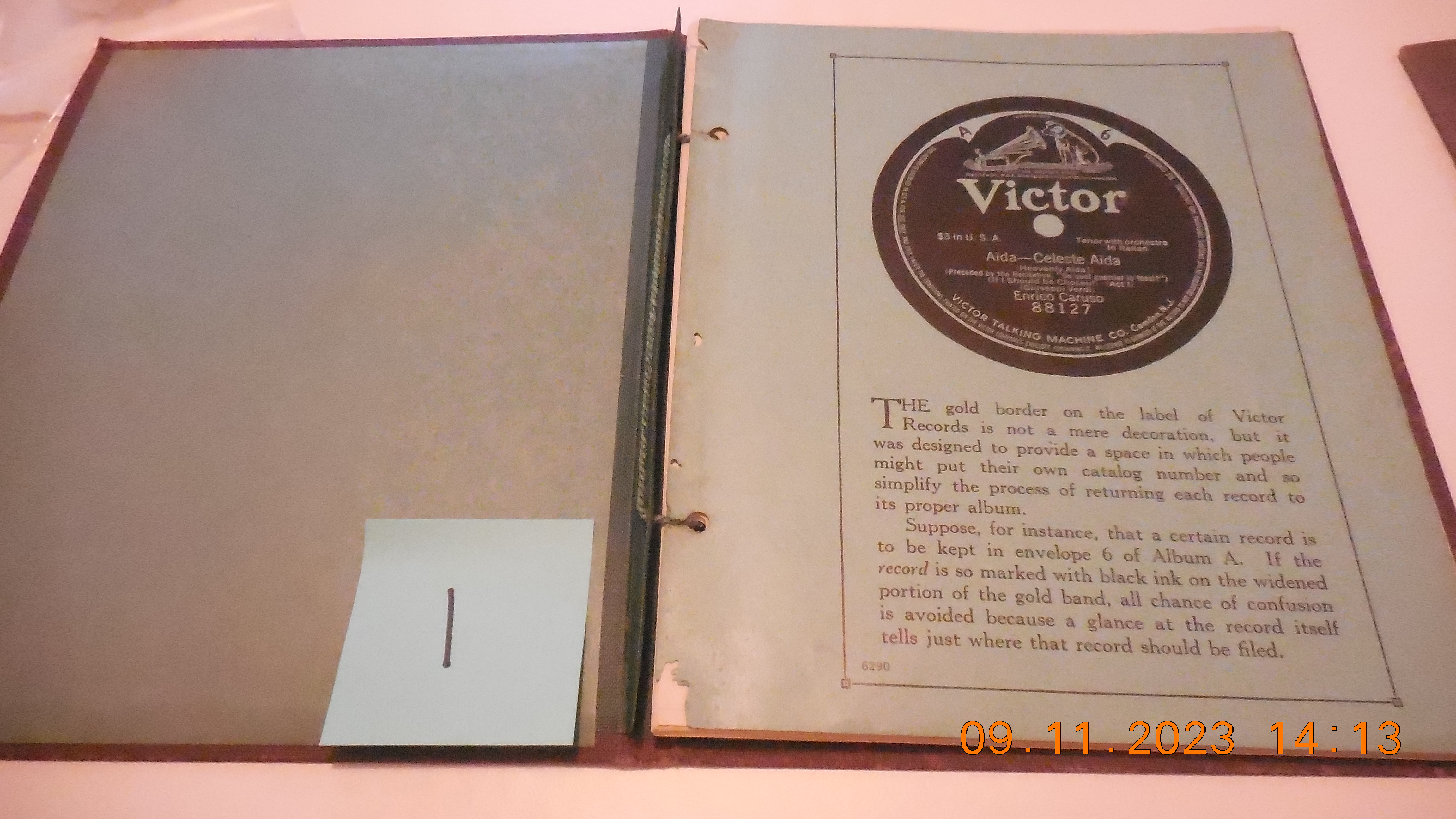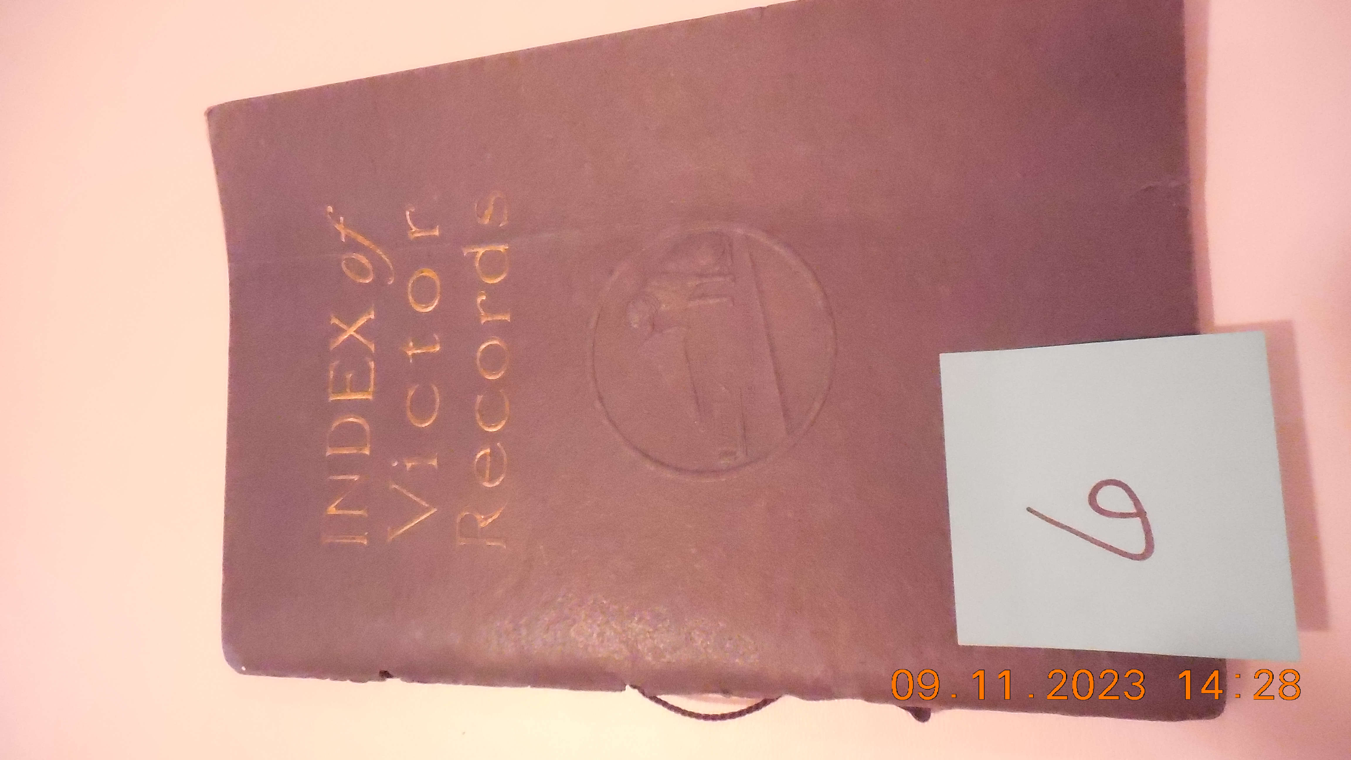 #1 -- Index of Victrola Records--- First page is detached at the punched holes (easy fix) No entries in the book.