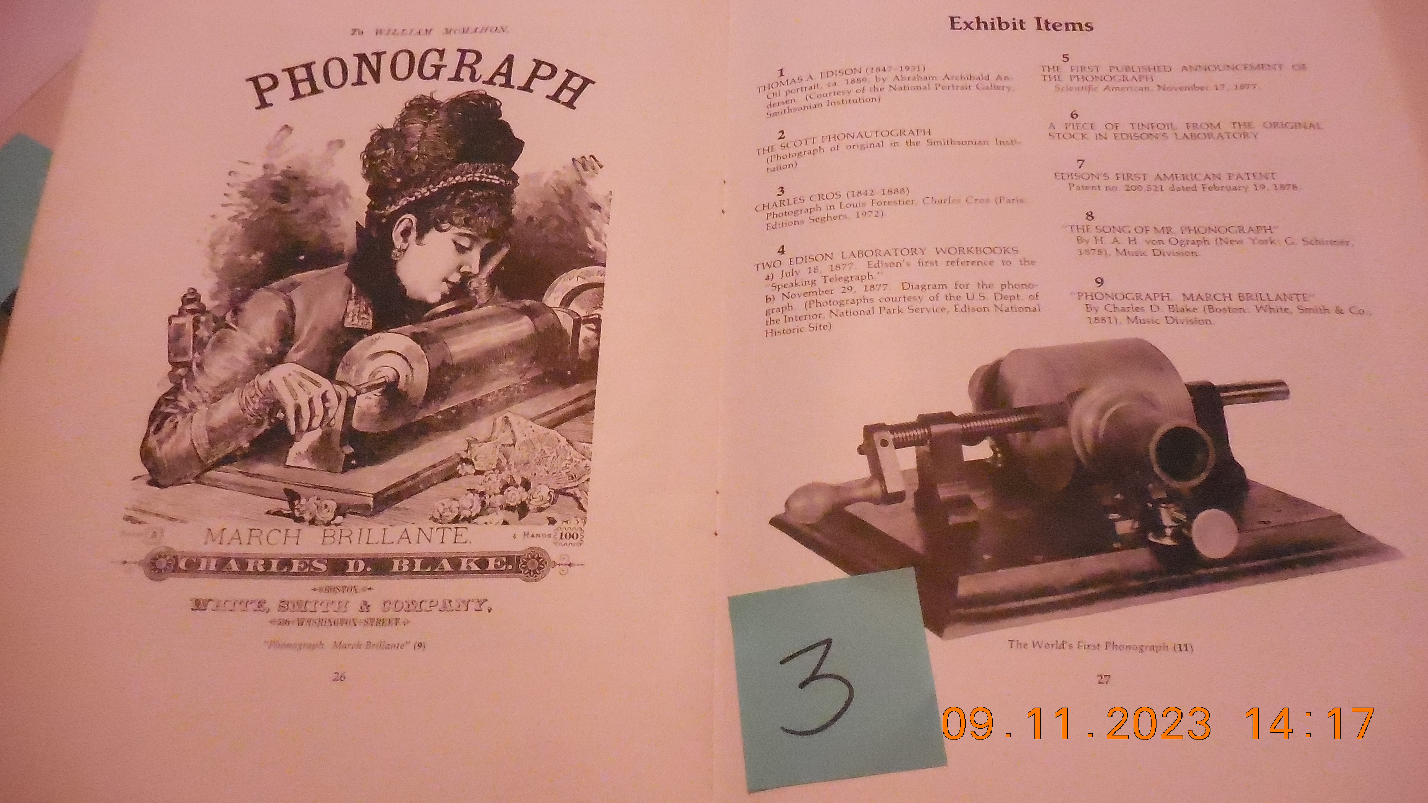 #3 -- A Wonderful Invention- Brief History of the Phonograph. 1977.. Companion book to the 100th Anniversary Exhibition at the Library of Congress in D.C. 40 pages.