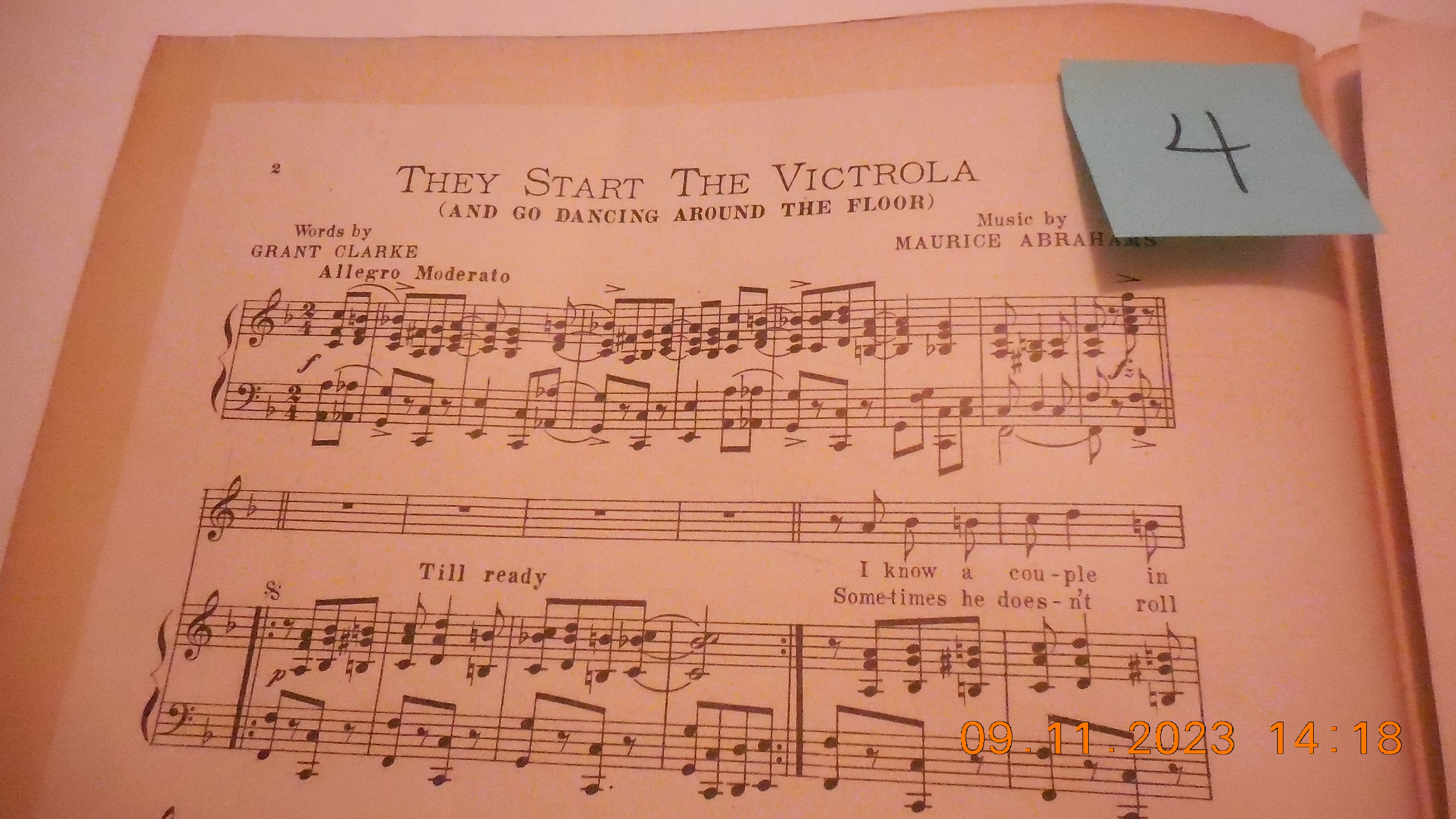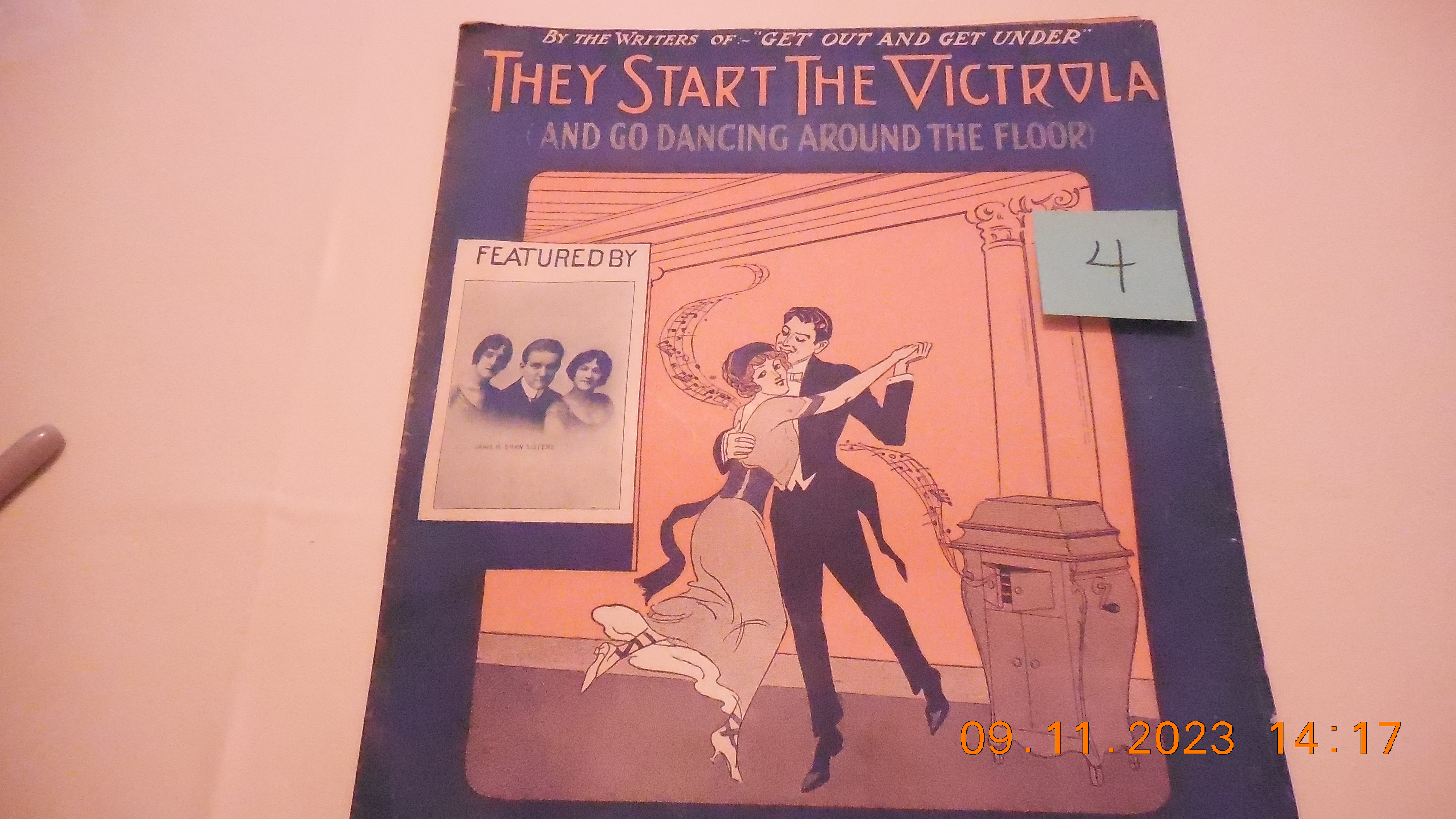 #4 -- They Start the Victrola-- and Go Dancing Around the Floor-- large format Sheet Music with great graphics- 10 ½" x 13 ½" (shipped rolled in tube)