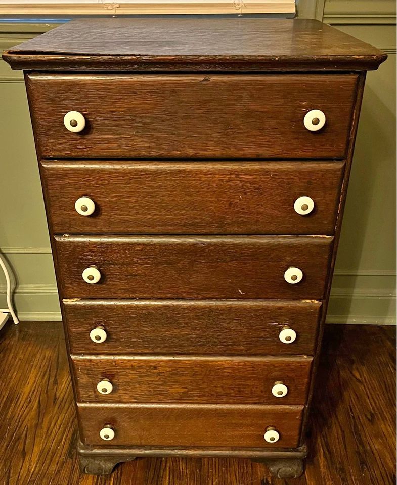 Thanks for the suggestion! I couple of people have recommended me https://paxtonhardware.com/products/flo ... rian-knobs these knobs, which look quite similar to originals. Currently, the cabinet has ceramic knobs which are in nice shape and look decently old. So I may just leave those! Included is a picture of the cabinet in its current condition.