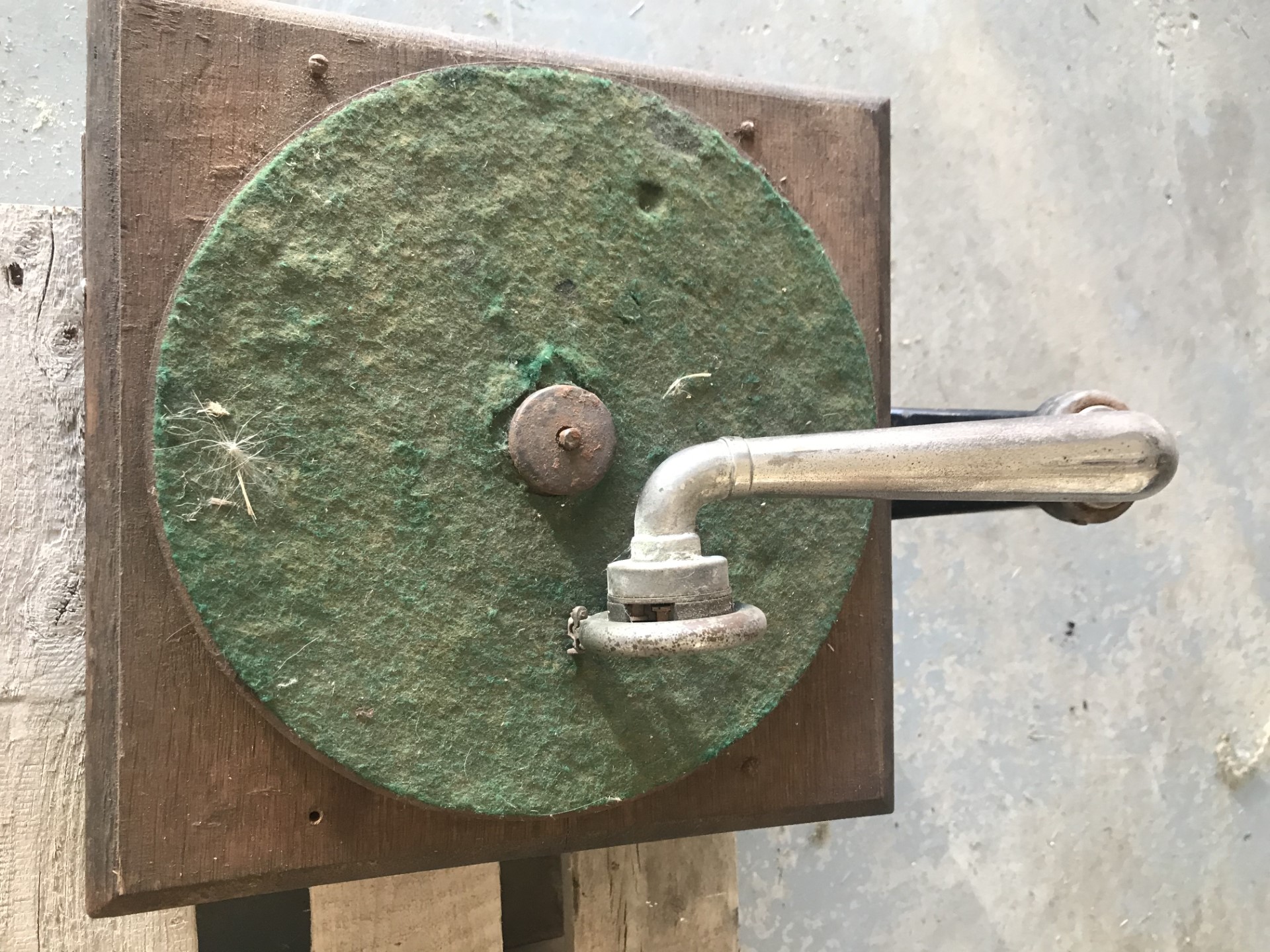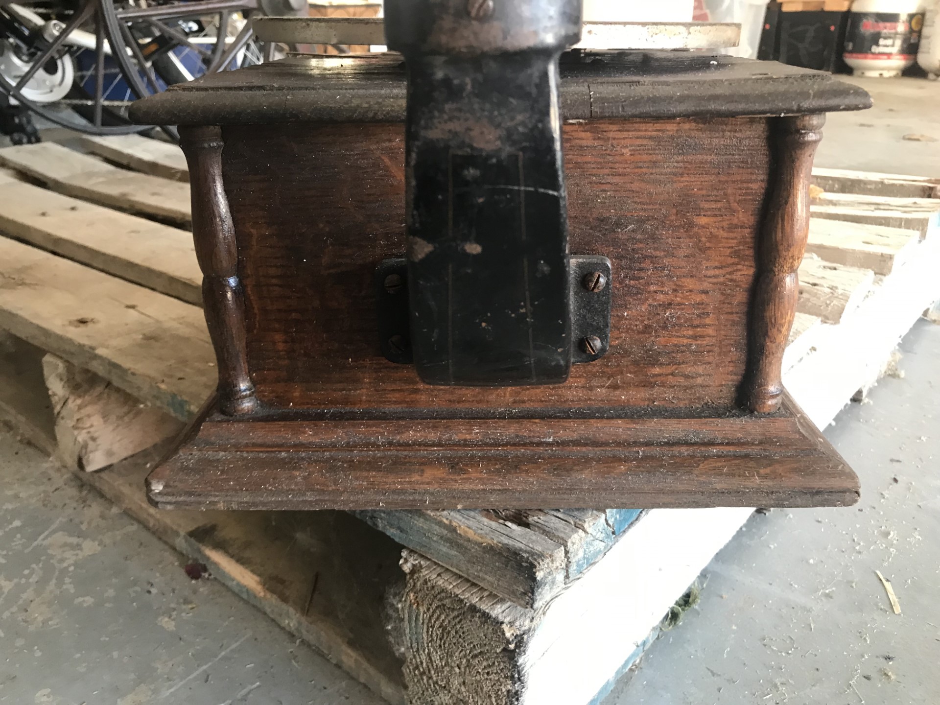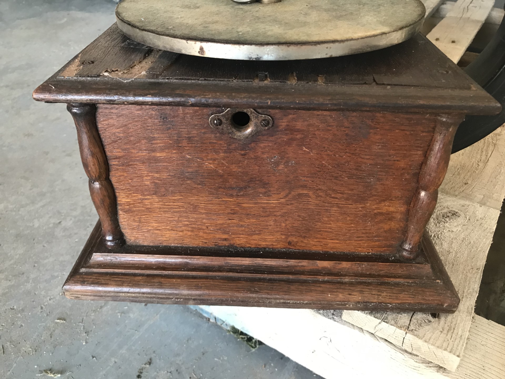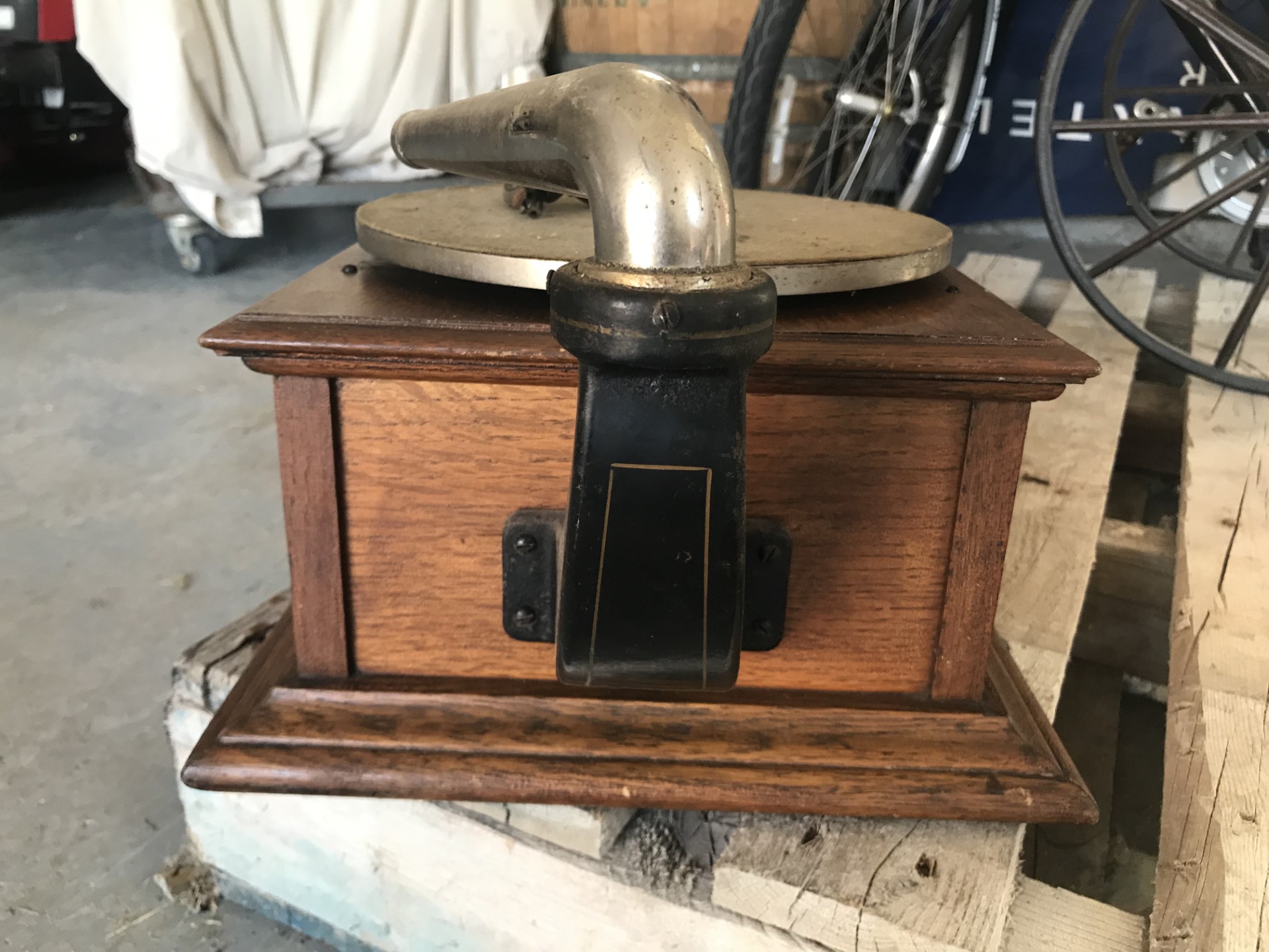 #2 "Symphony" (I think. No decal) - This cabinet is rough with chipped and missing veneer on the top board. Motor cranks but will slip and unwind after a few cranks. No reproducer or crank. Possible wrong platter as it's fit seems off.
