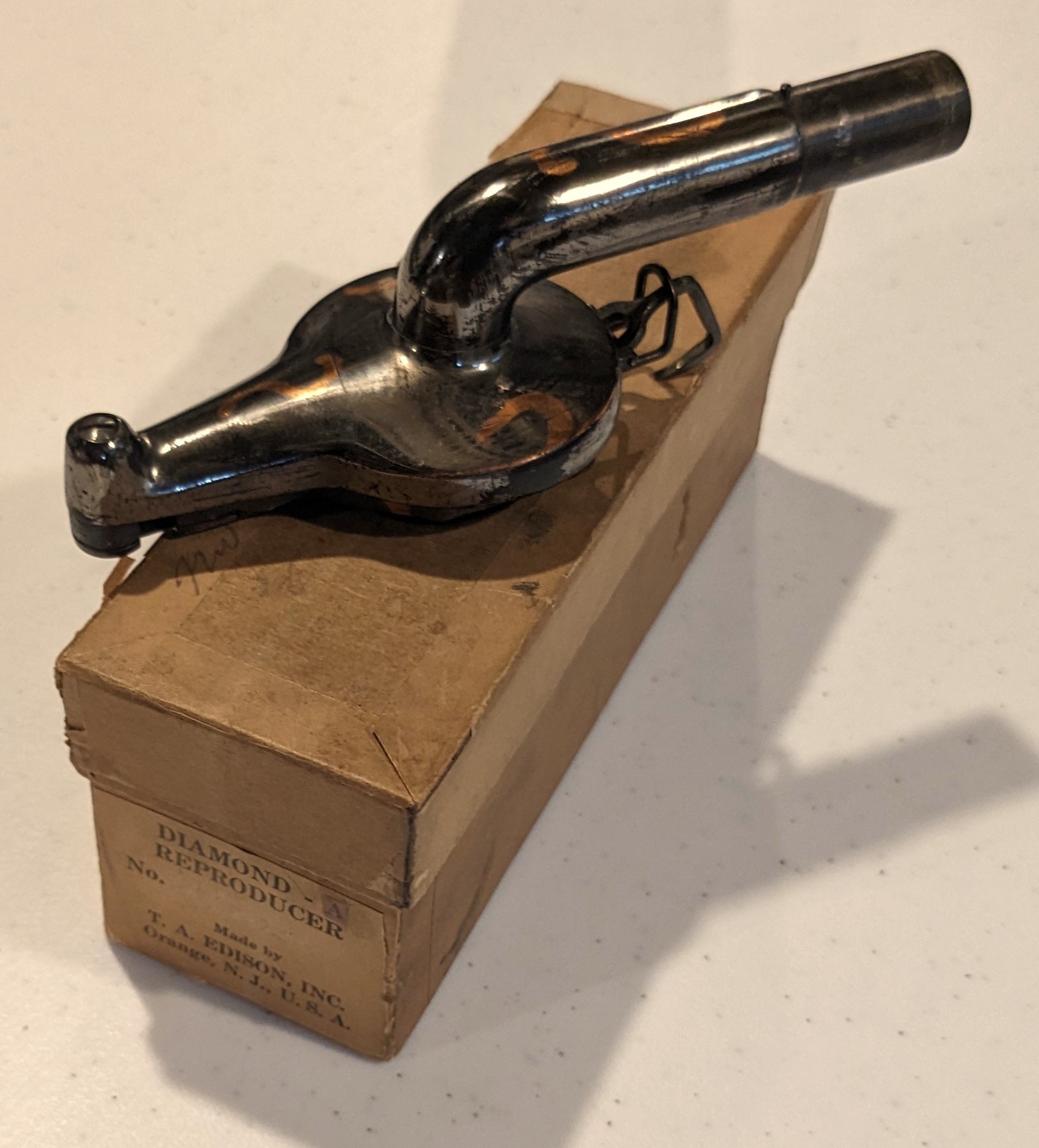 Edison Diamond A in original reproducer box. Outstanding condition, Great diamond - it hoots!