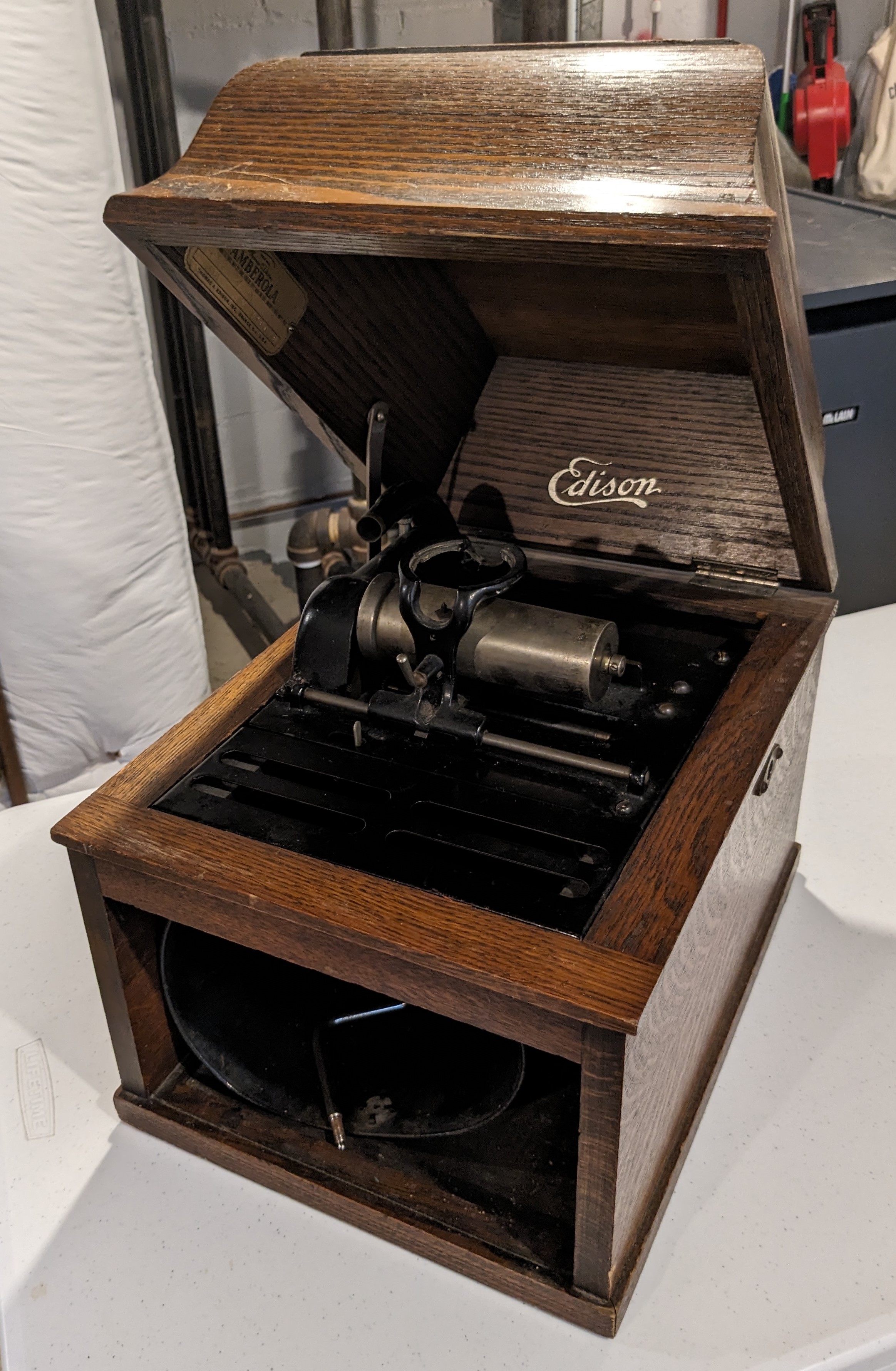 Edison Automatic Reproducer in original box. Original, unmolested, and plays great!