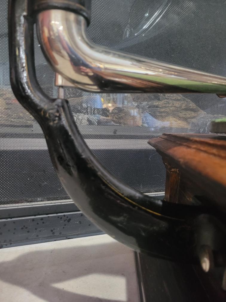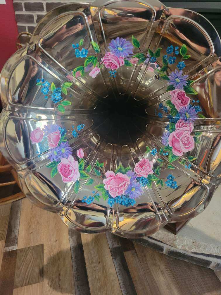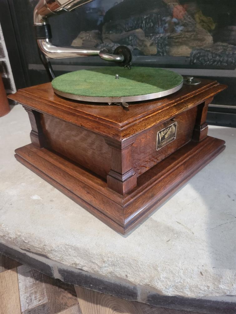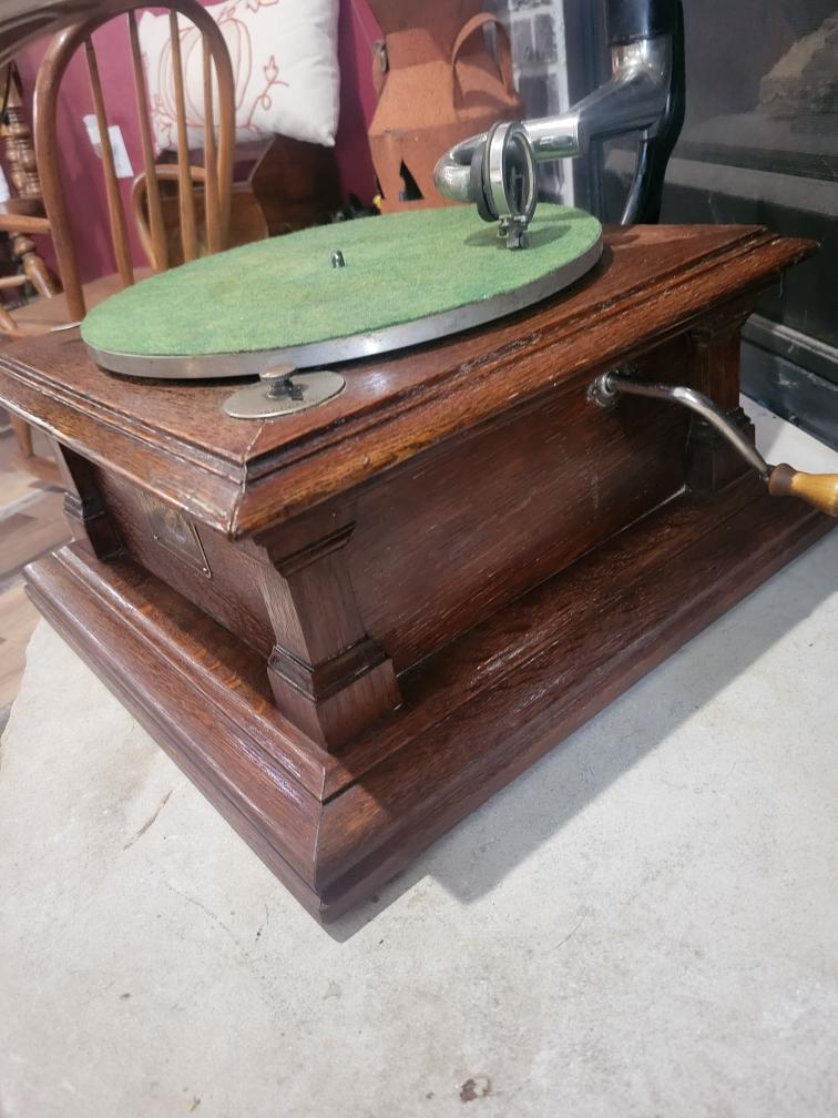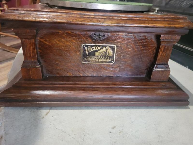 Here is a very nice example of a Victor 5 with an AWSOME nickel horn with painted flowers. The horn is as straight as you will find!!!!!! A true survivor. NO the petals are not bent. Just reflection. The machine is in great shape with the back bracket having some wear. This is the latter slip in style elbow. Asking 2300.00 for it and would prefer no shipping. I can get it to the Midwest show in June. If you really want this shipped, I am sure it would be close to 400.00 with 2 VERY LARGE boxes. First to post SOLD gets it. Partial trades considered. I purchased this from Raphael Cole a while back. I was told to check to see if the needle touched the center spindle and it falls short. FAIR offers accepted. Looks like I should have checked when I bought it. SORRY, I was not trying to be deceptive. Tom