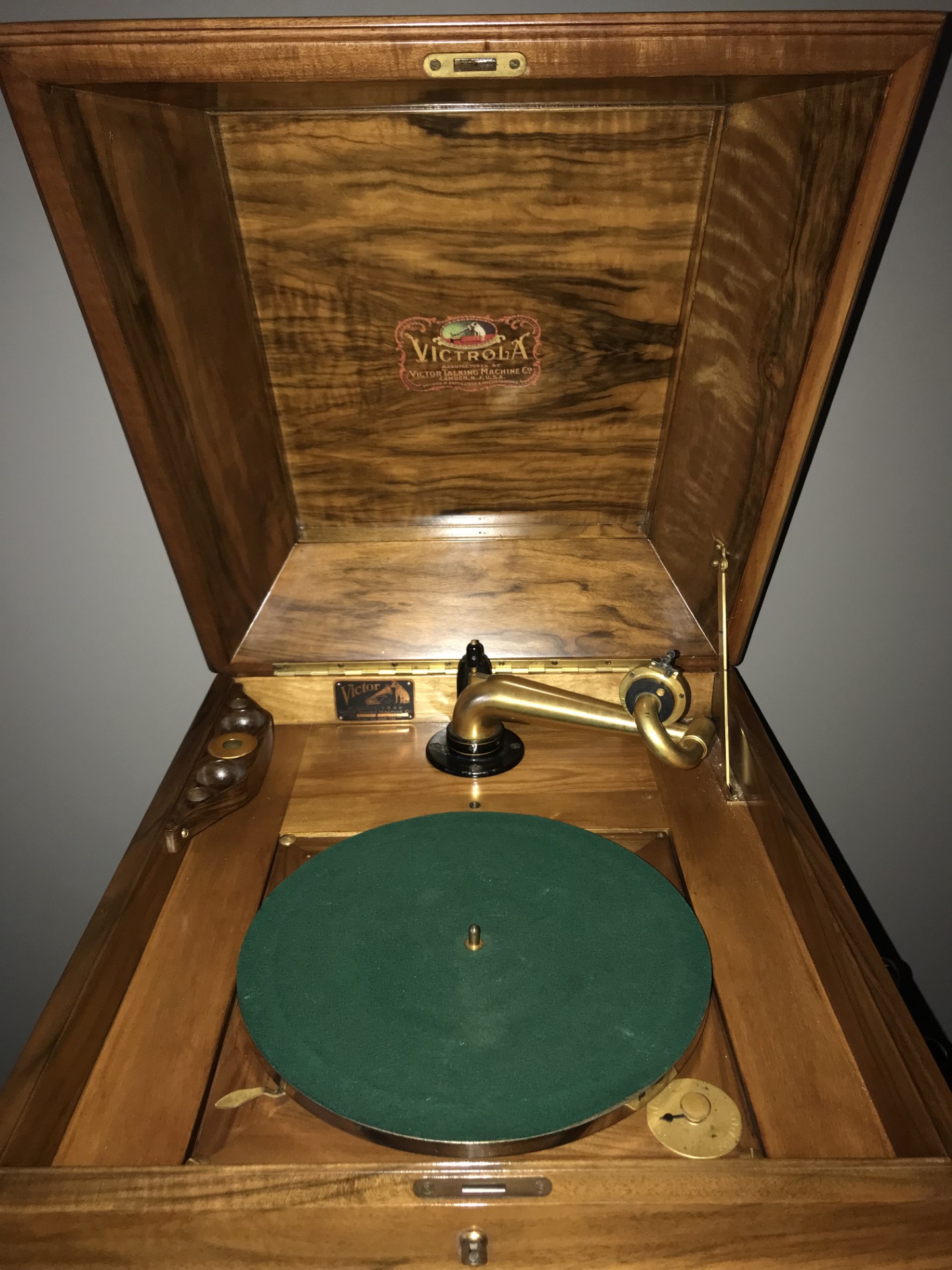 This Victor Victrola XVI was refurbished some time before I bought it. It's a good job but it does have a shine to the surface. Everything works well and the motor easily plays several records on a single wind with no noise.