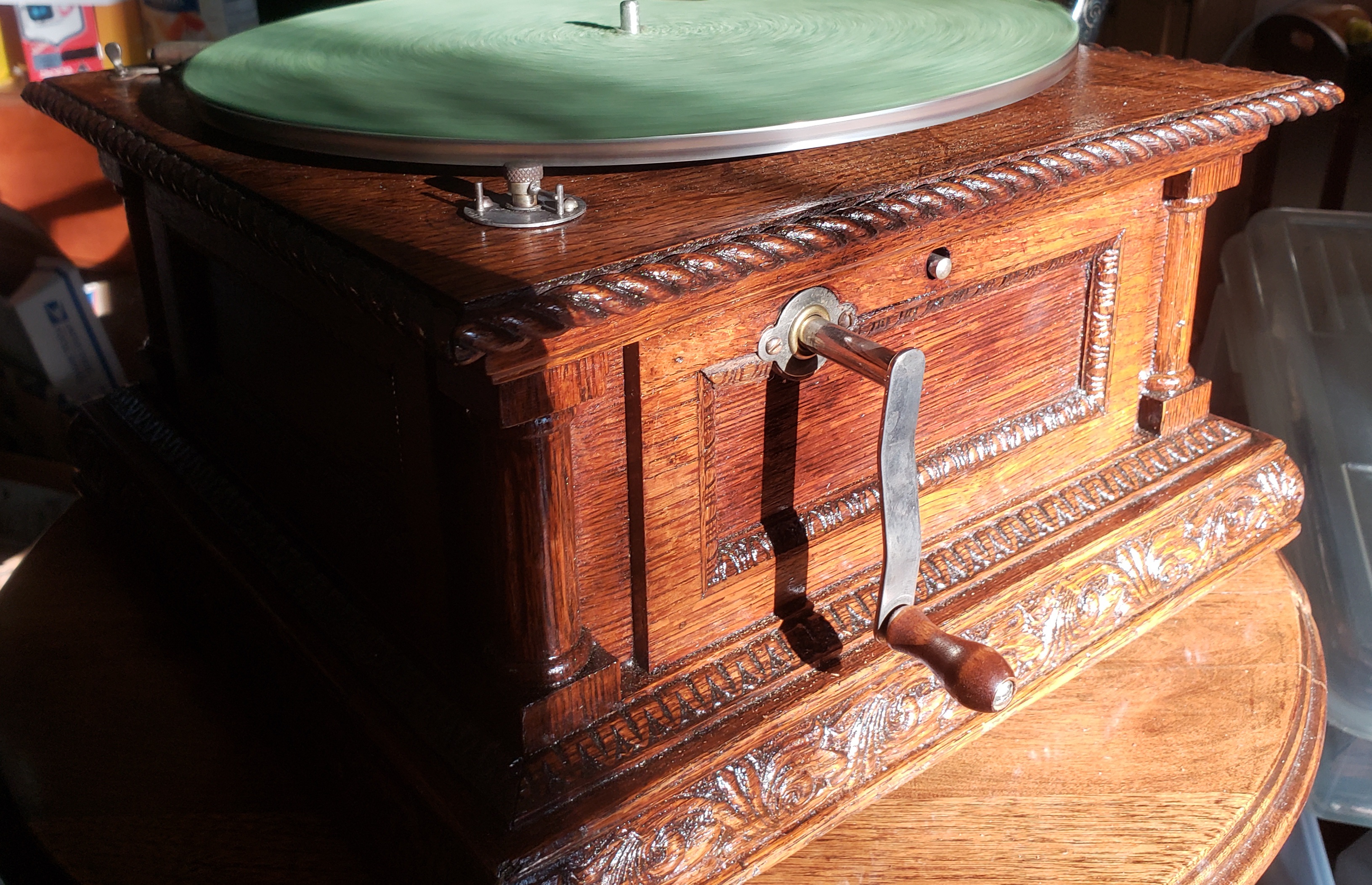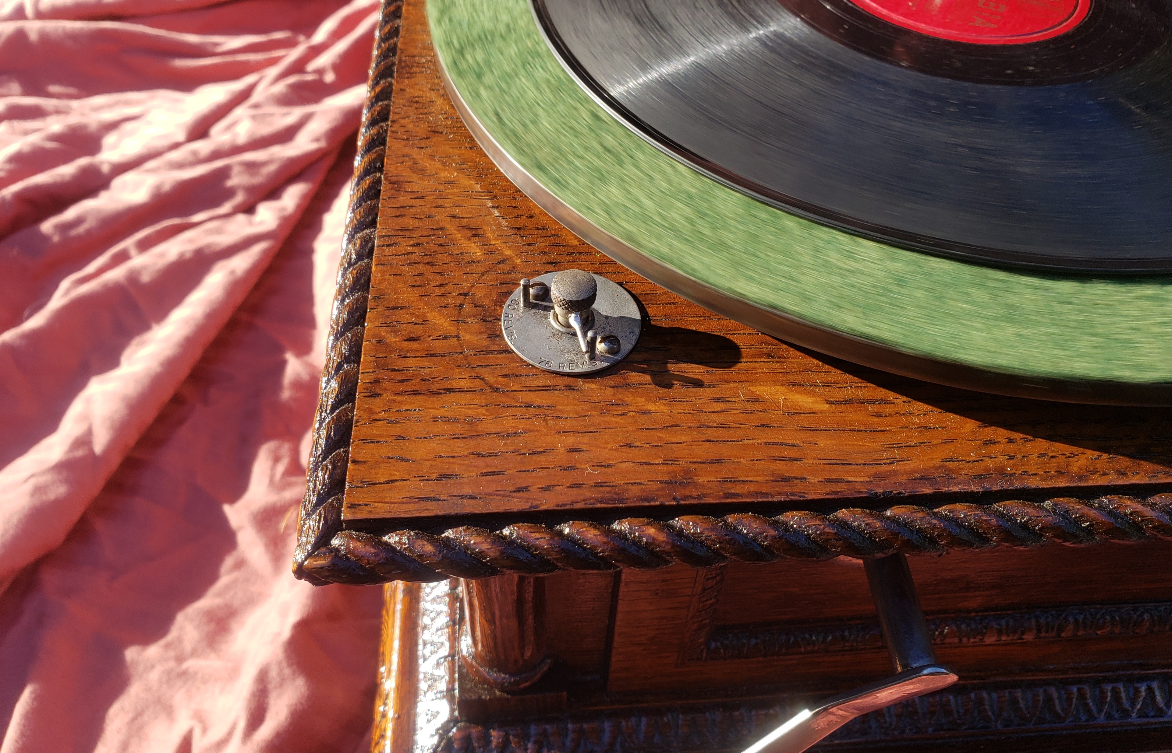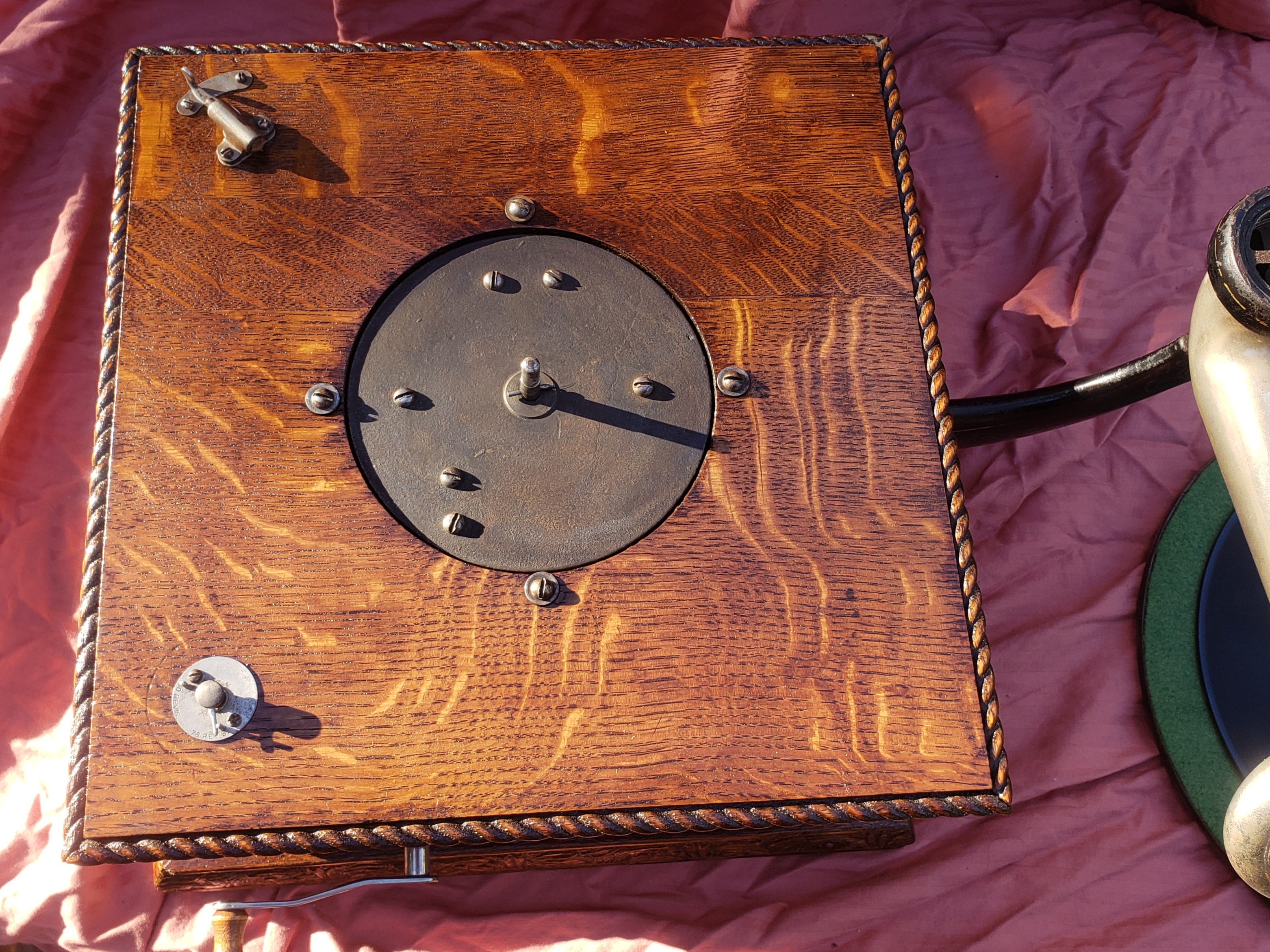 8. I try not to sell horns with the phonos because they often cost twice as much to ship and I don't have any awesome ones to go with beautiful machines. The horns in my photos and videos are for demonstration purposes only.