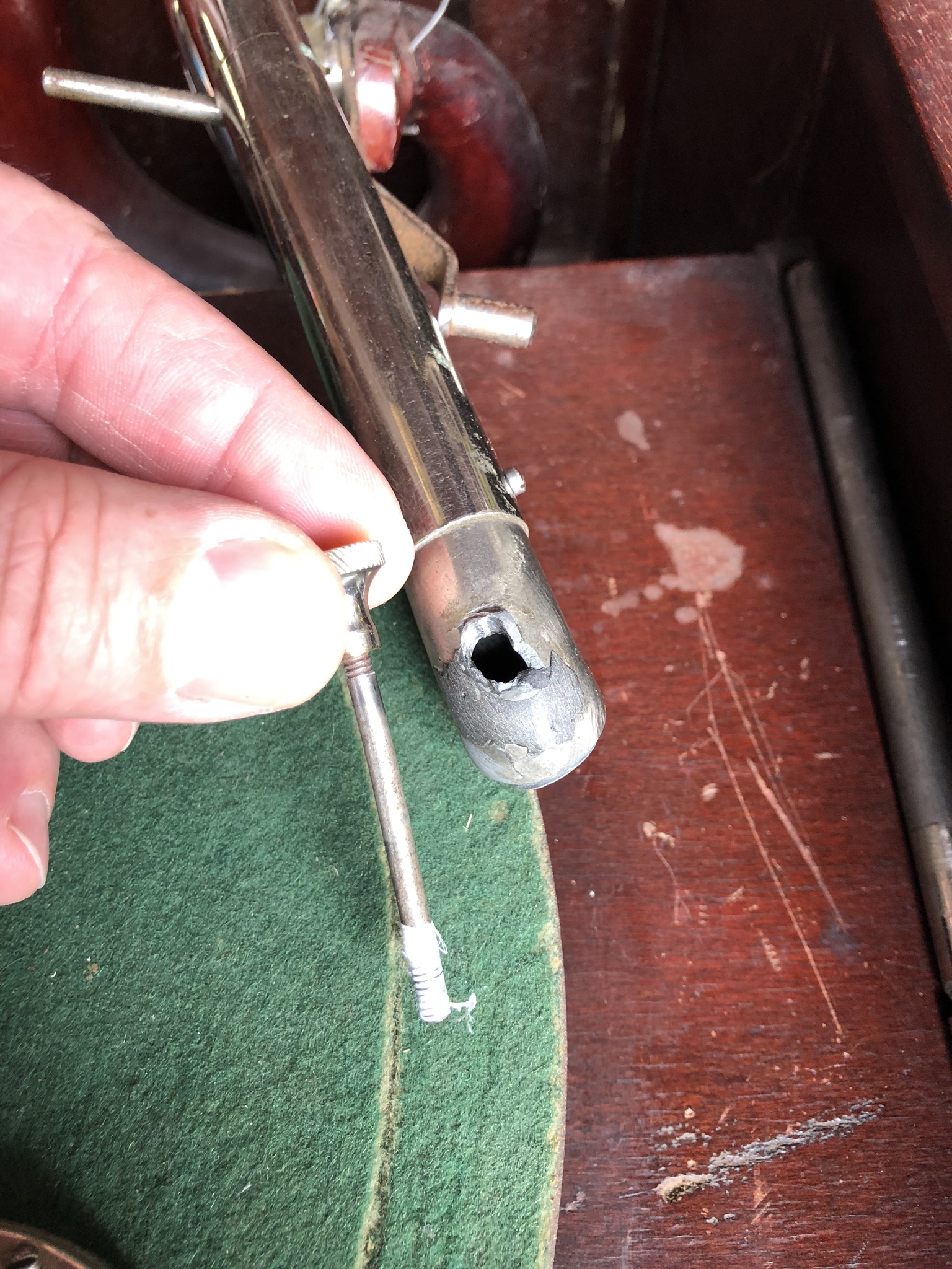 I am looking for any help in finding a replacement Keen-O-Phone reproducer. As you can see in the attached photos, the original owner had broken the reproducer at some period of time and used glue and JB Weld to put it back together. It still doesn't work, nor will it stay on the arm anymore.